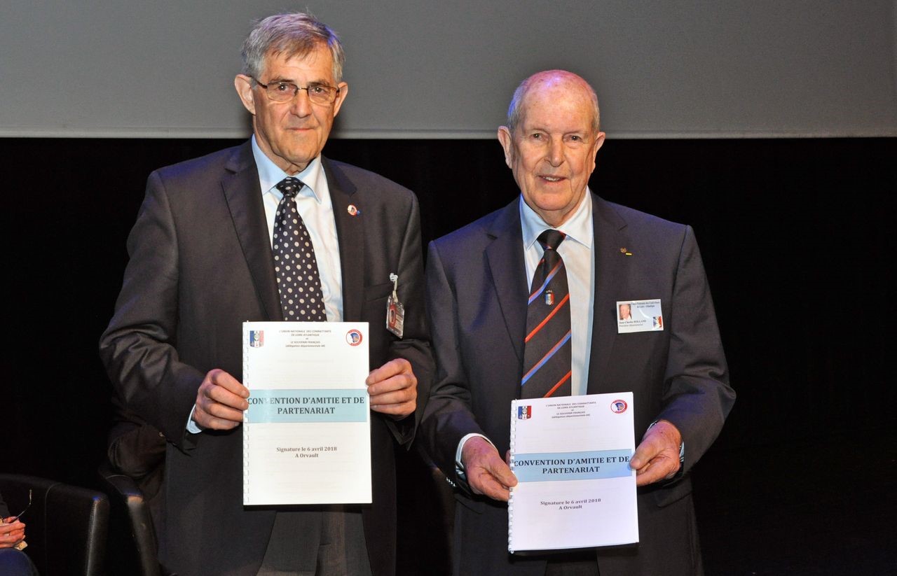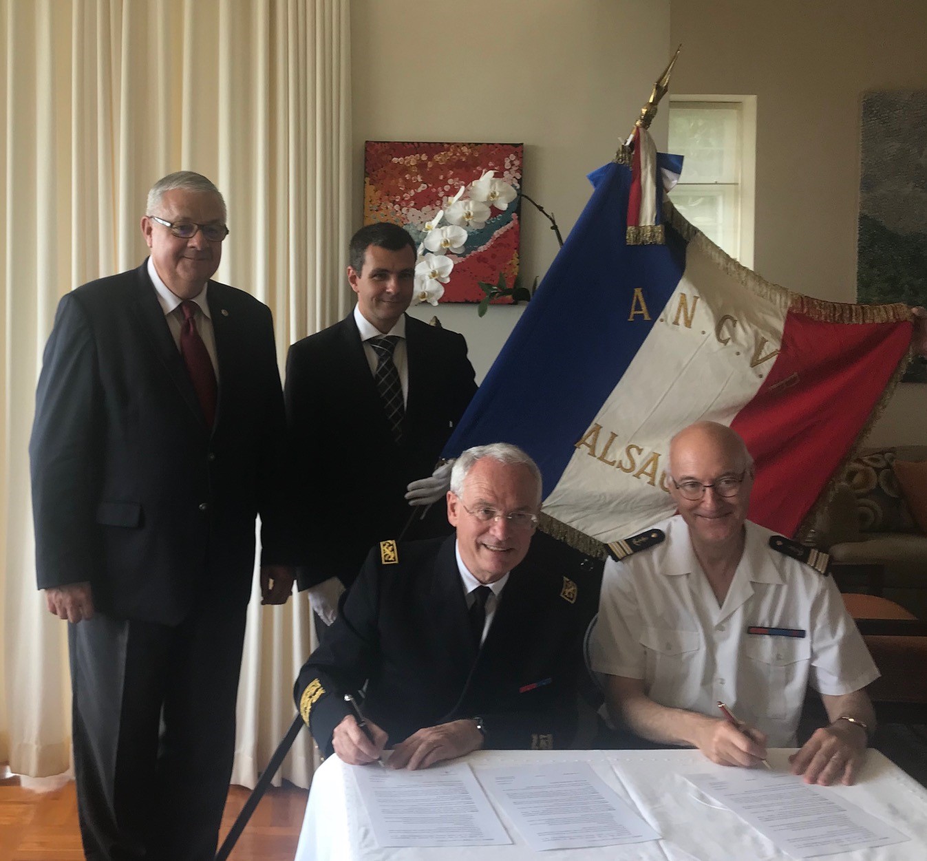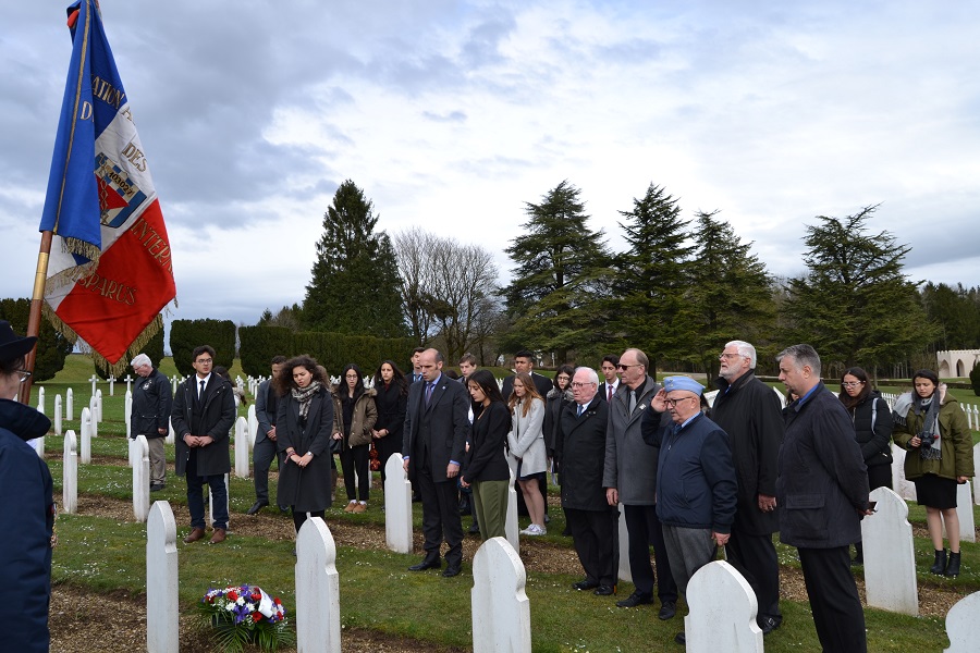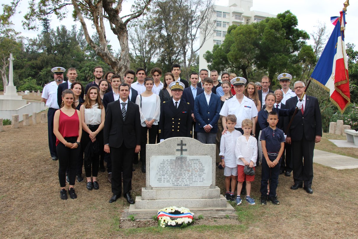 Remise du drapeau de l’association nationale des combattants volontaires de la résistance au Lycée Français International Victor Ségalen (LFI) de Hong Kong, le 12 avril 2018, au cimetière militaire de Stanley à Hong Kong, en présence de M. Serge Barcellini, Président général du Souvenir Français, M. François Drémeaux, Président du comité du Souvenir Français à Hong Kong et M. Claude Jaeck, délégué général du Souvenir Français pour la Chine.