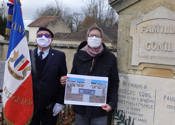 Rectification d’un prénom sur la tombe d’un Poilu bergeracois inhumé dans la nécropole nationale de Douaumont obtenue grâce au travail de Nicolas Demaison professeur d’histoire et membre du comité du Souvenir Français de Bergerac, en partenariat avec l’ONAC, en décembre 2020.
