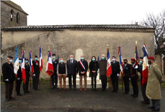 Cérémonie à Pressignac-Vicq (Dordogne) avec la participation du comité du Souvenir Français de Bergerac, en présence du maire Benoît Bourla et du colonel Michel Emery, Président d’une association d’Anciens Combattants.