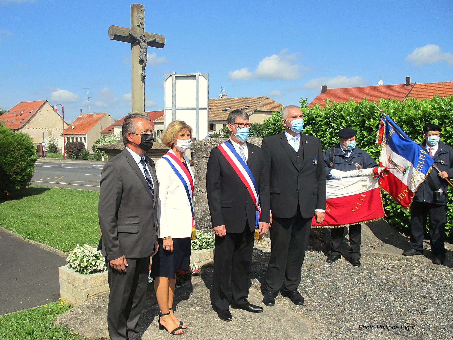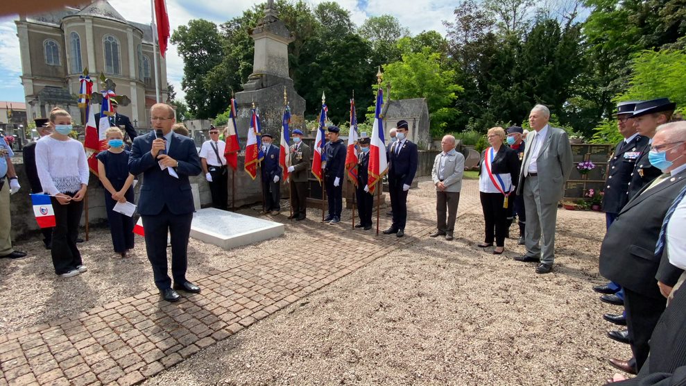 Cérémonie d’inauguration d’une tombe de regroupement à la mémoire de deux poilus, « Mort pour la France » organisée le 3 juillet 2021 par la délégation générale de Meurthe-et-Moselle et la commune de Bayon, en présence des élus locaux, de représentants d’associations et des autorités civiles et militaires.