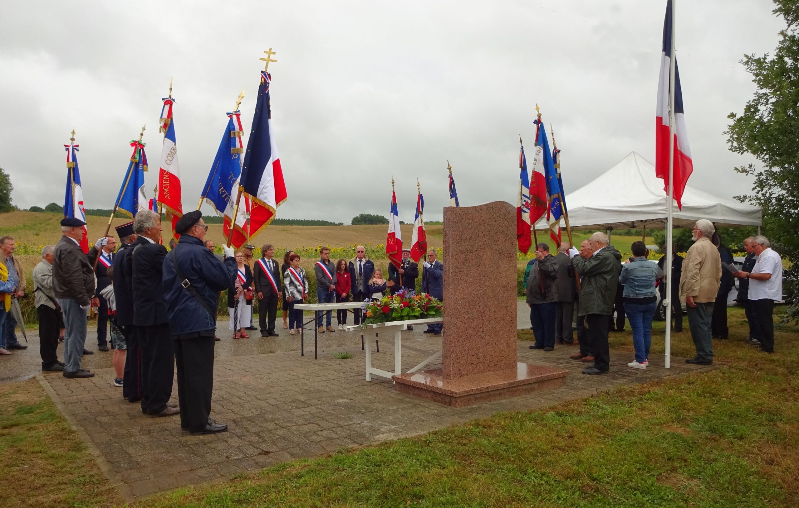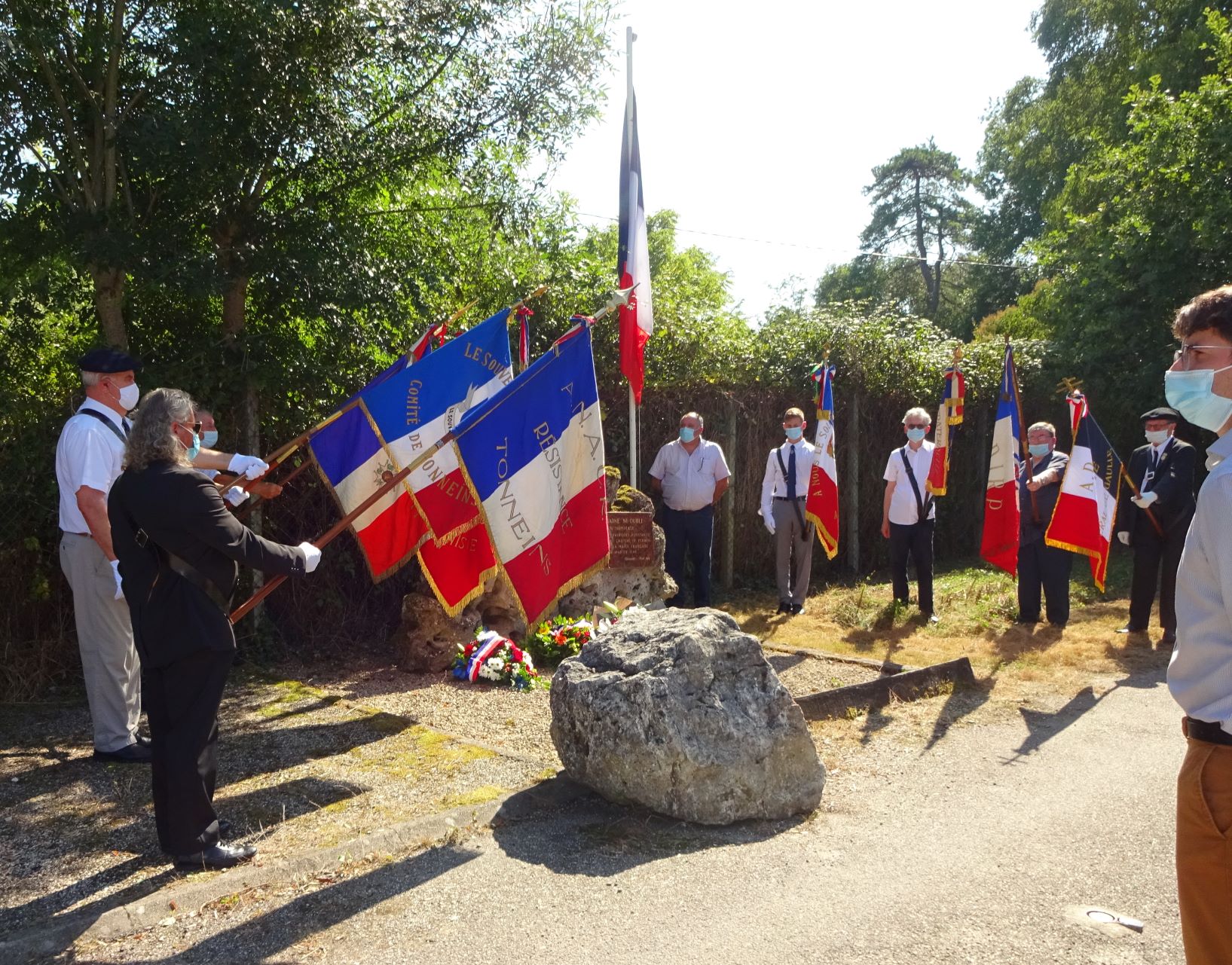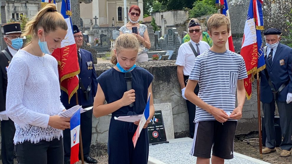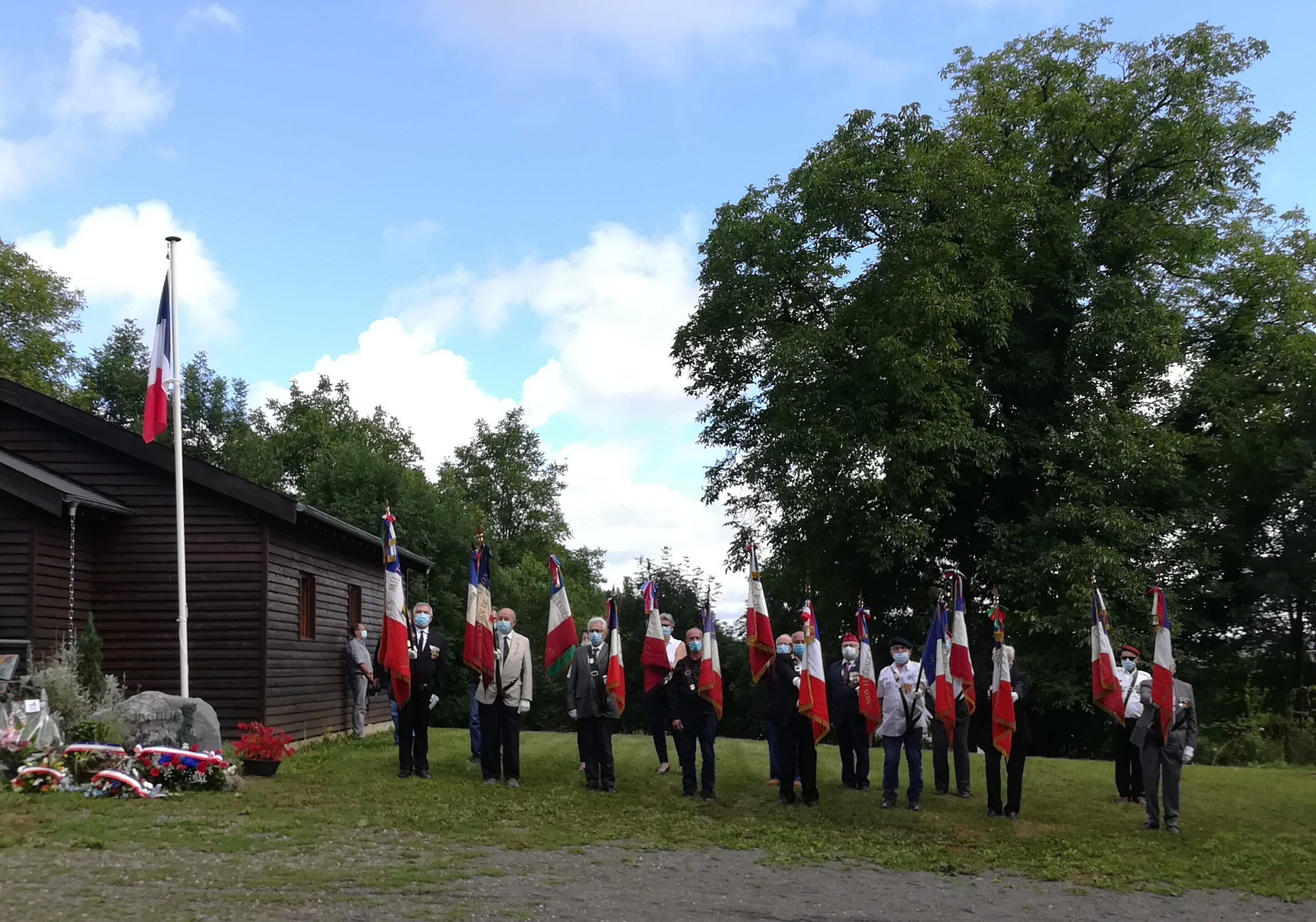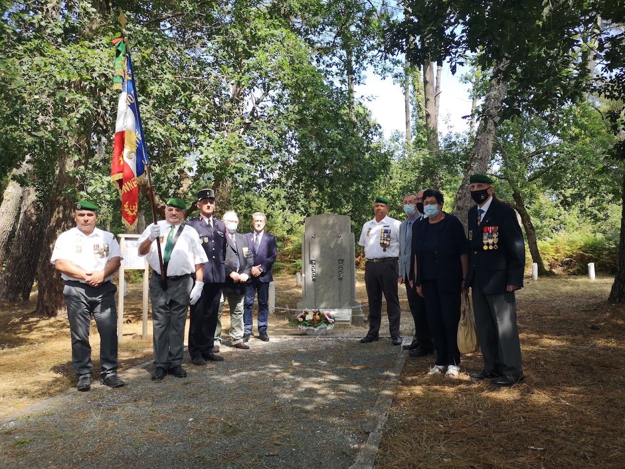 Cérémonie du 14 juillet au mémorial de la ferme de Richemont à Saucats (Gironde), en présence de la délégation du Souvenir Français de Gironde.