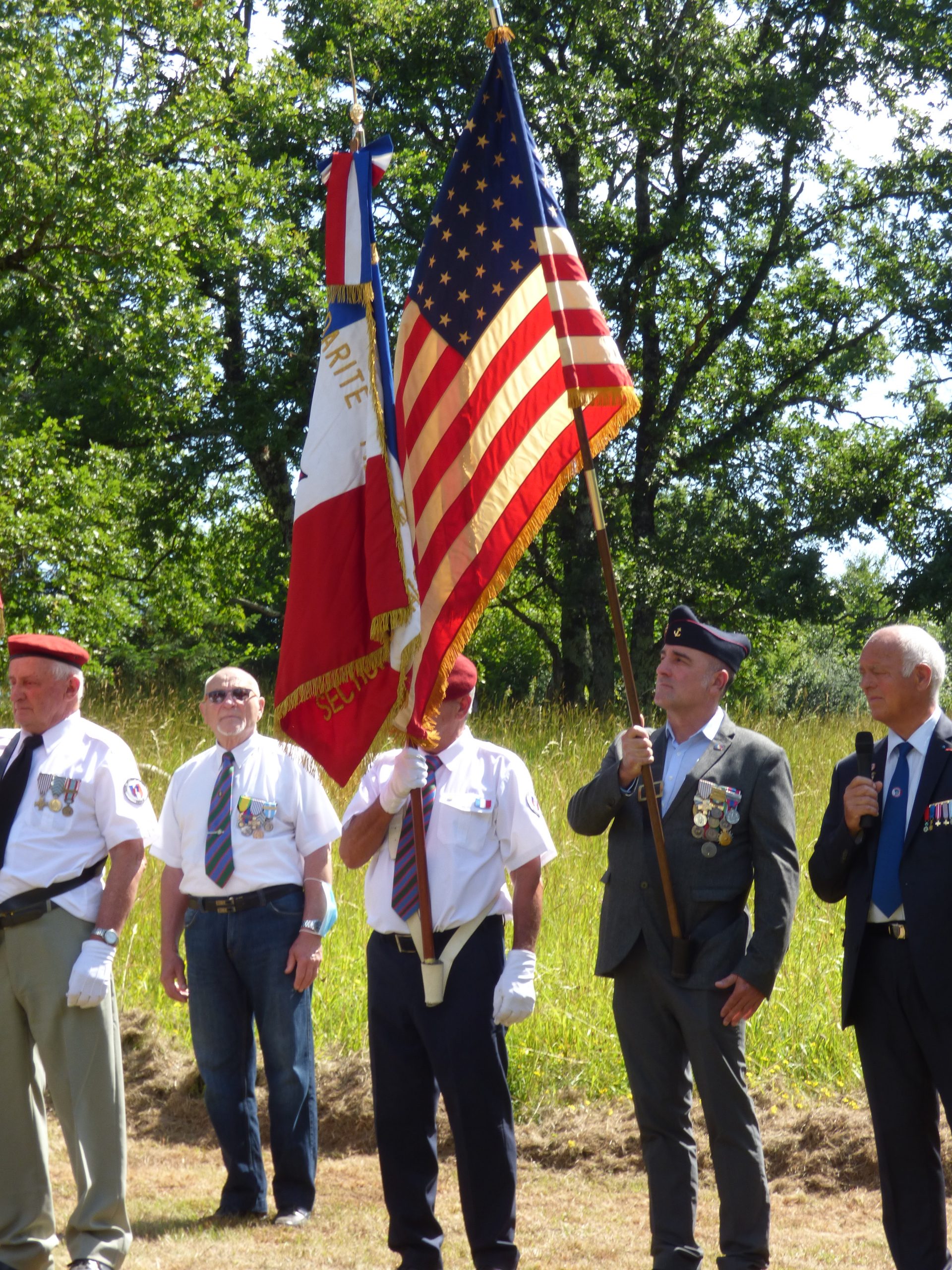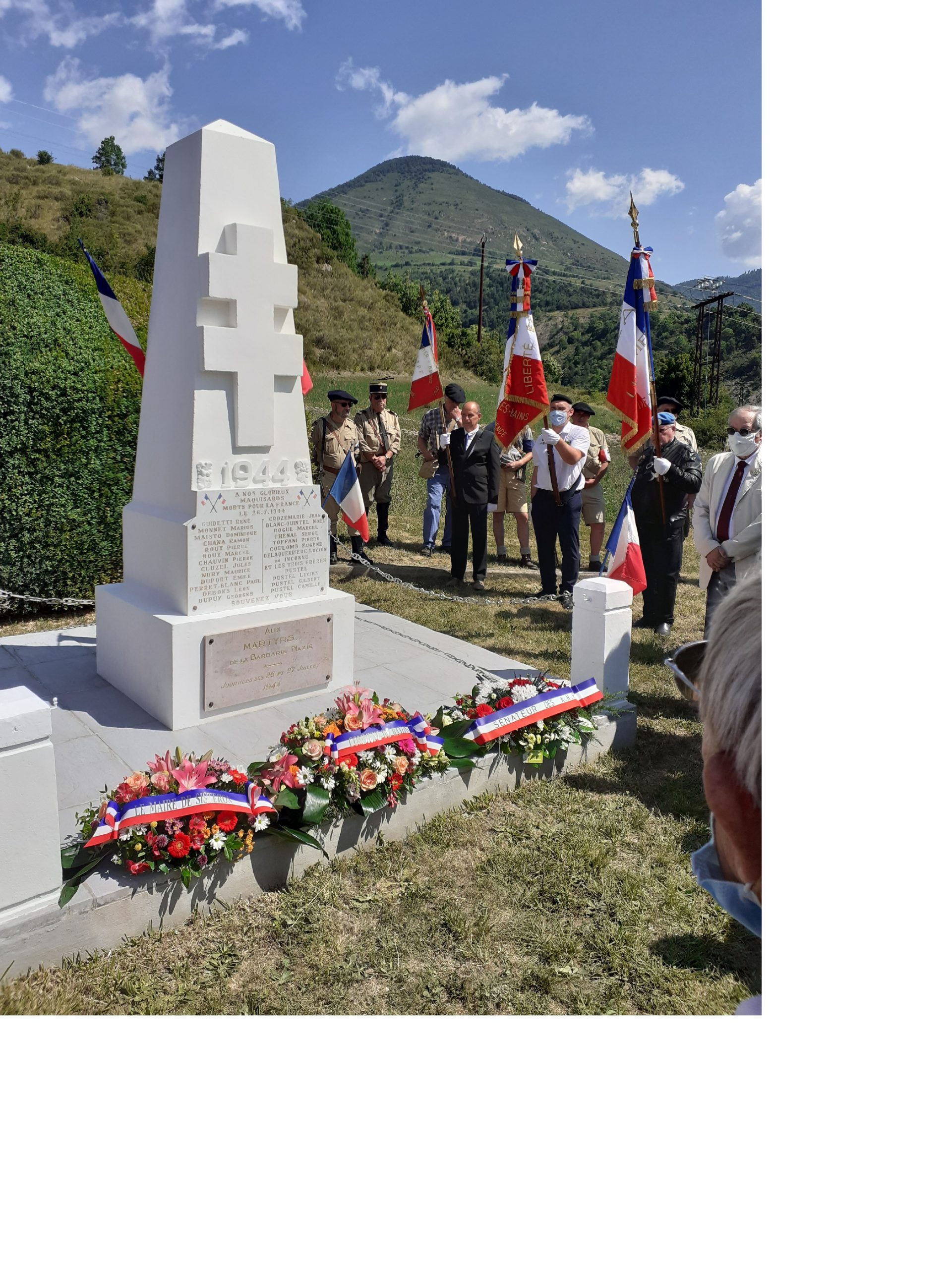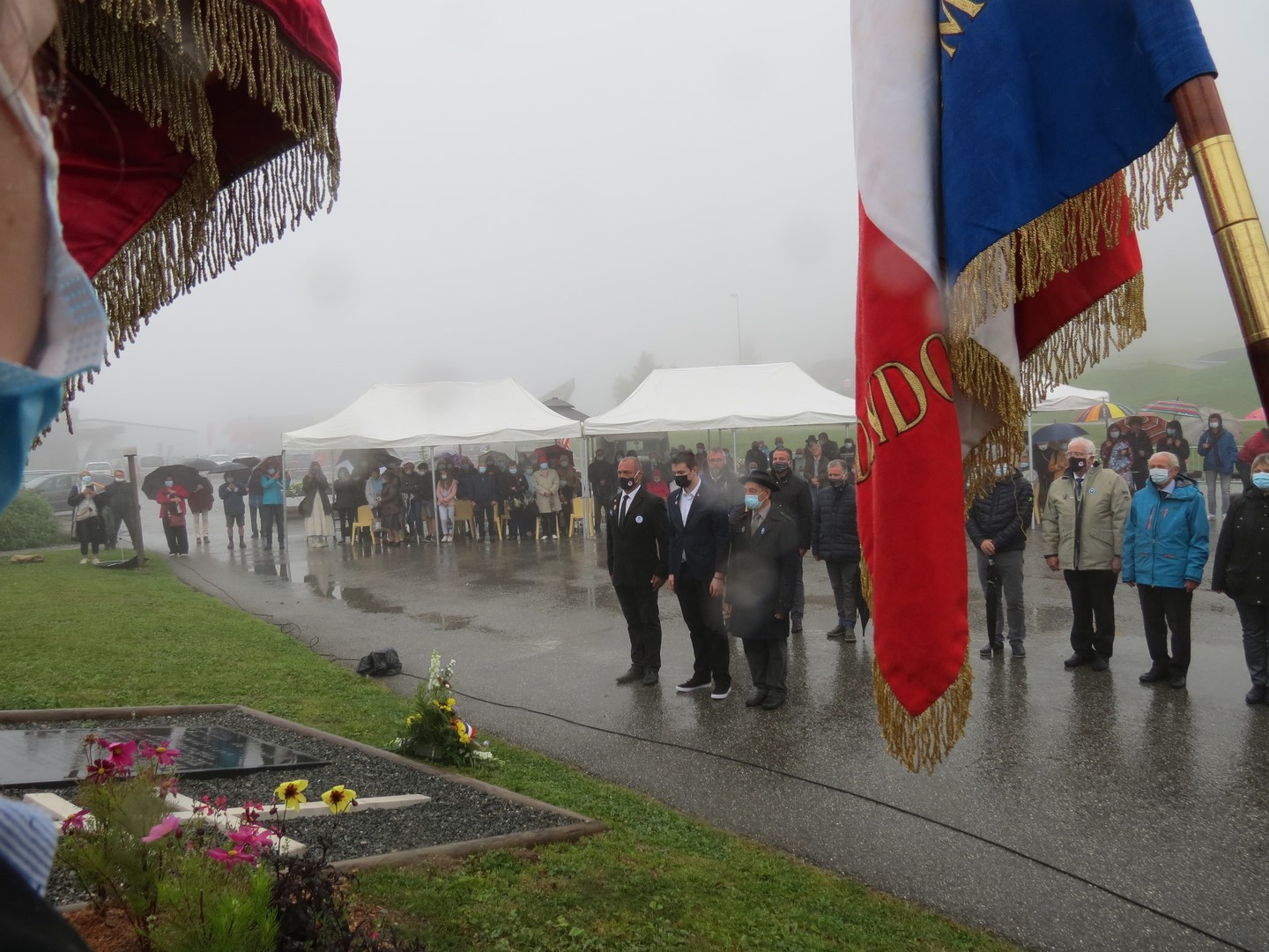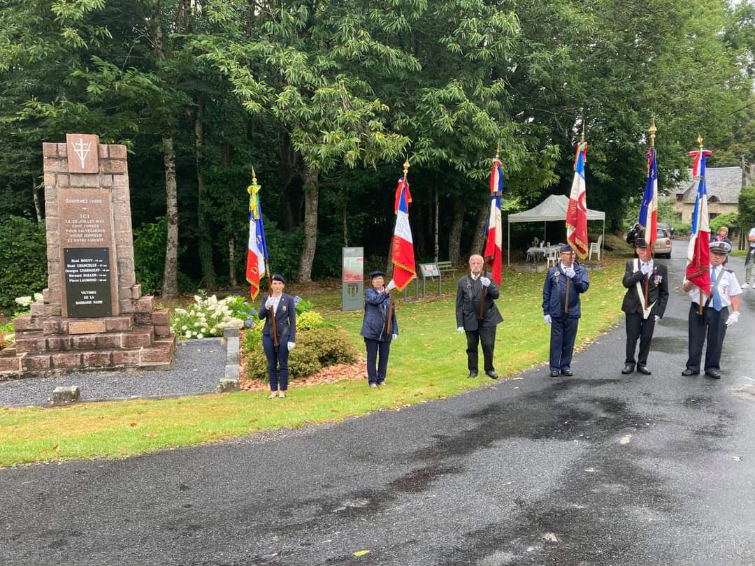 Cérémonie commémorant le 77ème anniversaire du parachutage du col des Saisies en 1944, organisée par la délégation générale de Savoie, l’ONACVG et la municipalité de Hauteluce le 1er août 2021, en présence des élus locaux, de représentants d’associations mémorielles, de jeunes de l’association Le fil de Marianne et de 35 porte-drapeaux. Une exposition sur l’histoire du bleuet de France et sur l’histoire du Souvenir Français a été présentée après la cérémonie.