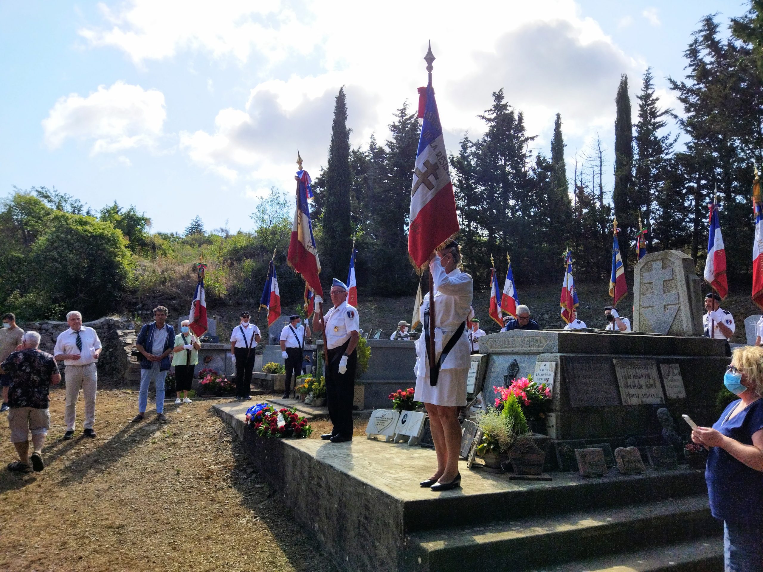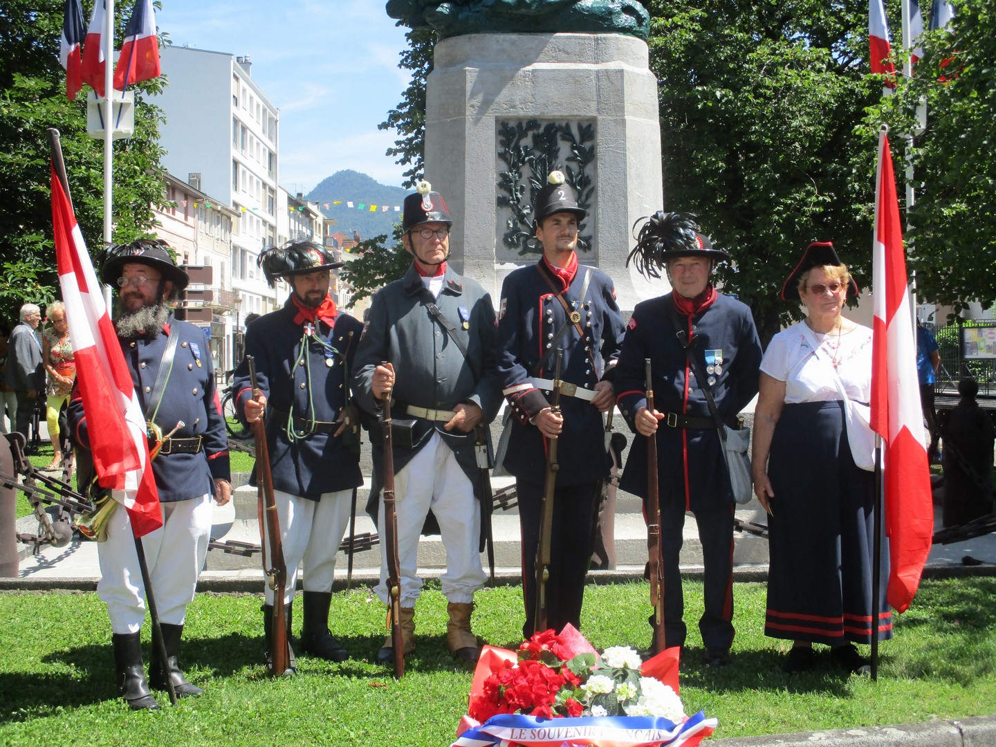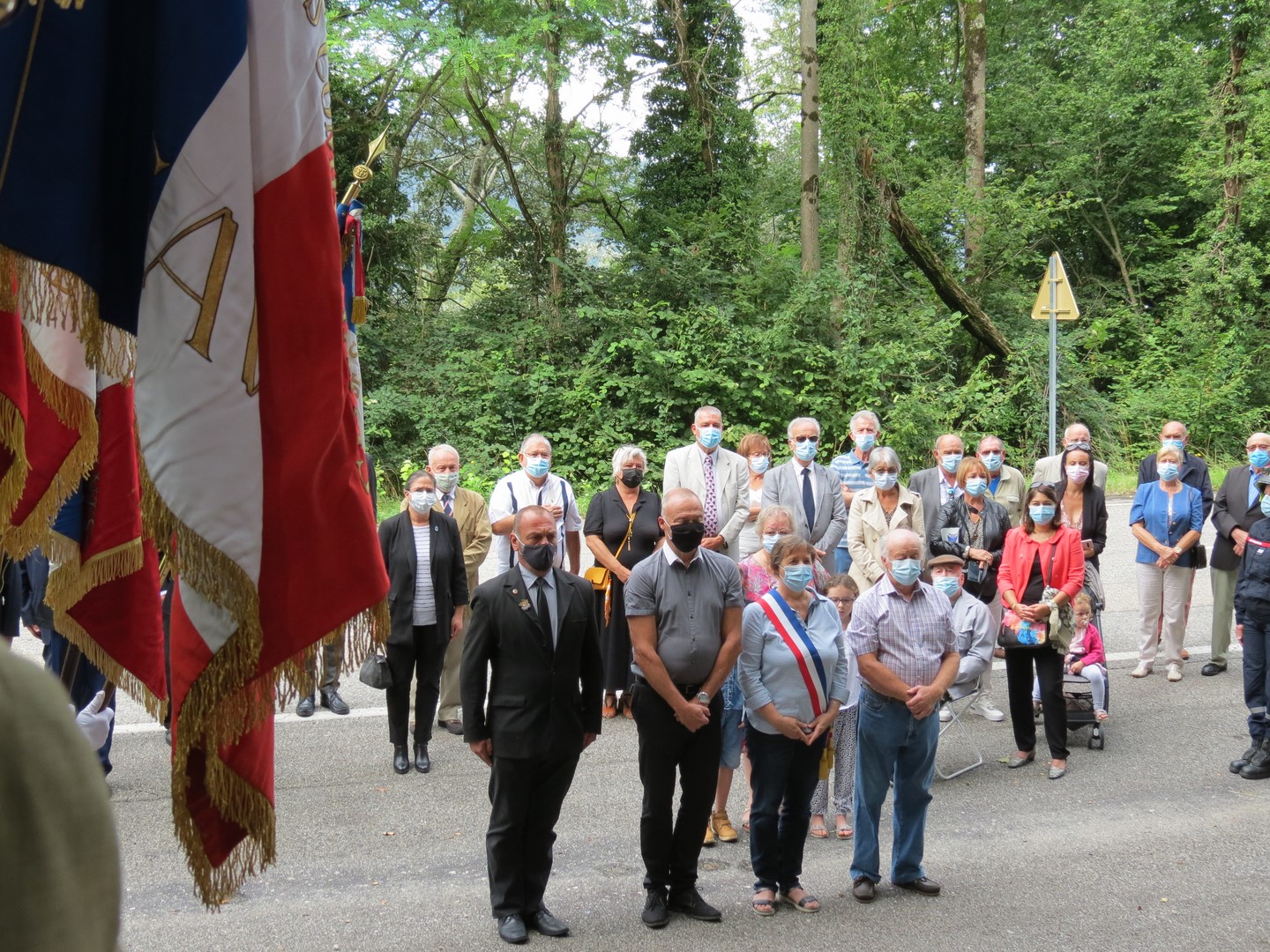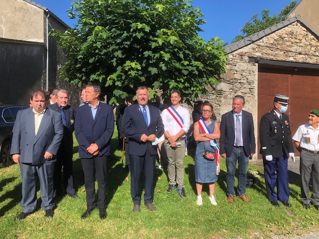 Participation de la délégation générale de la Savoie aux deux cérémonies organisées par la commune d’Aix-les-Bains le 8 août 2021, à Chindireux, en hommage à deux résistants de la commune, en présence du délégué général du Souvenir Français, du délégué général adjoint, des sapeurs-pompiers, et des autorités civiles et militaires.