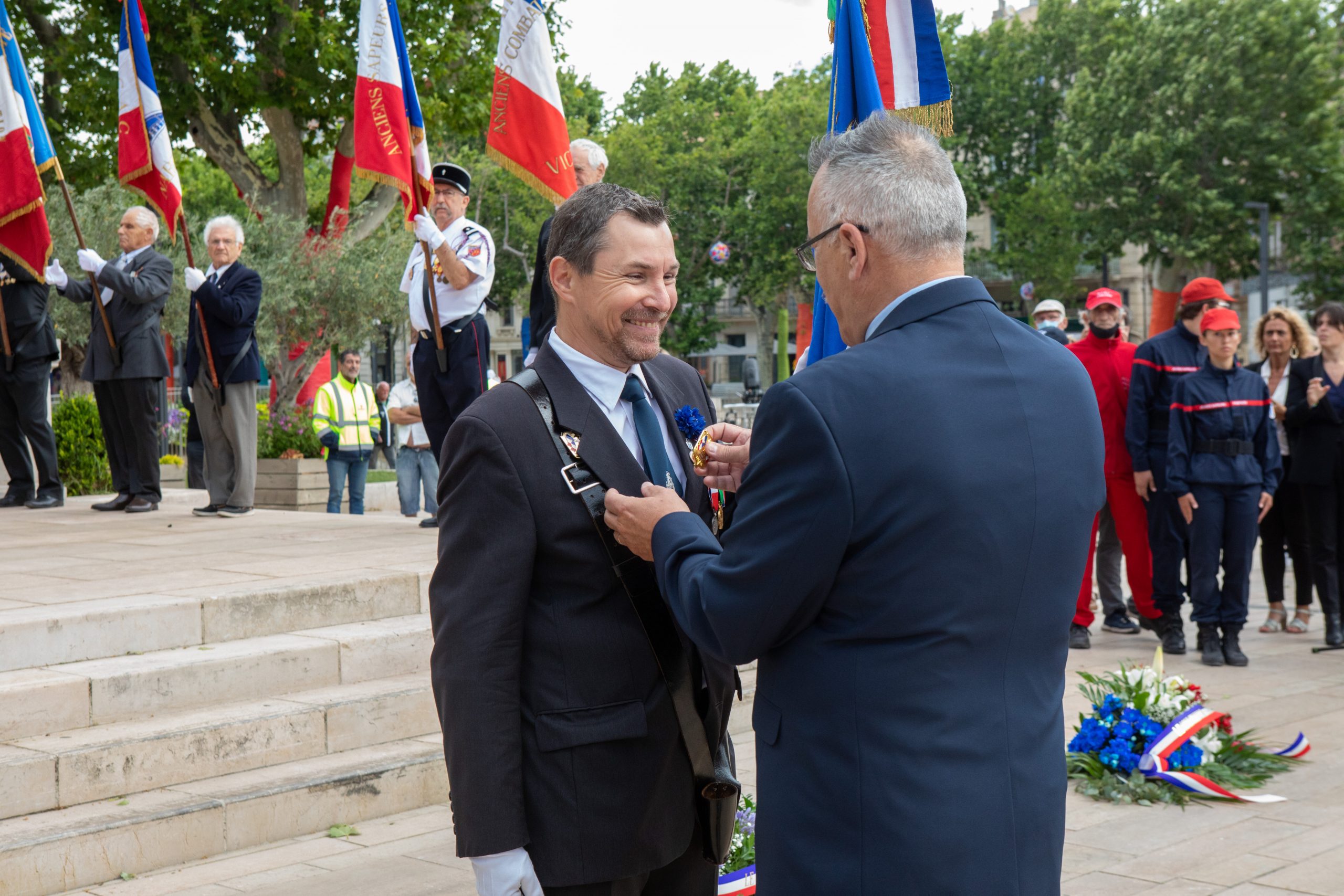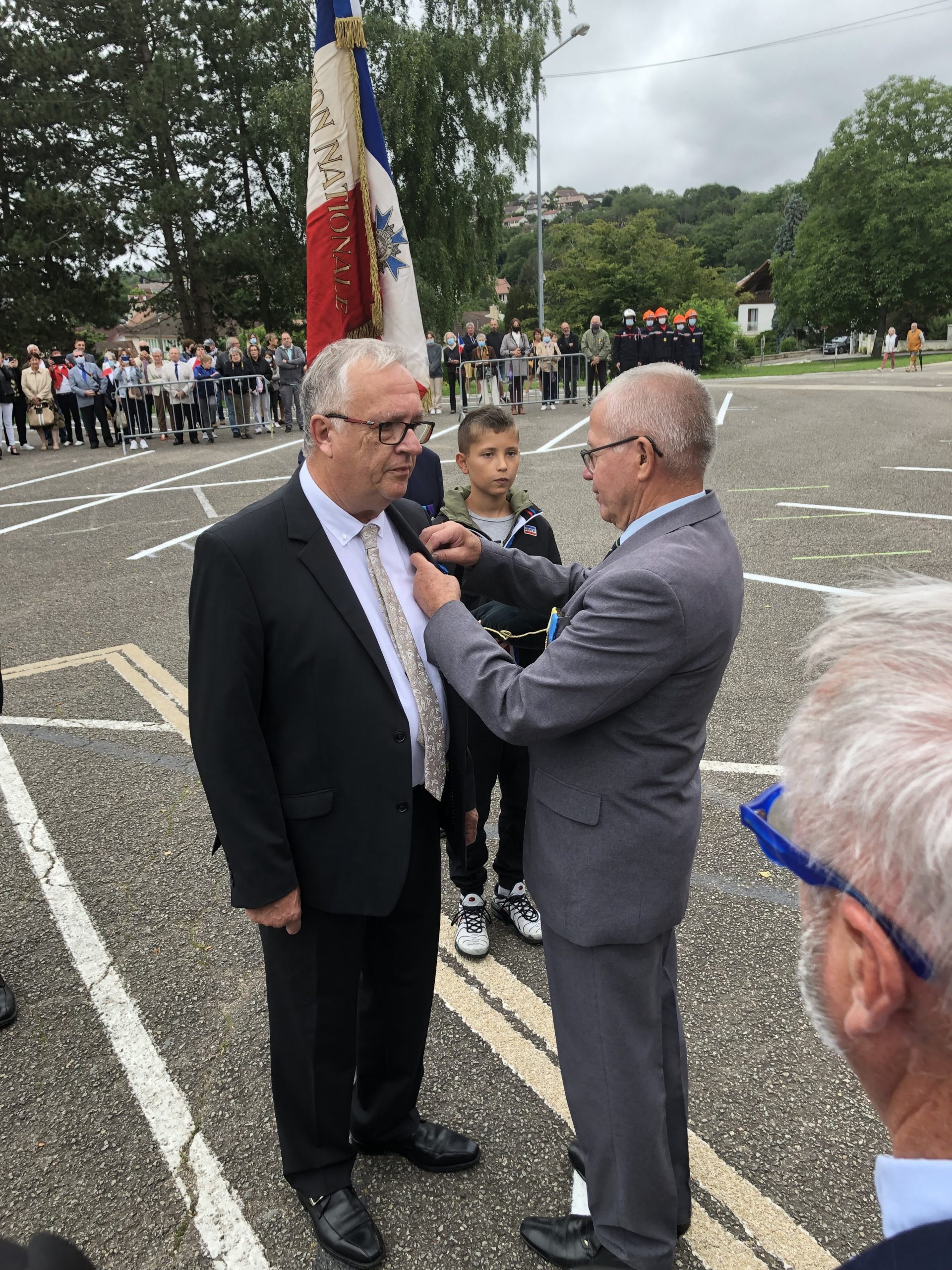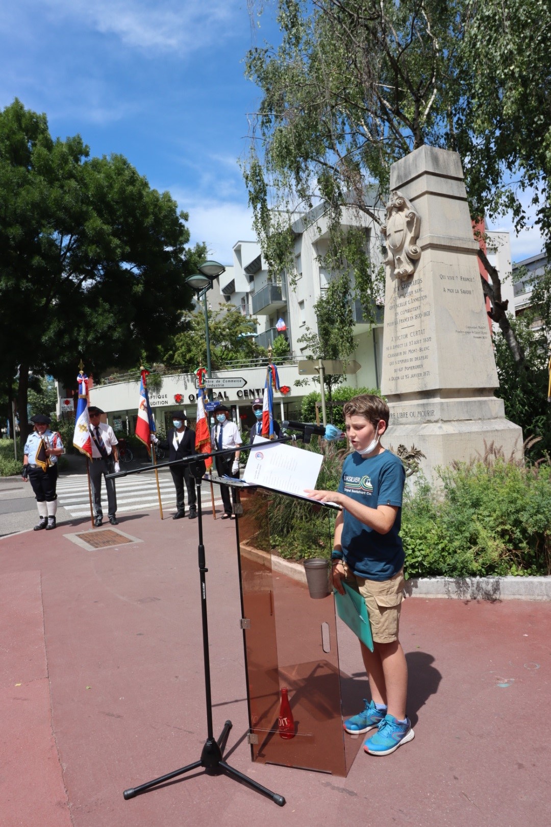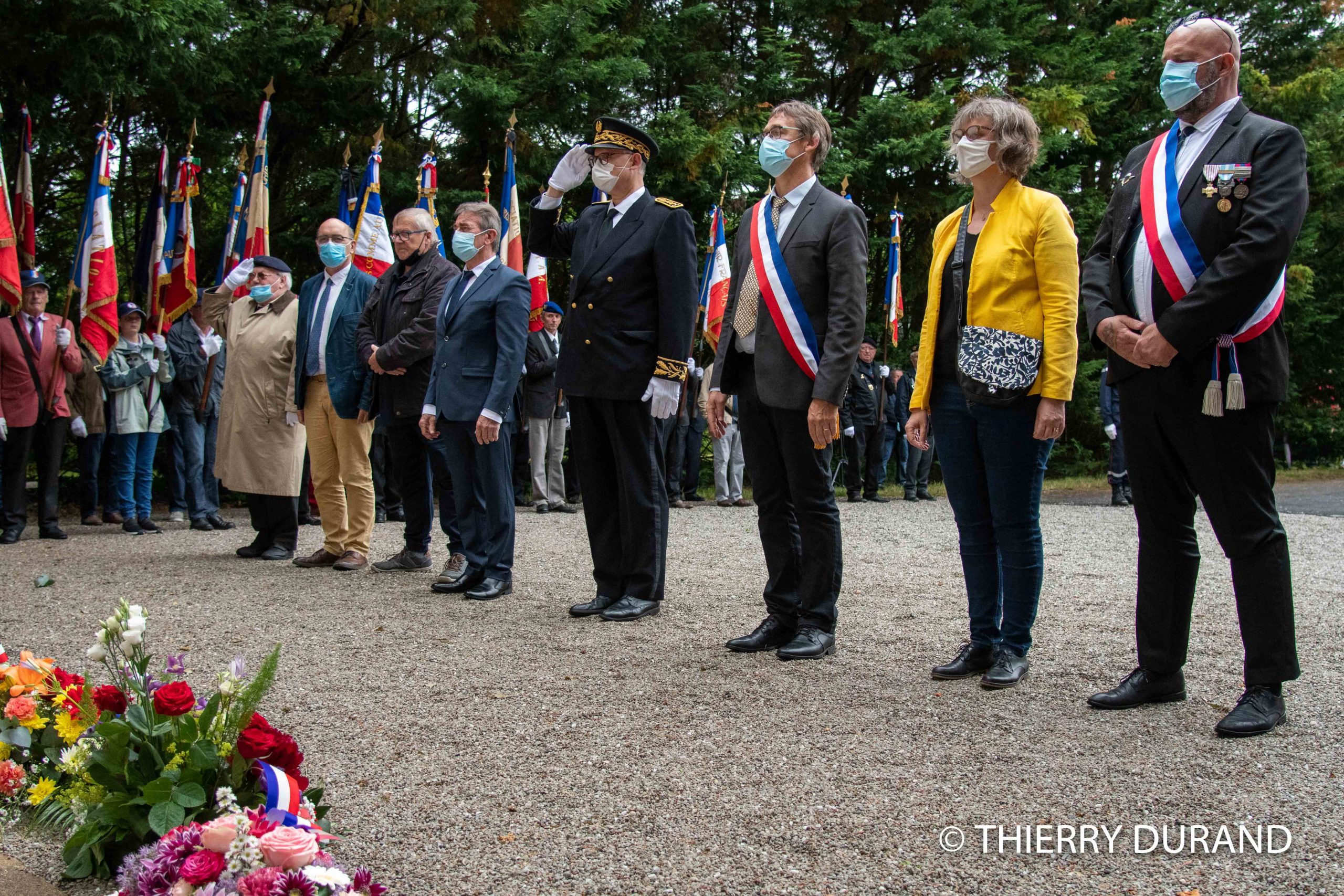 Participation de la délégation générale de la Savoie aux deux cérémonies organisées par la commune d’Aix-les-Bains le 8 août 2021, à Chindireux, en hommage à deux résistants de la commune, en présence du délégué général du Souvenir Français, du délégué général adjoint, des sapeurs-pompiers, et des autorités civiles et militaires.