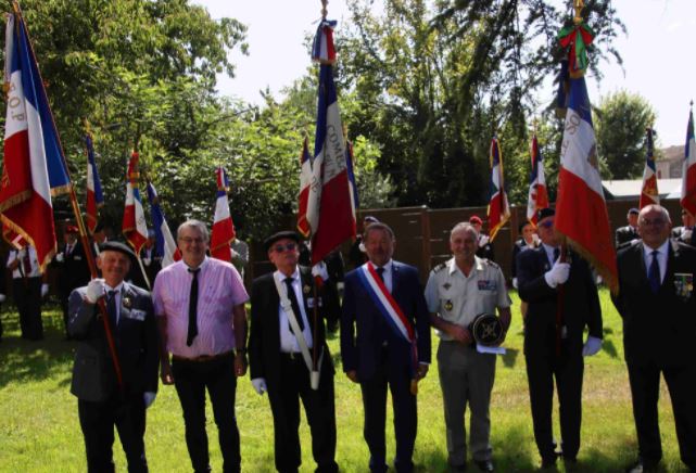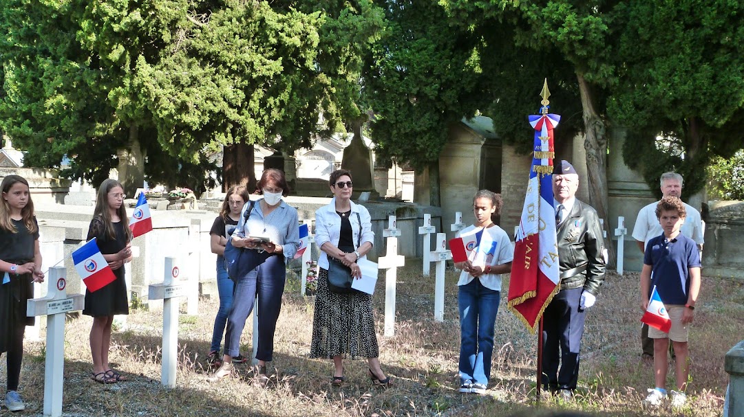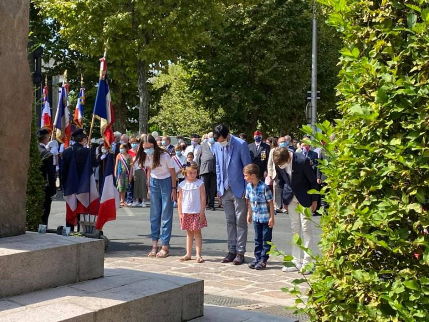 Cérémonie en hommage à Marie et Félicien Godard, tués par les nazis en août 1944, organisée le 7 août 2021 par le comité du Souvenir Français de Capbreton (Les Landes).