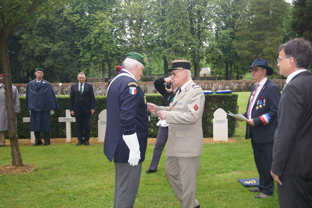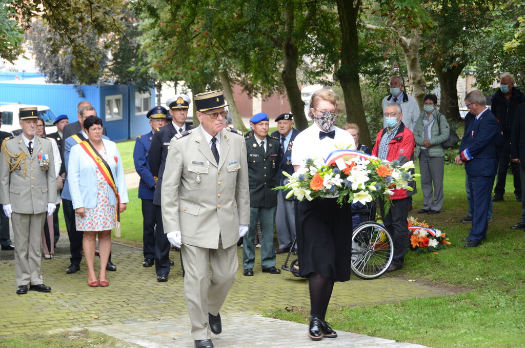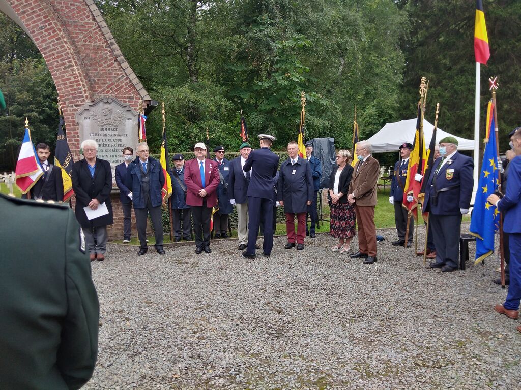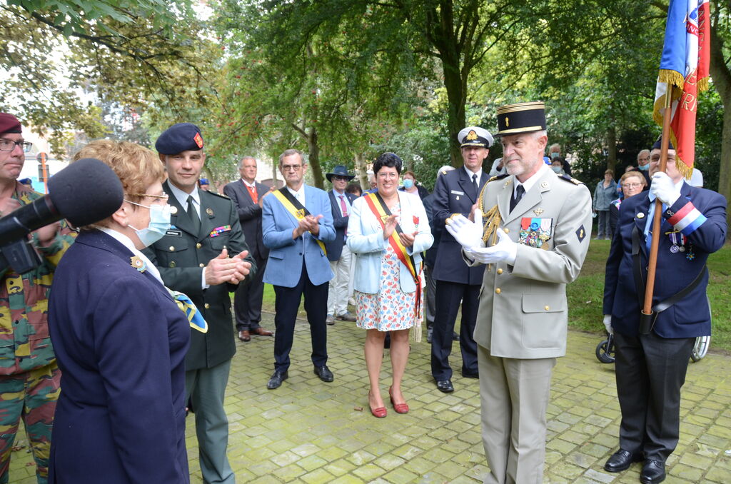 Cérémonie à Dixmude (Belgique) le 18 août 2021 organisée en hommage à la brigade de fusiliers marins de l’Amiral Ronarc’h, en présence de la délégation générale du Souvenir Français de Belgique, des autorités civiles et militaires, et de l’attaché de défense représentant Mme l’ambassadrice de France. La président du comité de Flandre Occidentale a reçu la médaille de Chevalier de l’Ordre National du Mérite à l’issue de la cérémonie.