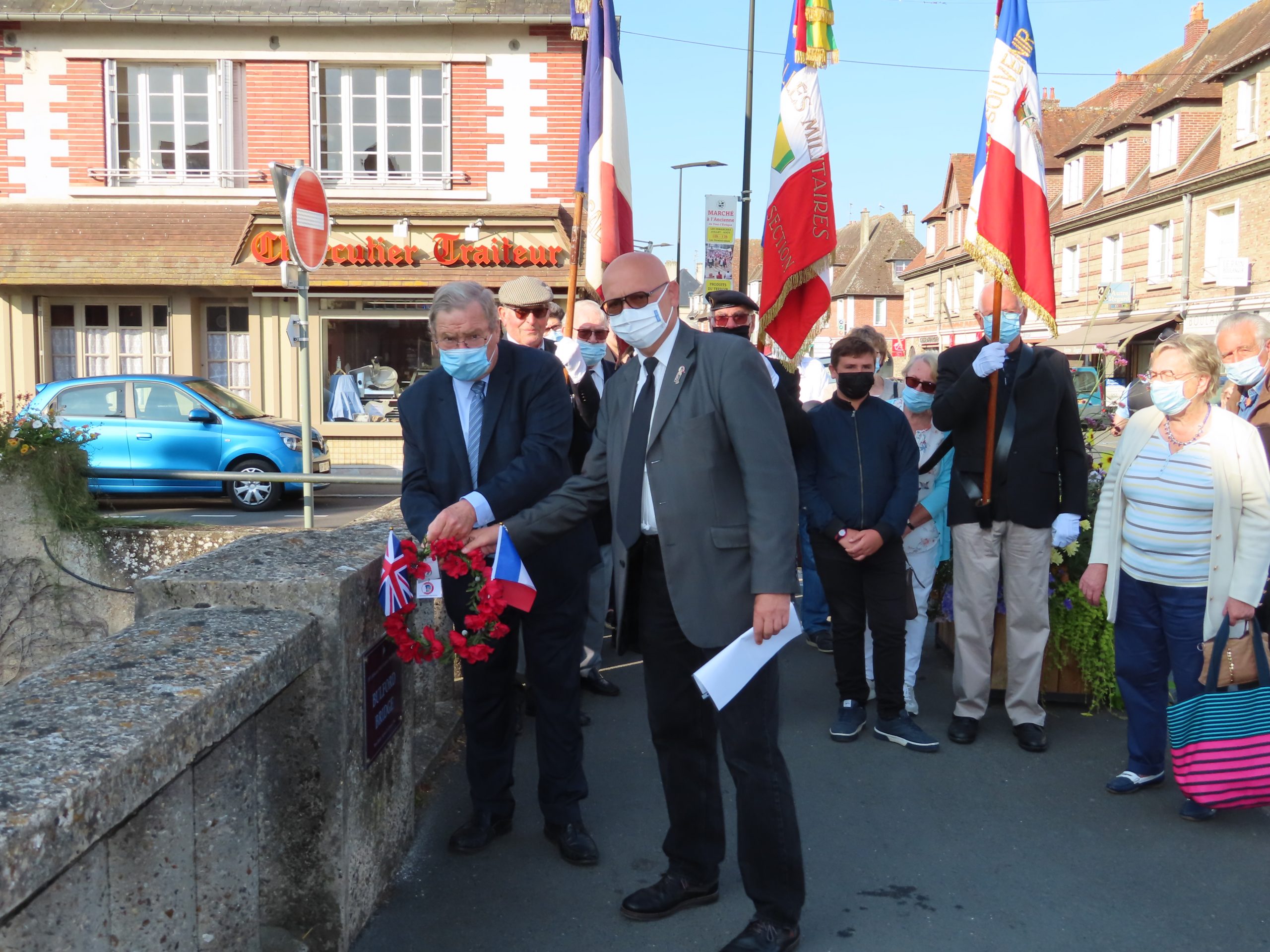 Cérémonie du 25 août 2021 organisée à Pont-L’Evêque (Calvados), en présence du délégué général du Souvenir Français pour le Calvados, des autorités civiles et militaires et des élus locaux. Une couronne de coquelicots a été déposée sur le « Bulford Bridge », en hommage aux libérateurs britanniques de Pont-L’Evêque le 24 aout 1944.