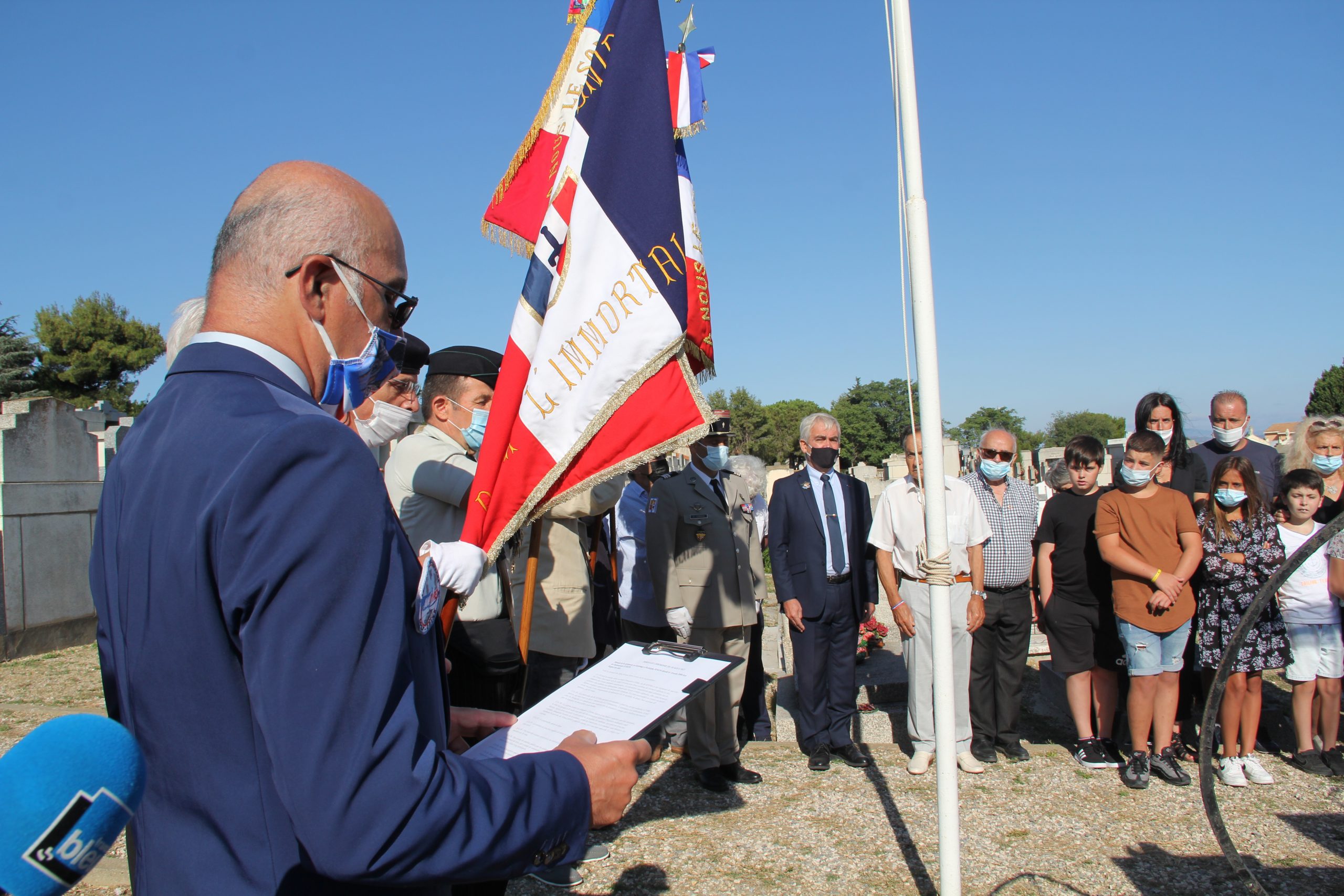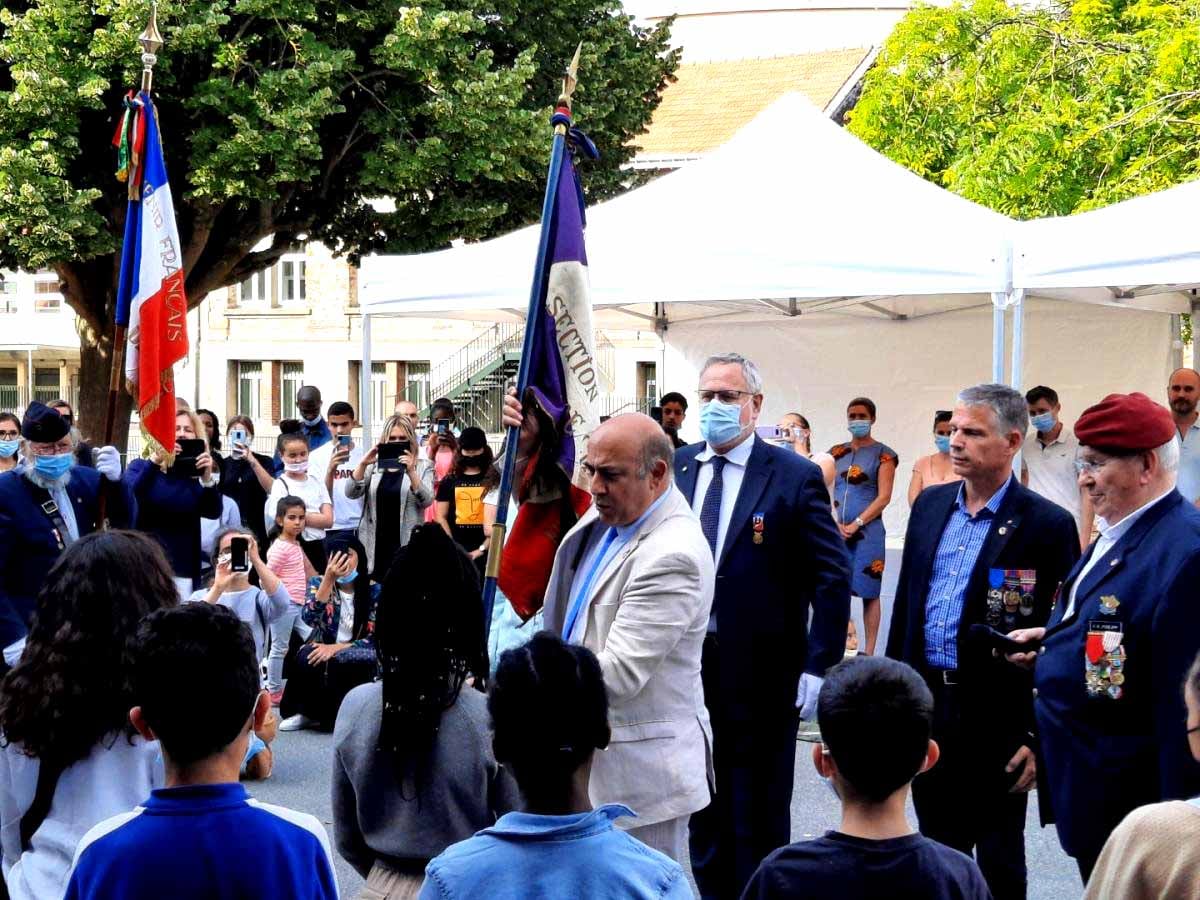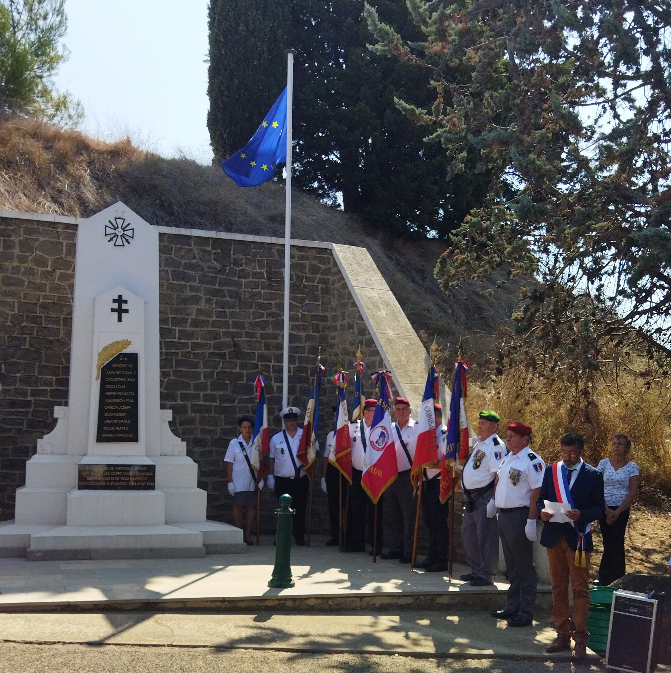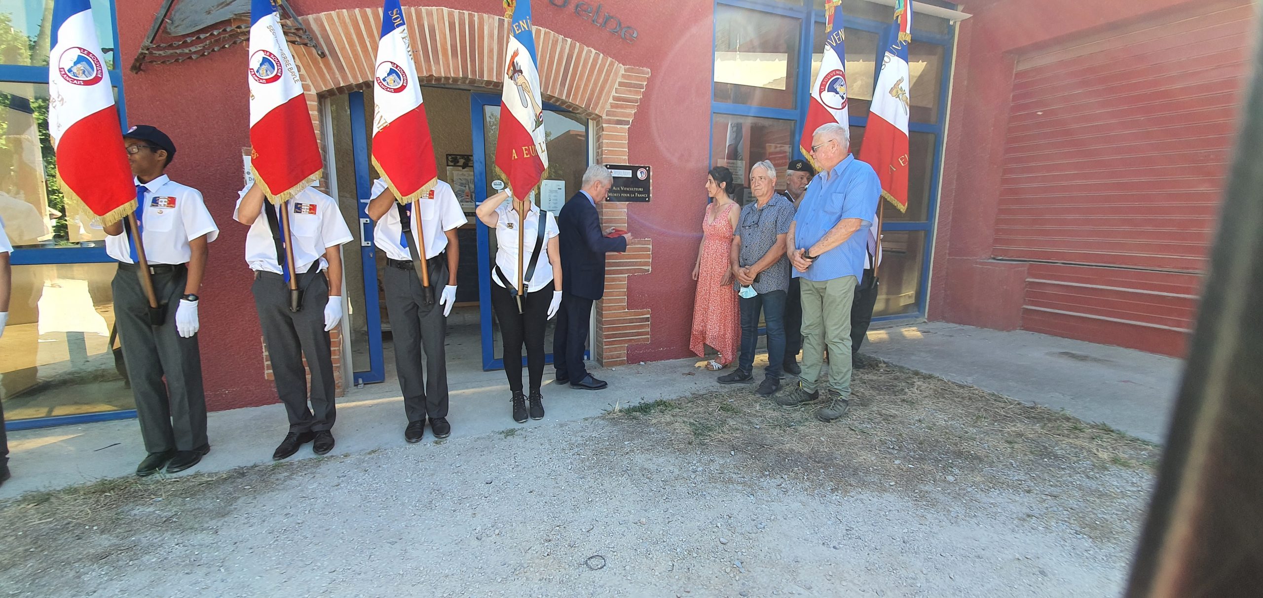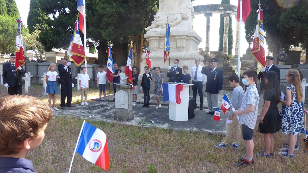 Cérémonie en hommage au Président de la République Gaston Doumergue, organisée par la délégation générale du Souvenir Français du Gard le 14 juillet 2021 à Aigues-Vives.