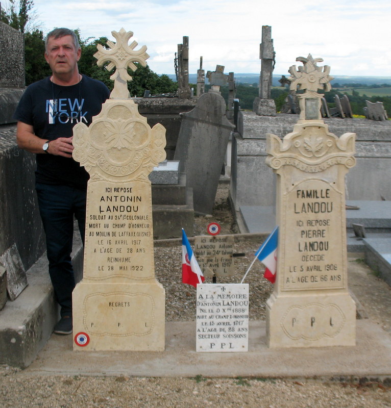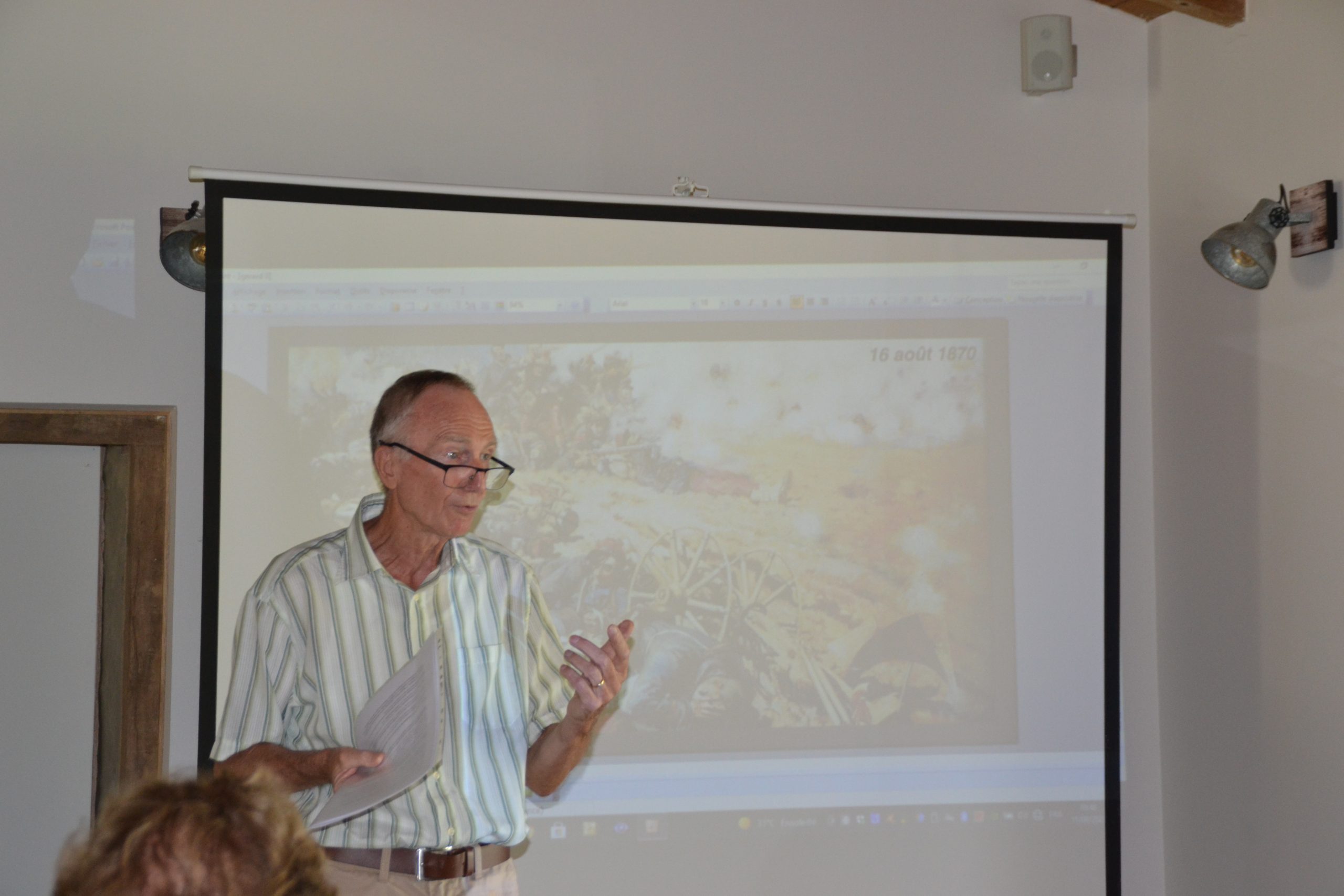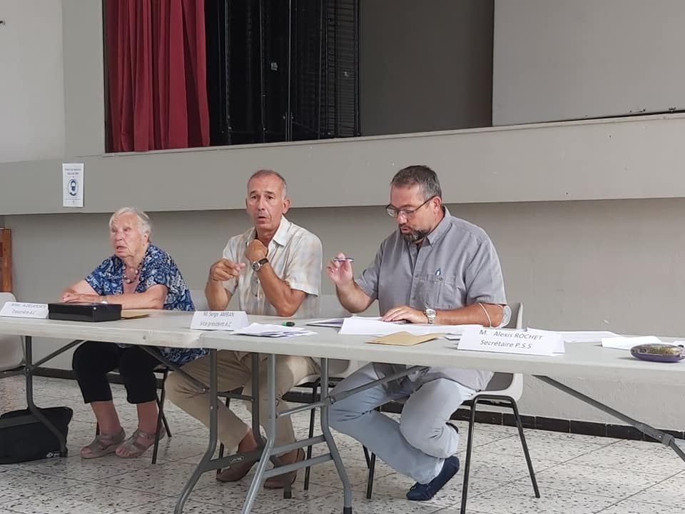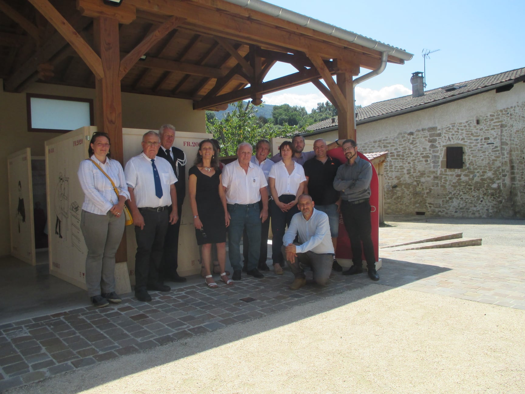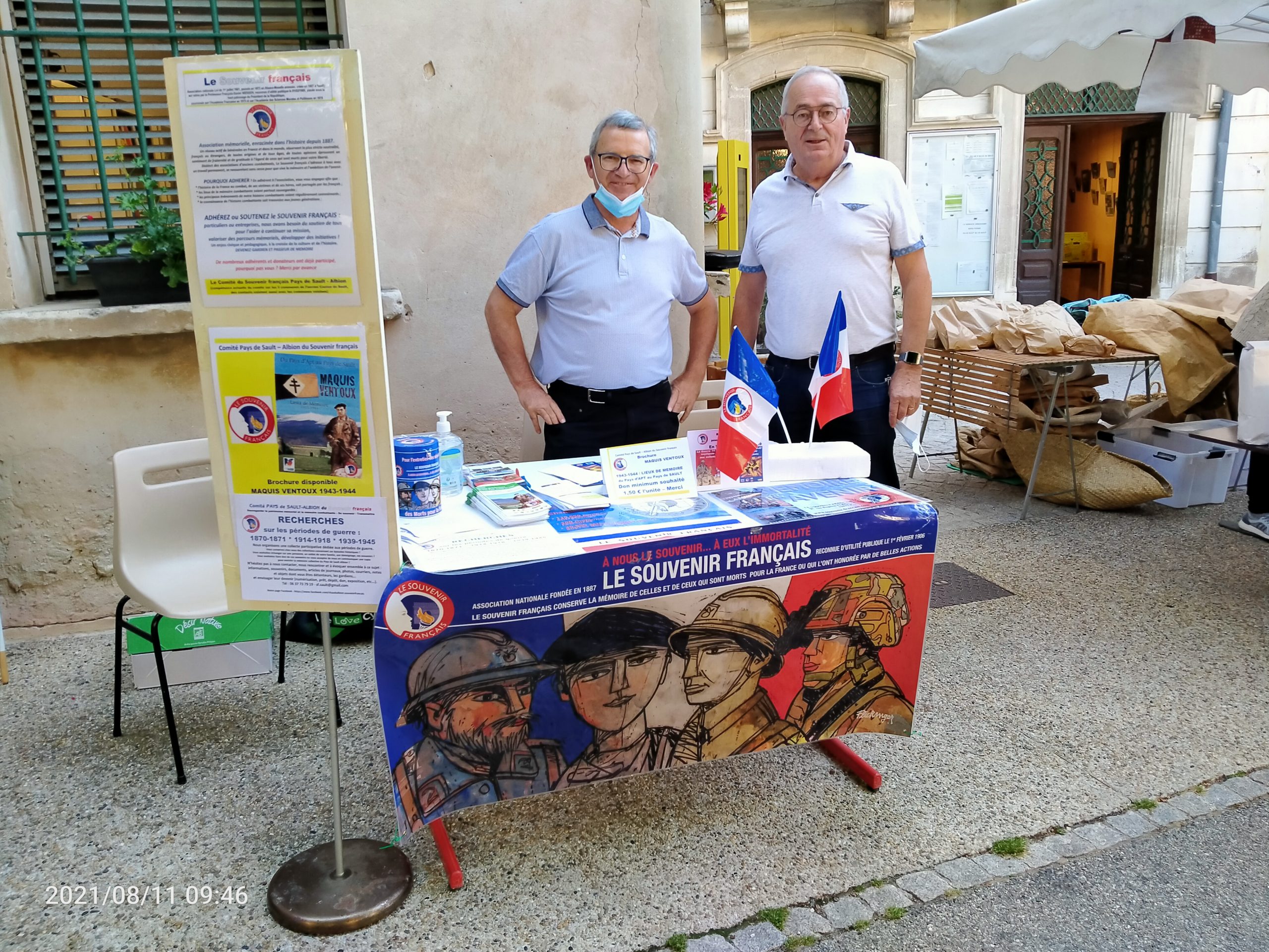 Remise d’un chèque du Souvenir Français à la commune d’Airoux (Aude) le 6 août 2021 par le président du comité de Castelnaudary, pour aider la commune à rénover son monument aux Morts, sur lequel Le Souvenir Français a demandé l’ajout du nom d’un airouxois, mort au cours du conflit franco-prussien de 1870-1871.