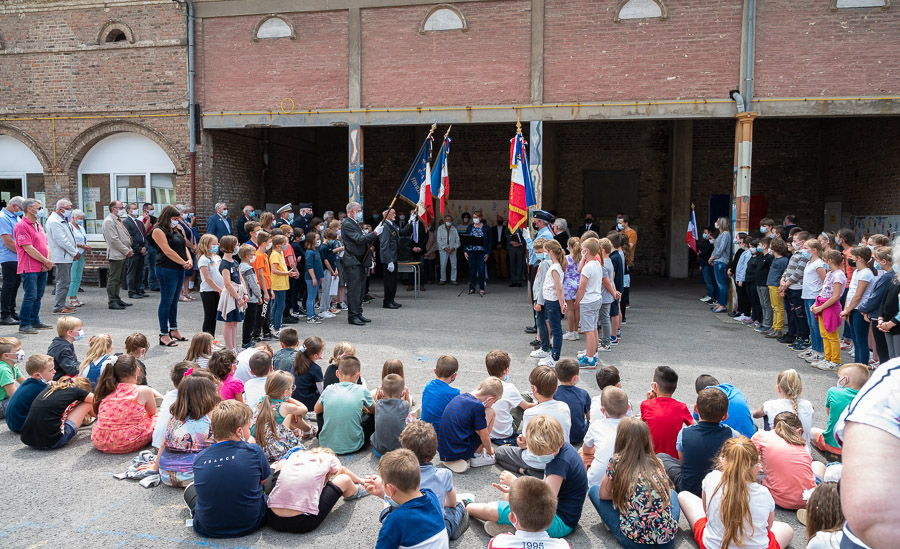 Cérémonie en hommage au Président de la République Albert Lebrun organisé par la délégation générale du Souvenir Français de Meurthe-et-Moselle en présence des descendants d’Albert Lebrun, des autorités civiles et militaires, des élus locaux, le 16 juillet 2021.