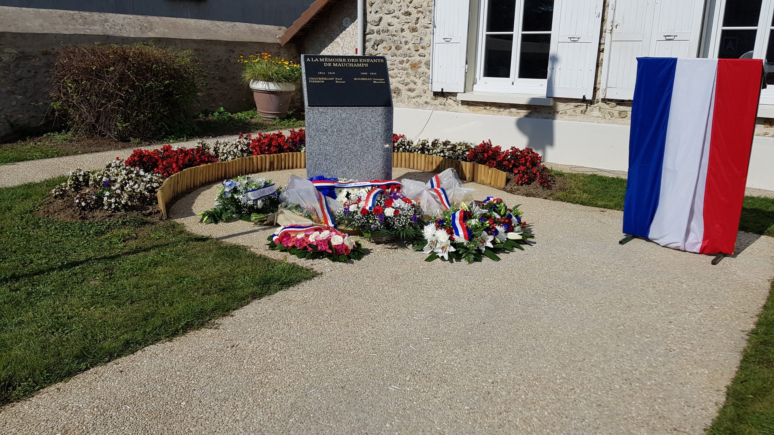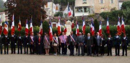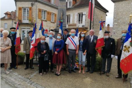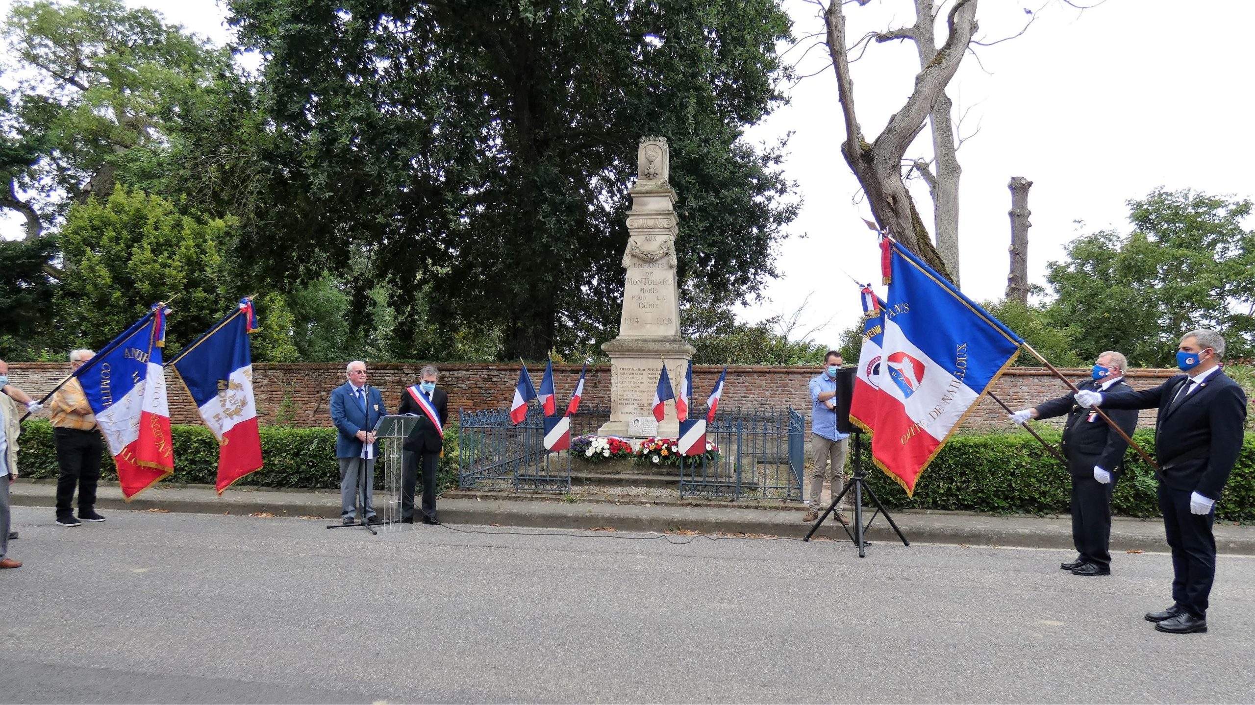 Cérémonie devant le monument aux Morts de Montgeard à laquelle le comité du Souvenir Français du Lauragais (Haute-Garonne) a participé le 5 septembre 2021, en présence des élus locaux, du maire de la commune, des représentants d’associations.