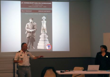 Hommage à un soldat napoléonien, le lieutenant Pierre Monzie, organisé à Cadouin (Dordogne), par le comité du Souvenir Français de Bergerac, en présence des autorités civiles et militaires, le 25 septembre 2021.