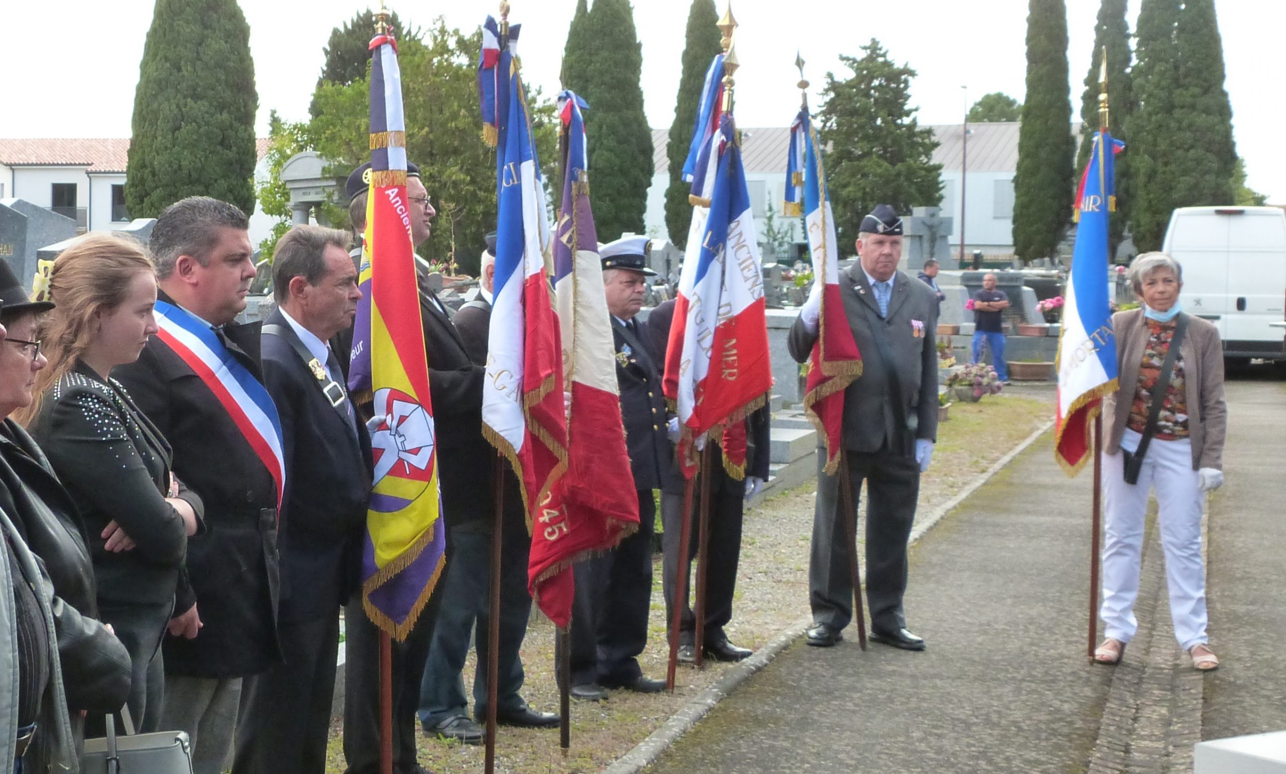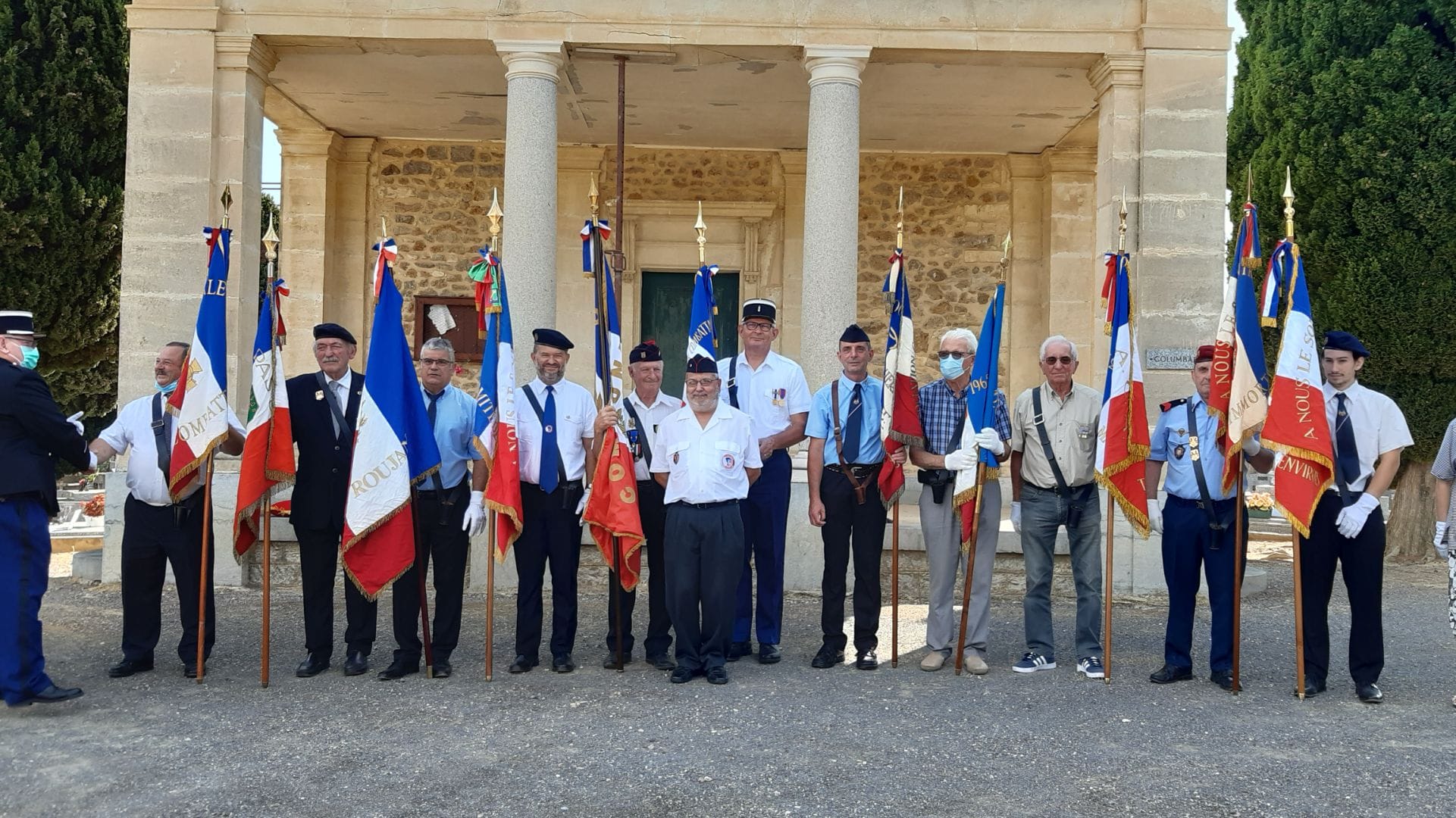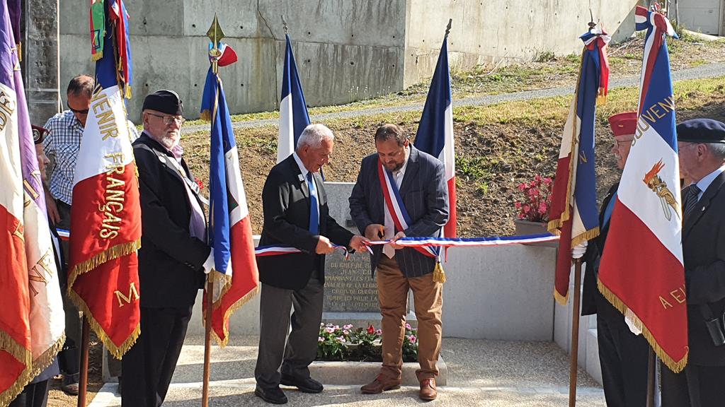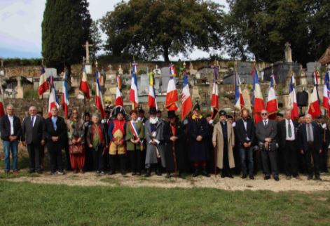 Cérémonie d’inauguration de la tombe du soldat Georges Arribat, « Mort pour la France » en septembre 1918 organisée par le comité du Souvenir Français de Caux-Roujan (Hérault), en présence du comité du Souvenir Français de Saint-Chinian, du maire de Roujan, des élus locaux, et des autorités civiles et militaires, le 11 septembre 2021.