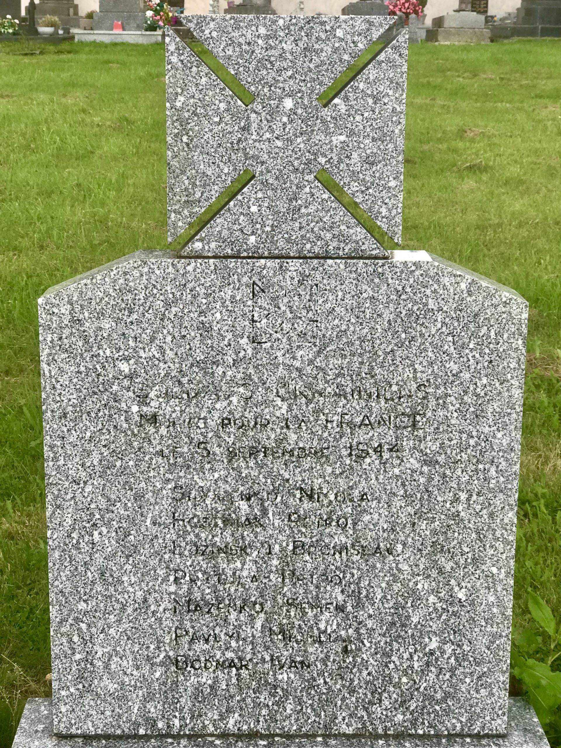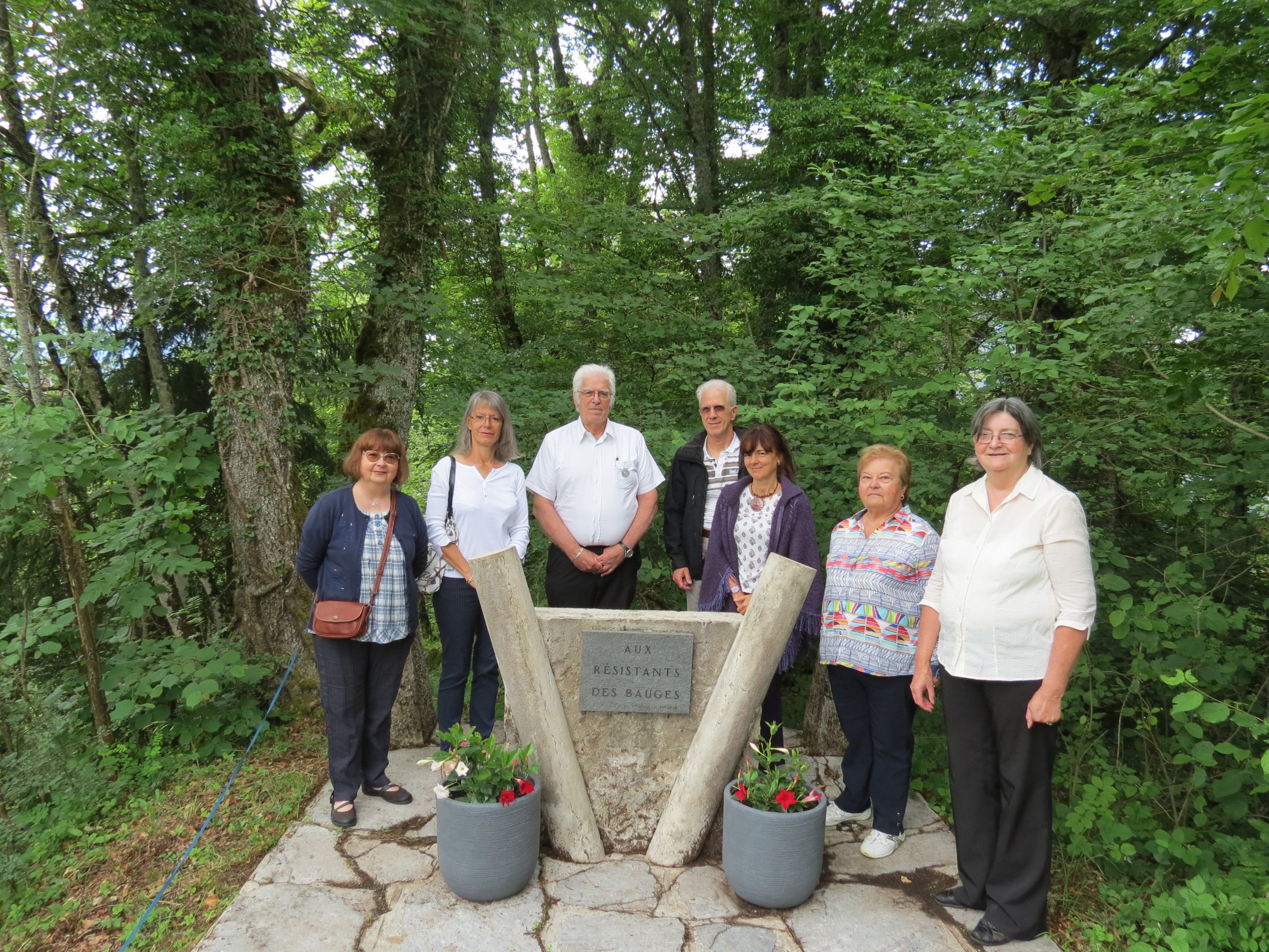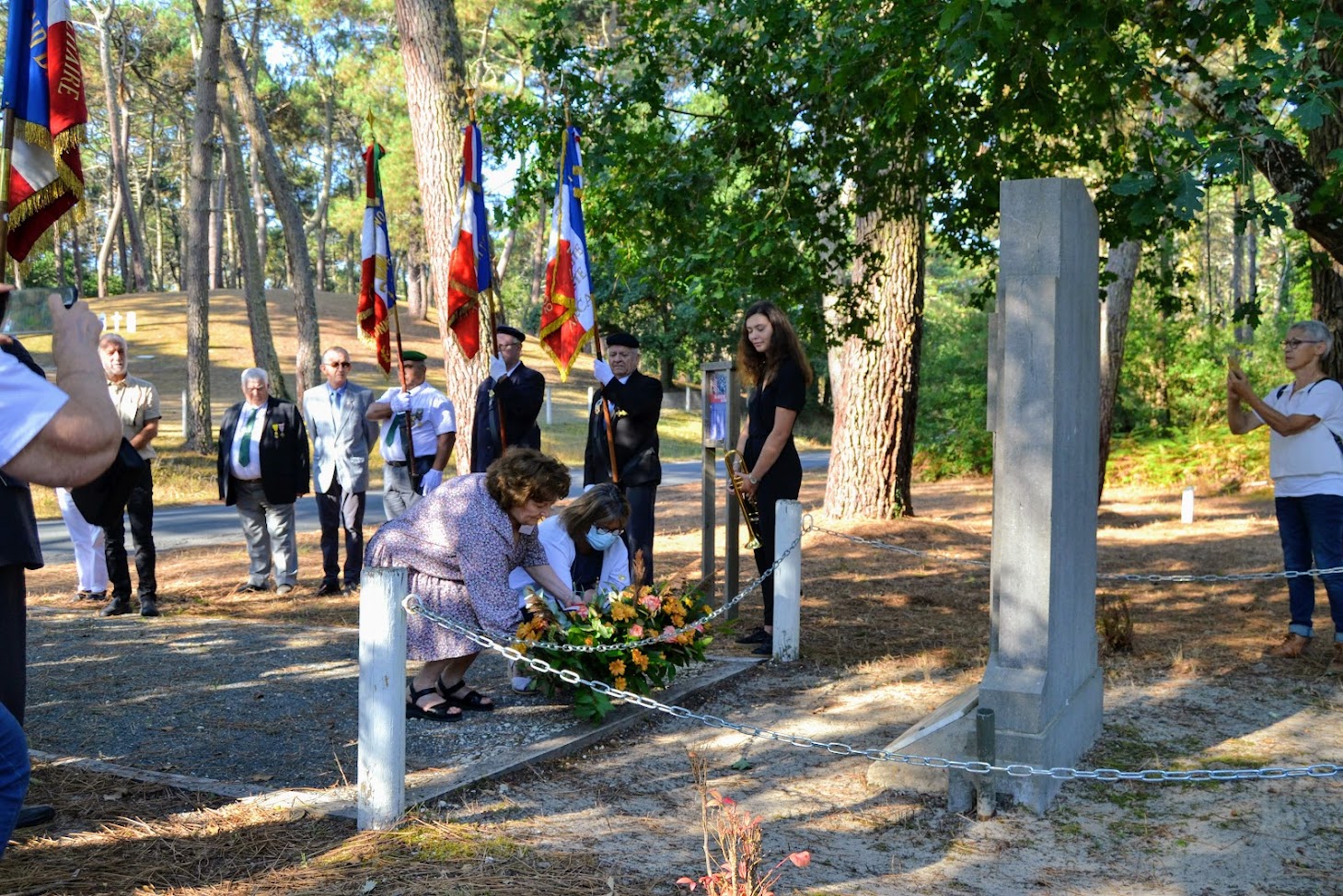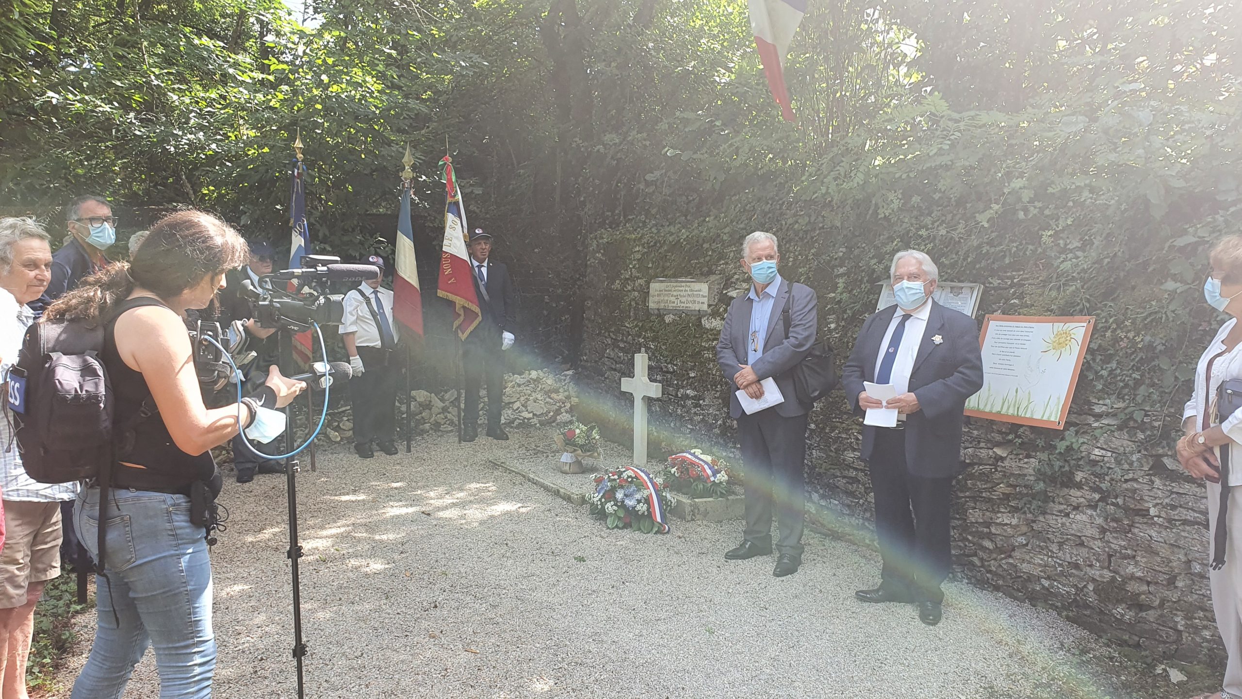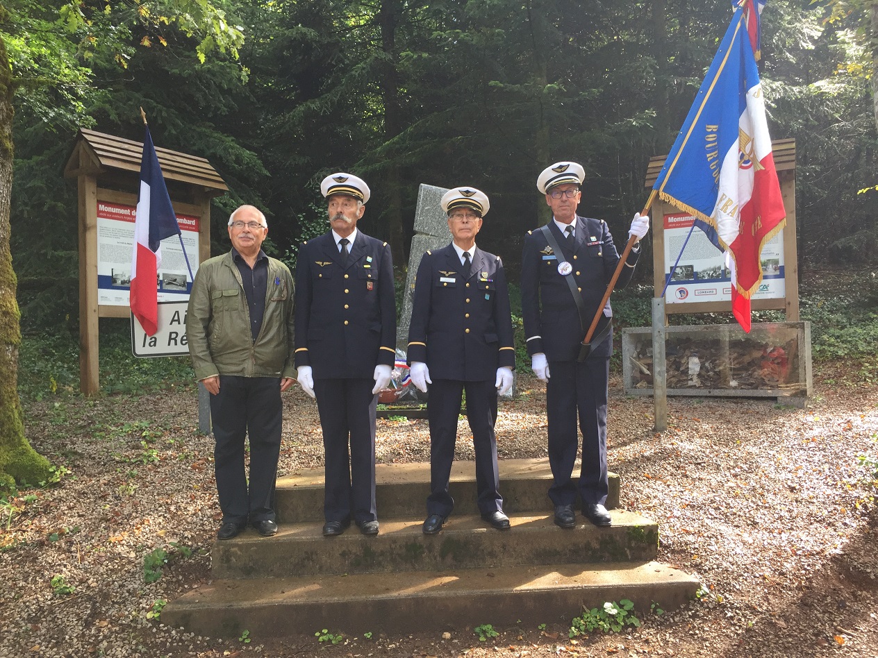 Hommage rendu par le Souvenir Français en présence de la famille des résistants, aux 4 résistants arrêtés et exécutés le 5 septembre 1944 par les Allemands dans La Combe de Chailluz (Doubs), 4 septembre 2021.