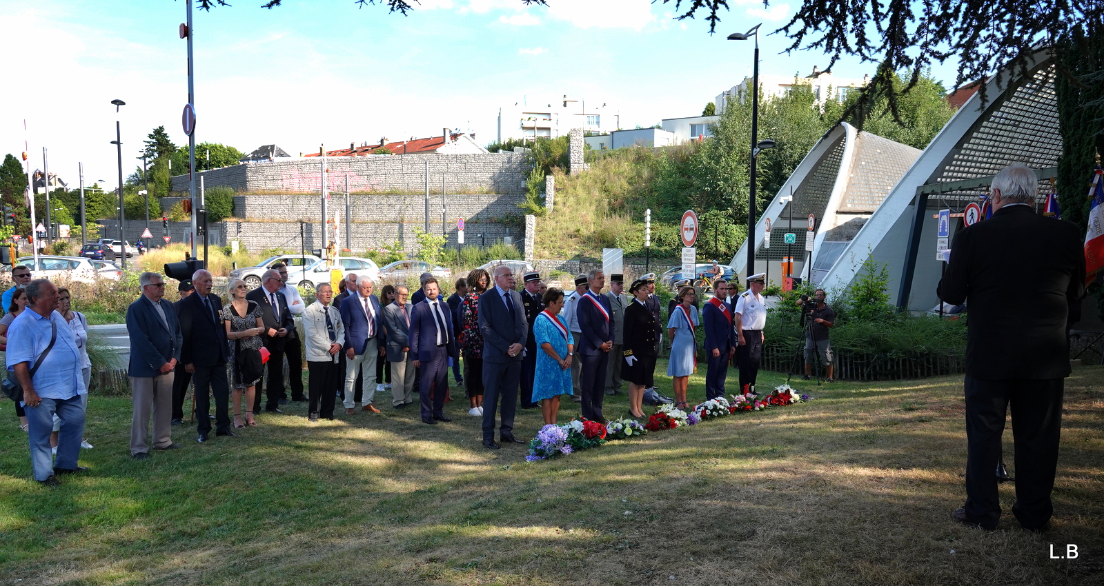 Cérémonie en hommage aux victimes du bombardement du 6 septembre 1944 qui a fait 319 morts ensevelis dans le tunnel Jennel, obstrué par une bombe, organisée par le comité du Souvenir Français du Havre, en présence du délégué général de la Seine-Maritime, des élus locaux et des adhérents, le 7 septembre 2021.