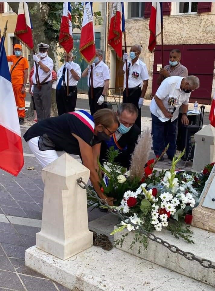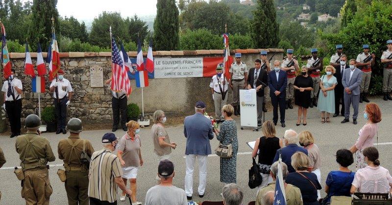 Participation du comité de Vence (Alpes-Maritimes) à la cérémonie commémorant la libération de la ville, le 27 août 2021, en présence des autorités civiles et militaires, des familles de résistants et de combattants morts durant la libération de la ville, des adhérents du Souvenir Français et des élus locaux.