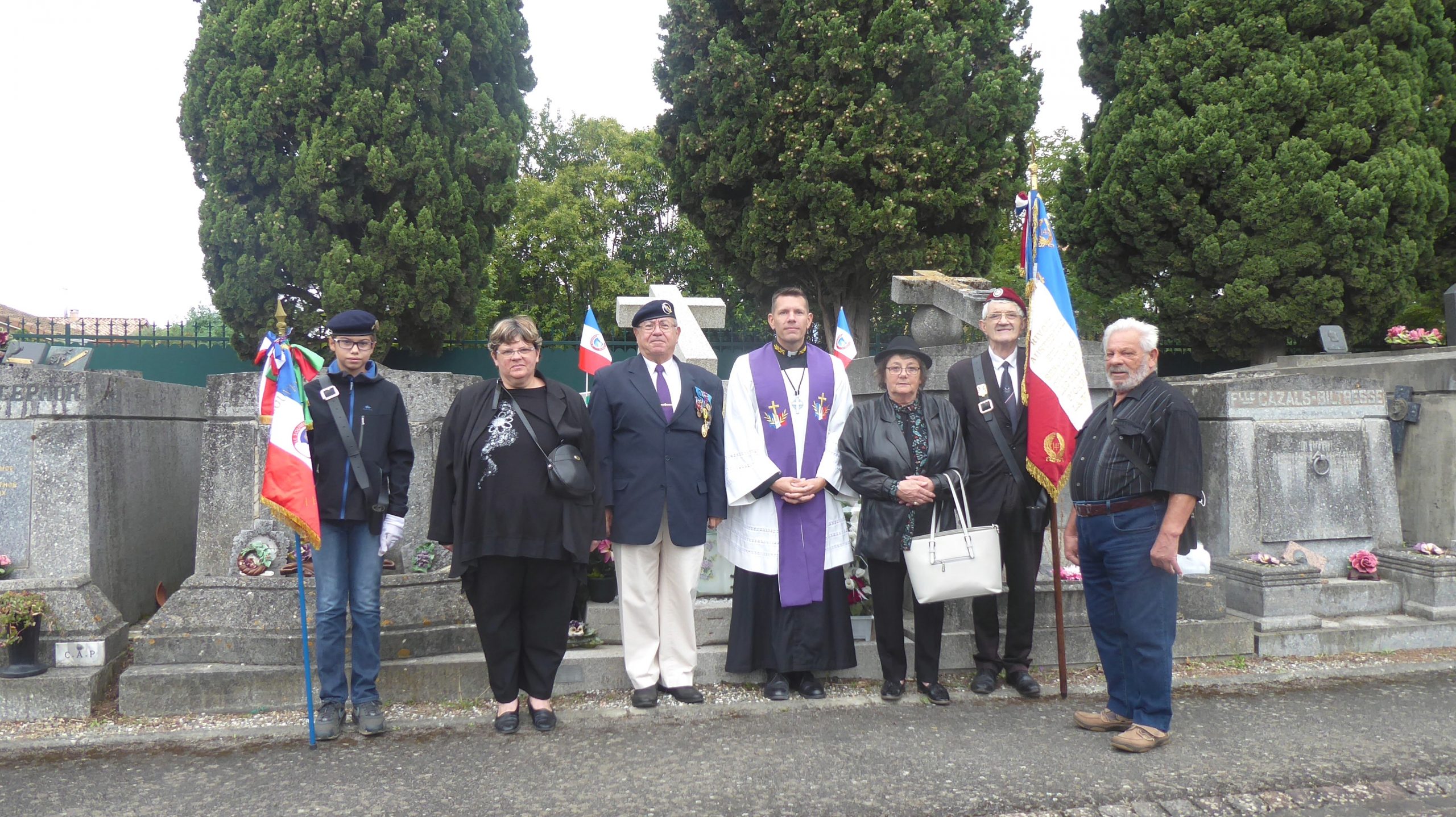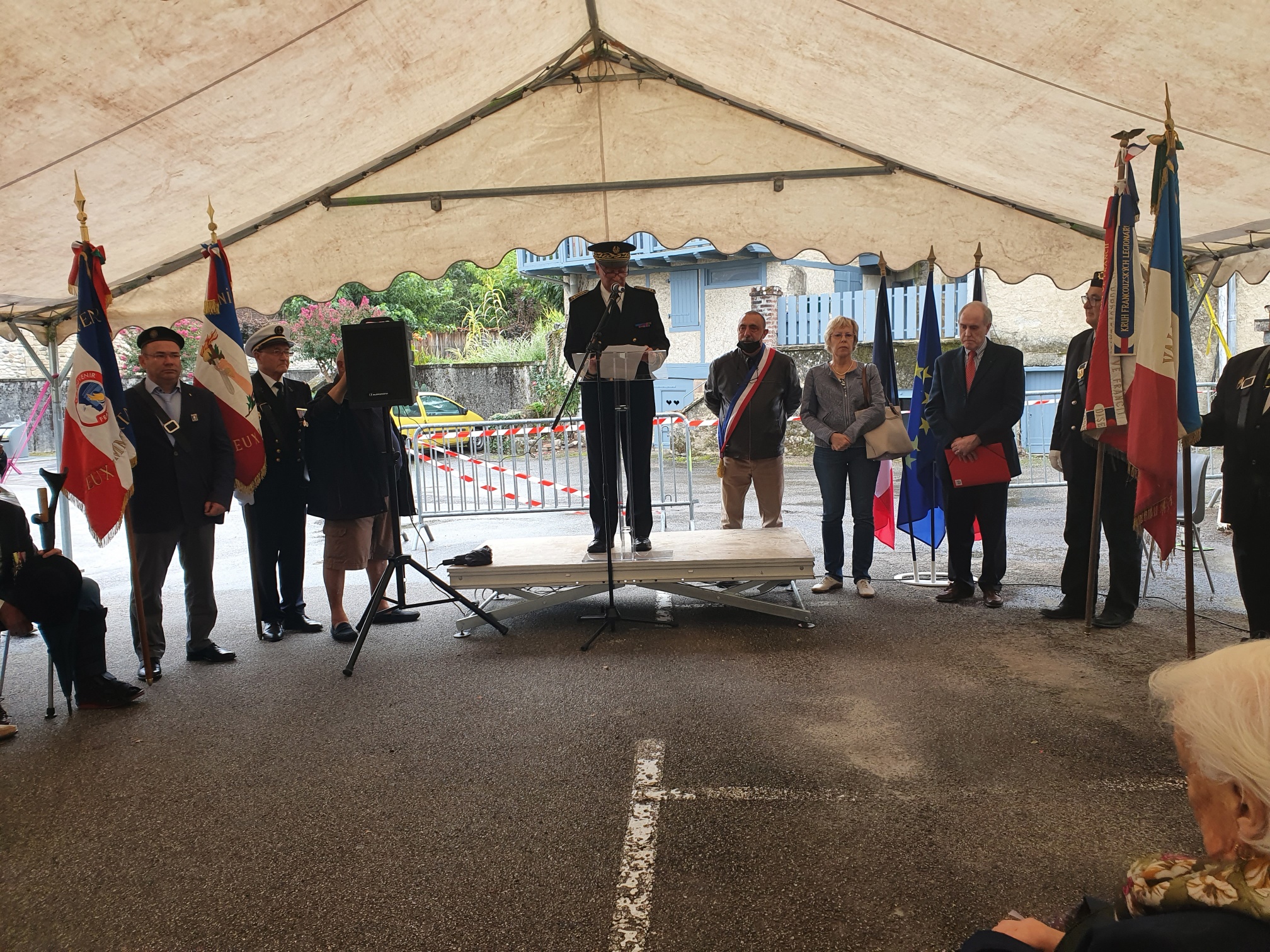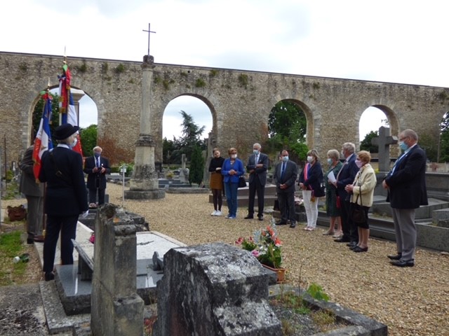 Cérémonie en hommage à deux combattants morts au combat durant la Bataille de France, organisée par la mairie de Leucamp (Cantal) et le comité du Souvenir Français, le 18 septembre 2021, au cimetière de la commune.