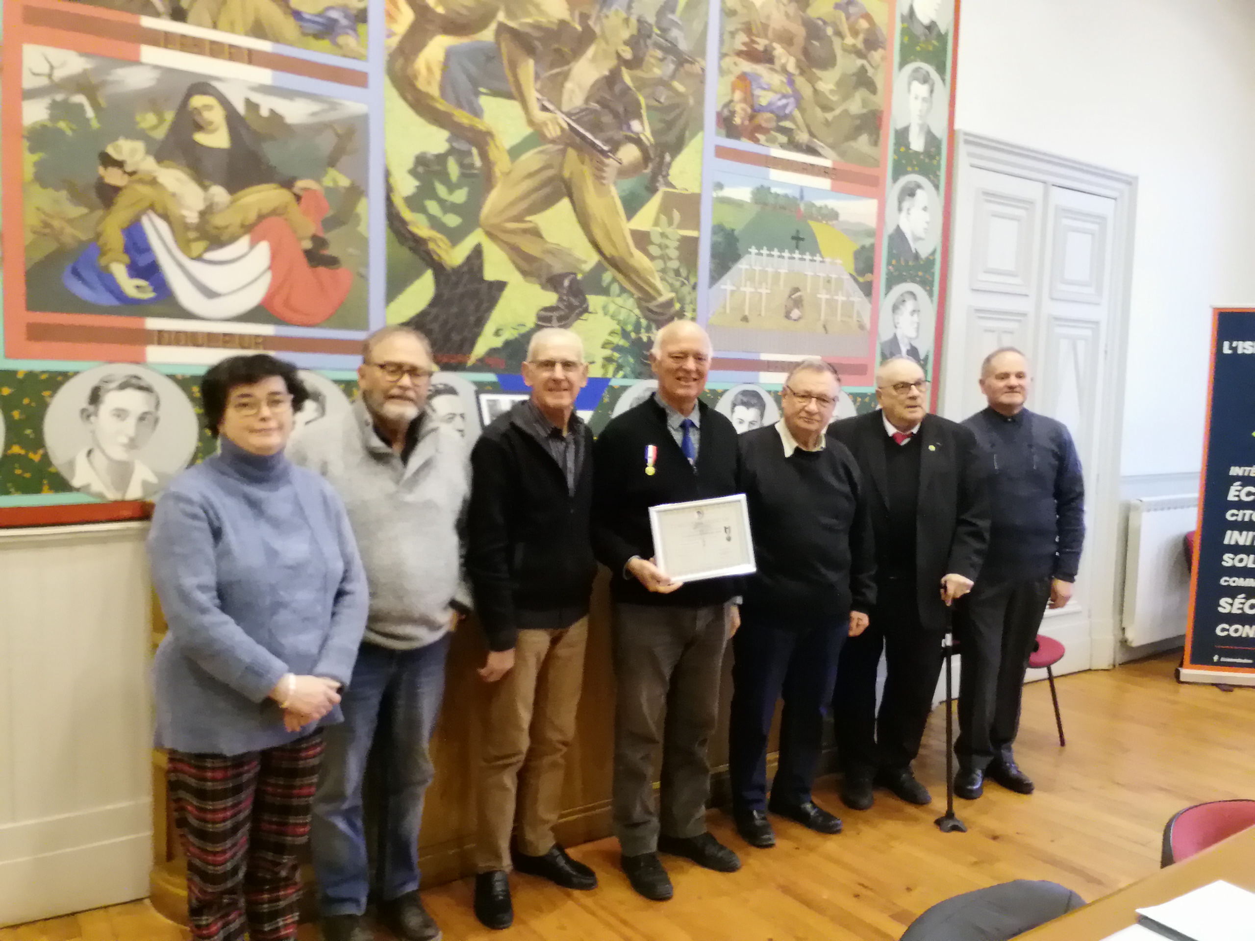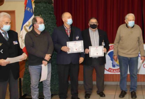 Cérémonie organisée par le comité de Bergerac (Dordogne) le 8 janvier 2022, à Saint-Capraise-de-Lalinde, afin de saluer l’action et la mobilisation des porte-drapeaux du comité, qui ont reçu à cette occasion des diplômes d’honneur. Le maire de la commune, également présent, s’est vu remetttre un chèque de 690 euros de la part du comité pour la restauration du monument aux morts.