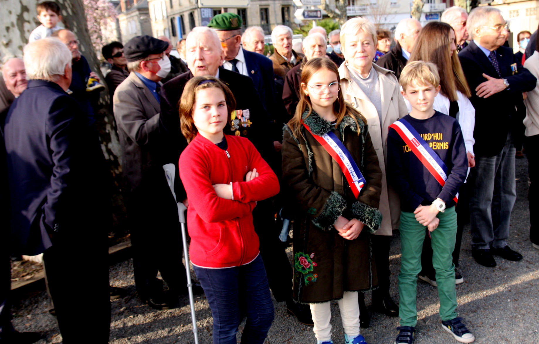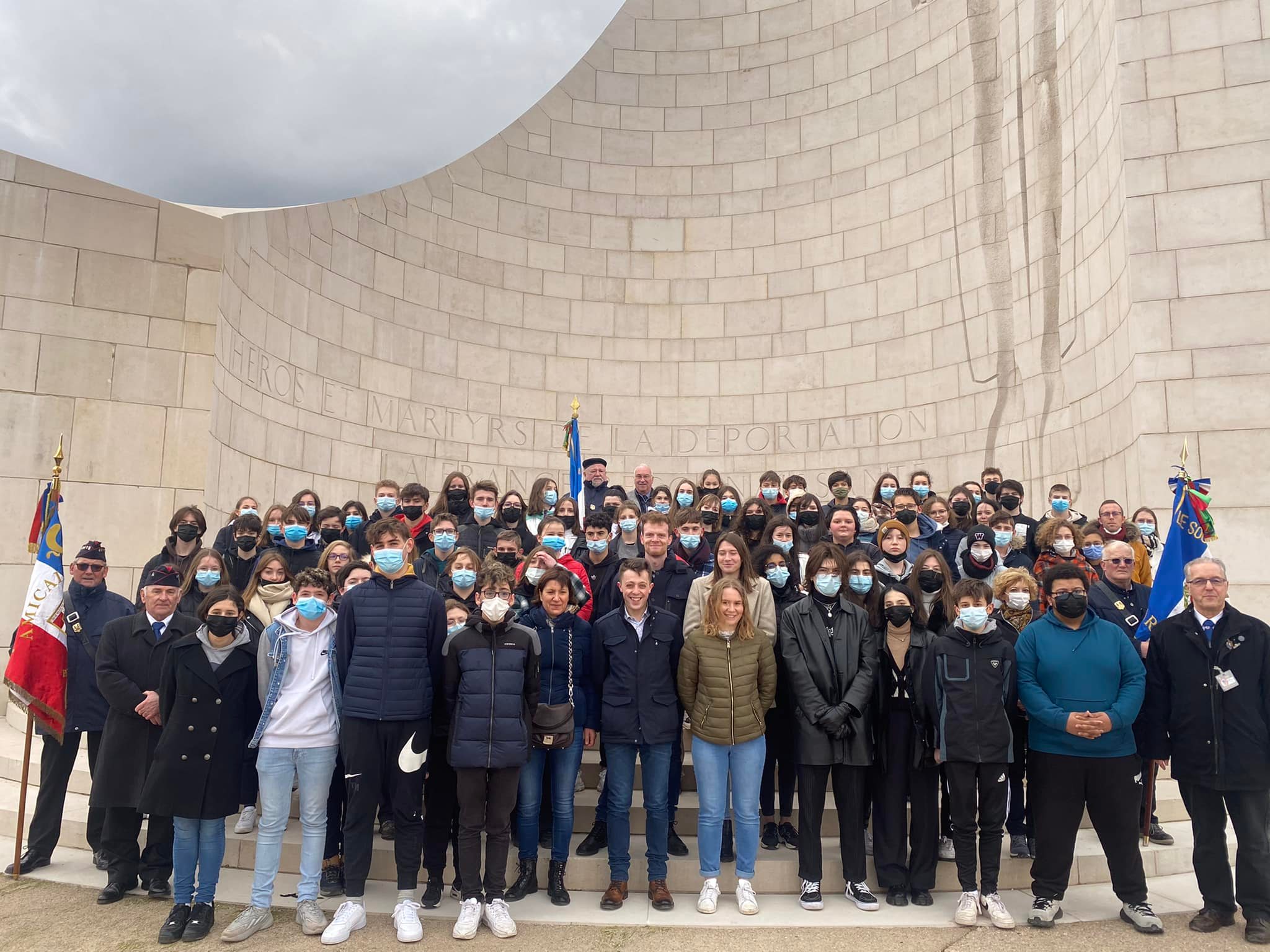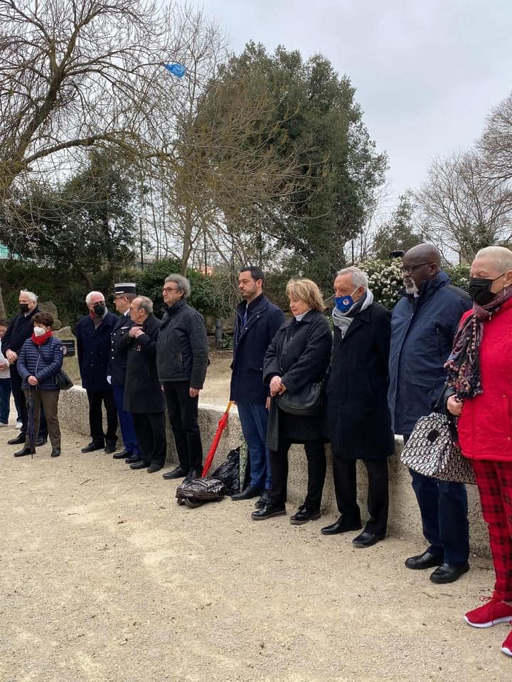 Cérémonie organisée à Ouistreham (Calvados) pour des enfants du 17ème arrondissement de Paris par les comités du Souvenir Français de Ouistreham et du 17ème arrondissement de Paris, en présence des élus locaux, du délégué général du Calvados, et du maire du 17ème arrondissement de Paris, le 14 mars 2022.
