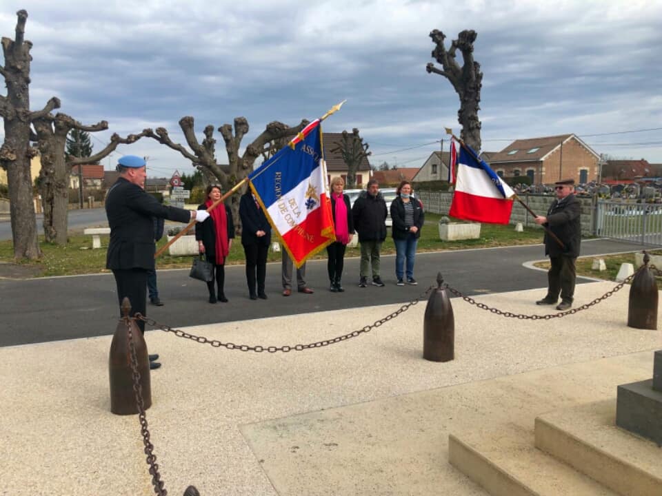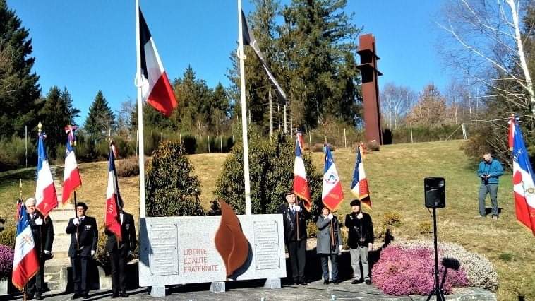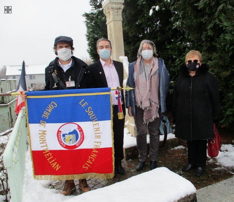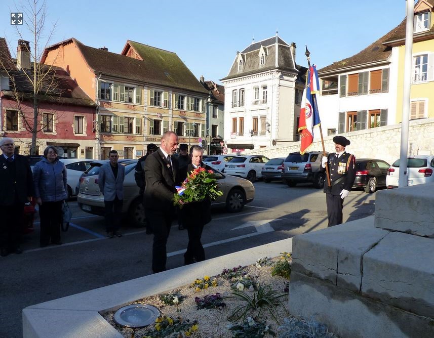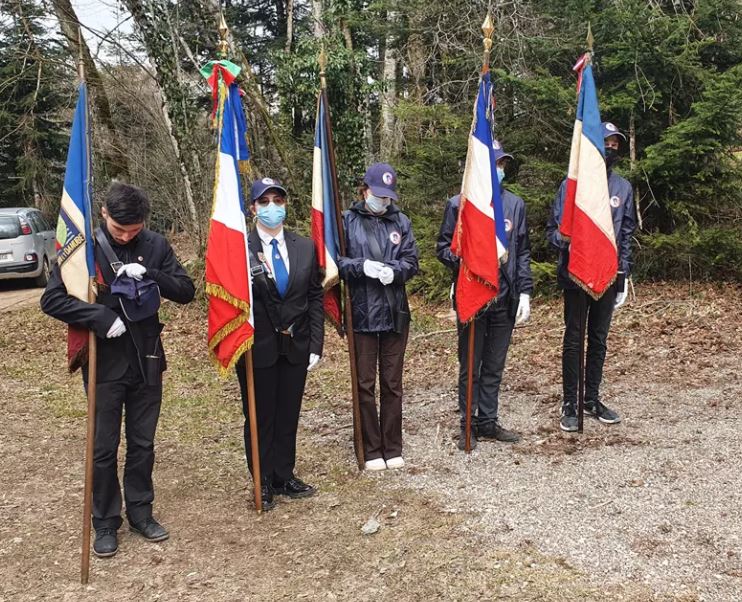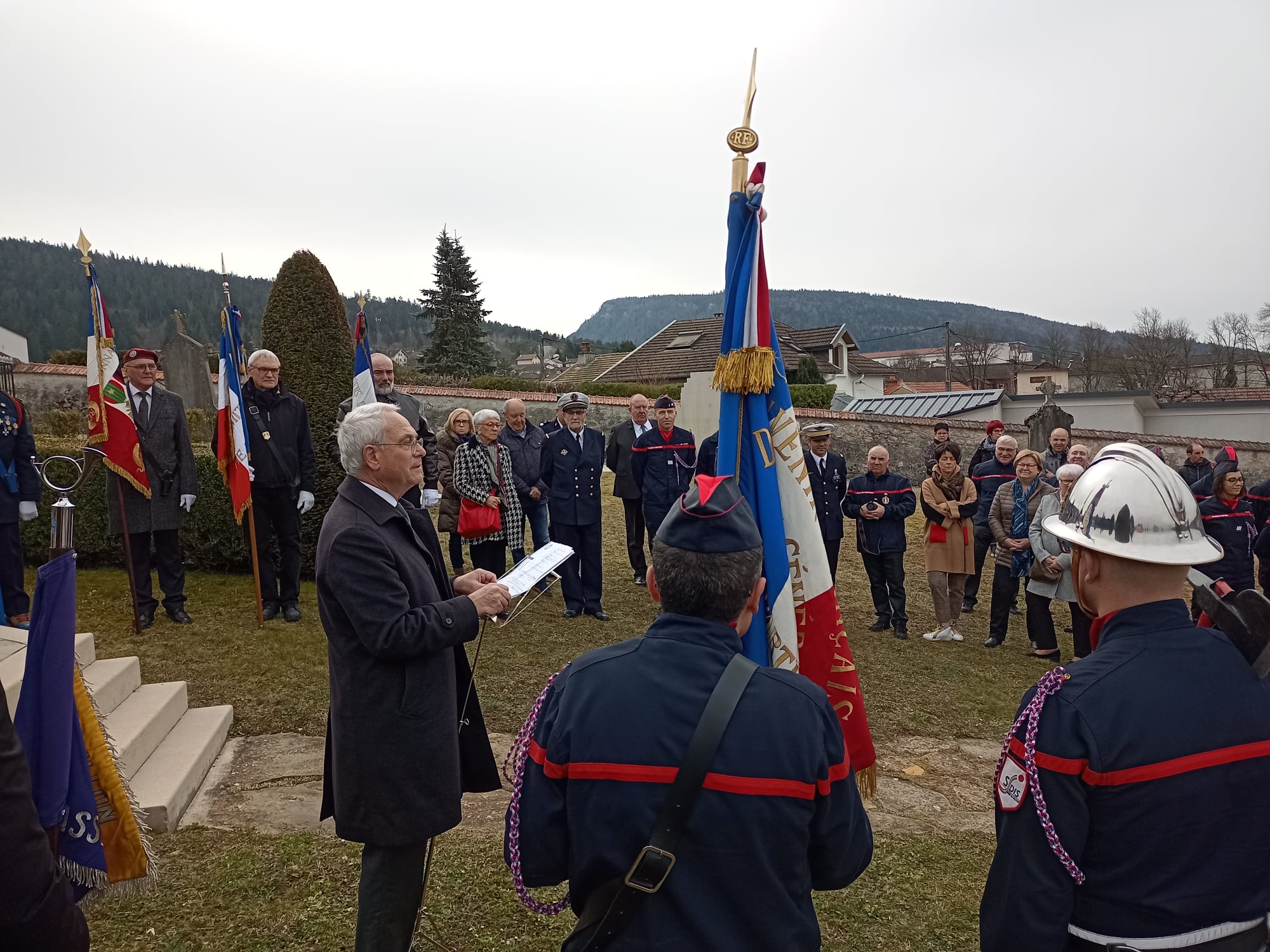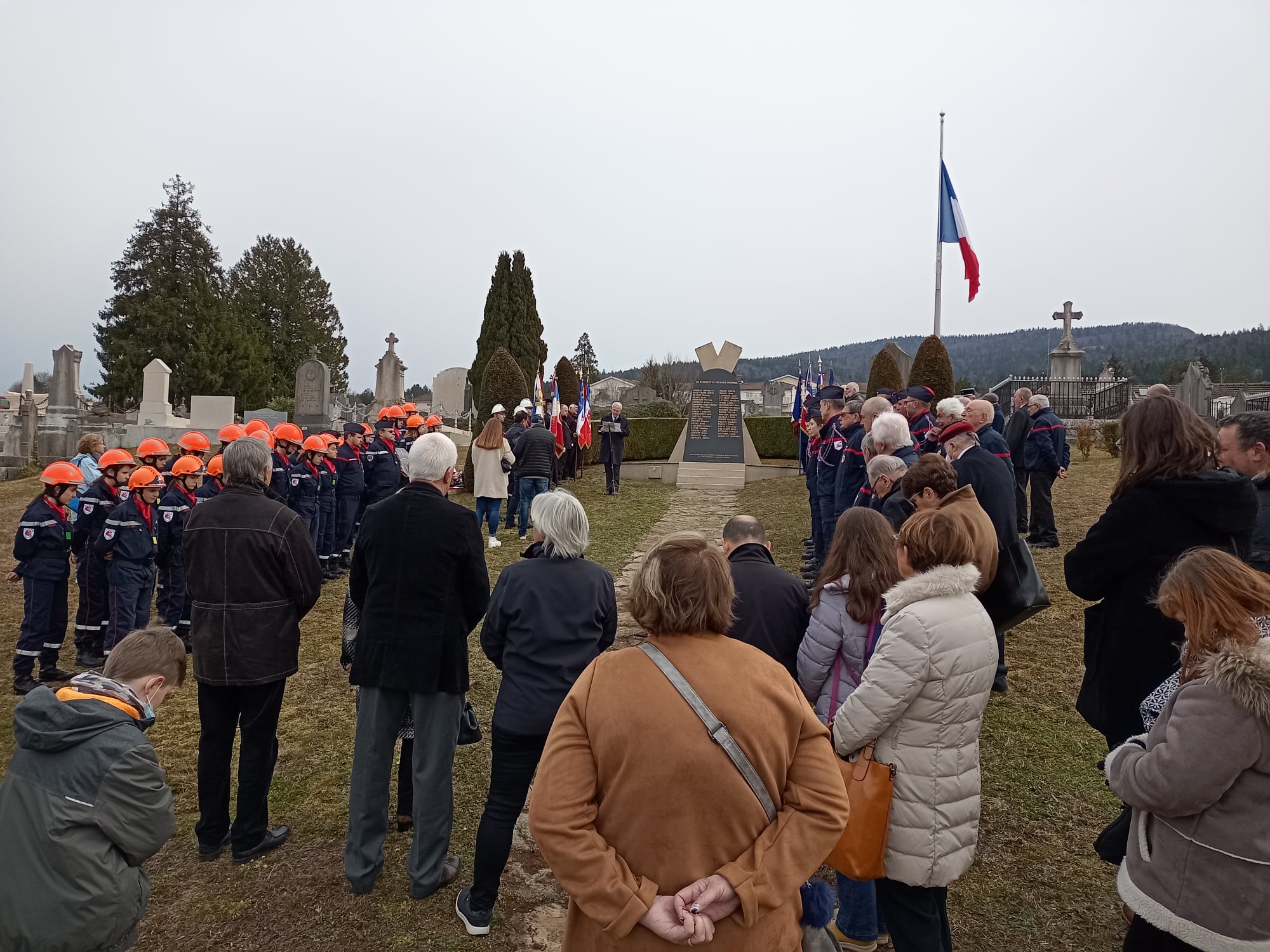 Cérémonie en hommage aux pompiers d’Oyonnax « Morts pour la France » durant la Première Guerre mondiale, le 12 mars 2022, organisée par le comité du Souvenir Français d’Oyonnax (Ain), en présence du président général du Souvenir Français, du délégué général du Souvenir Français de l’Ain, des représentants des sapeurs-pompiers, des autorités locales, du représentant de l’association de l’Ordre National du mérite, d’associations d’anciens combattants, de porte-drapeaux et d’adhérents du Souvenir Français.