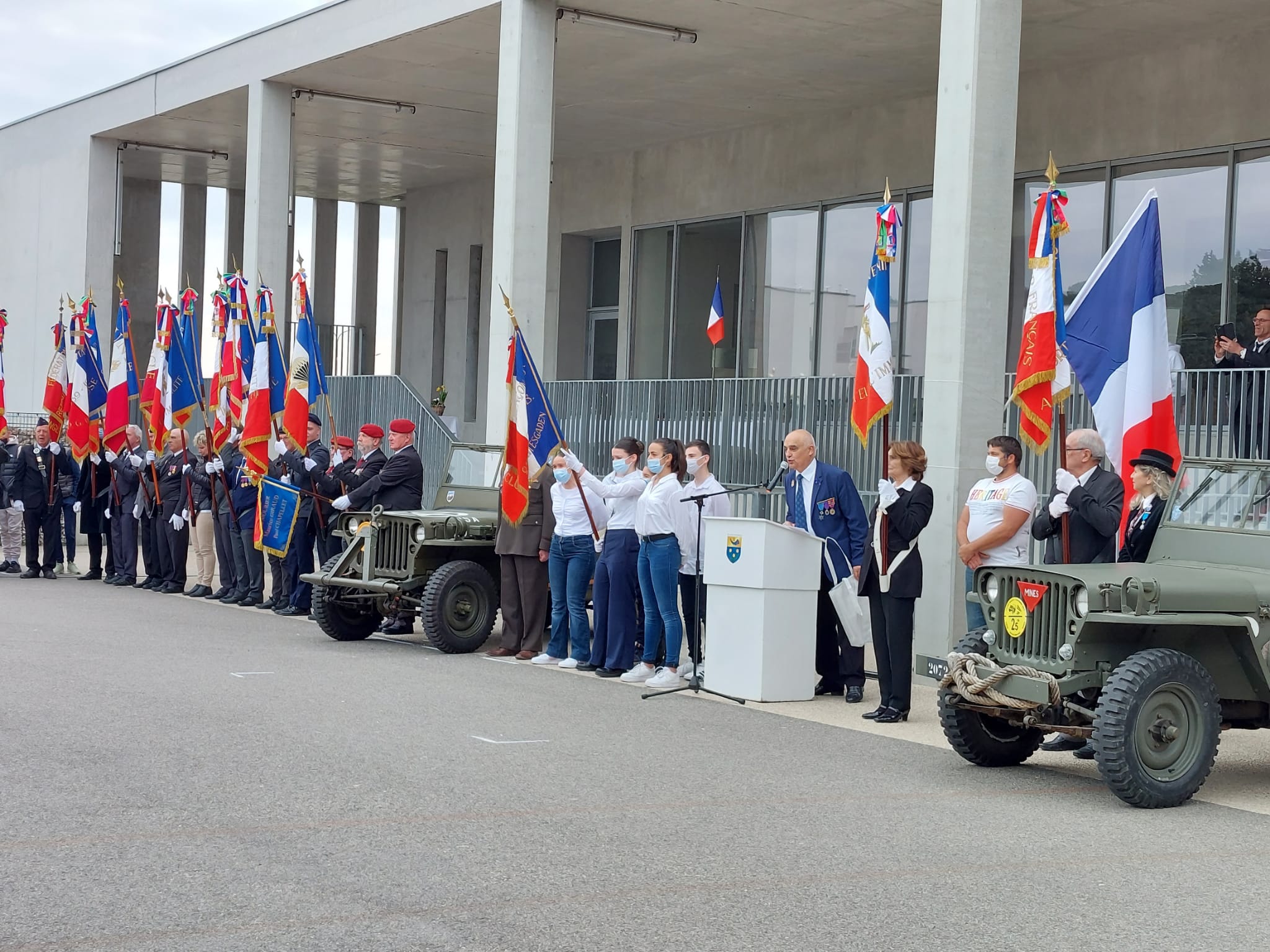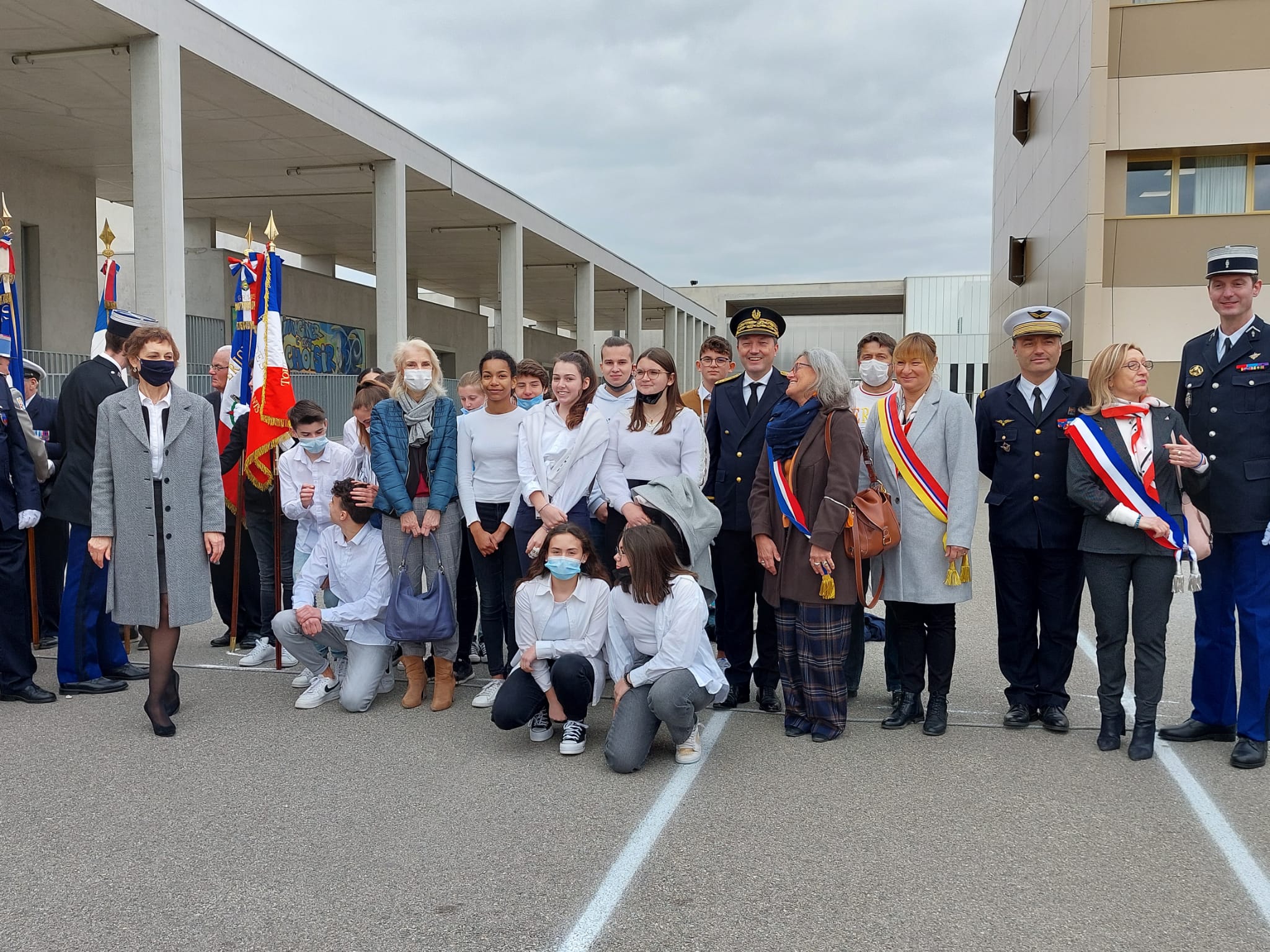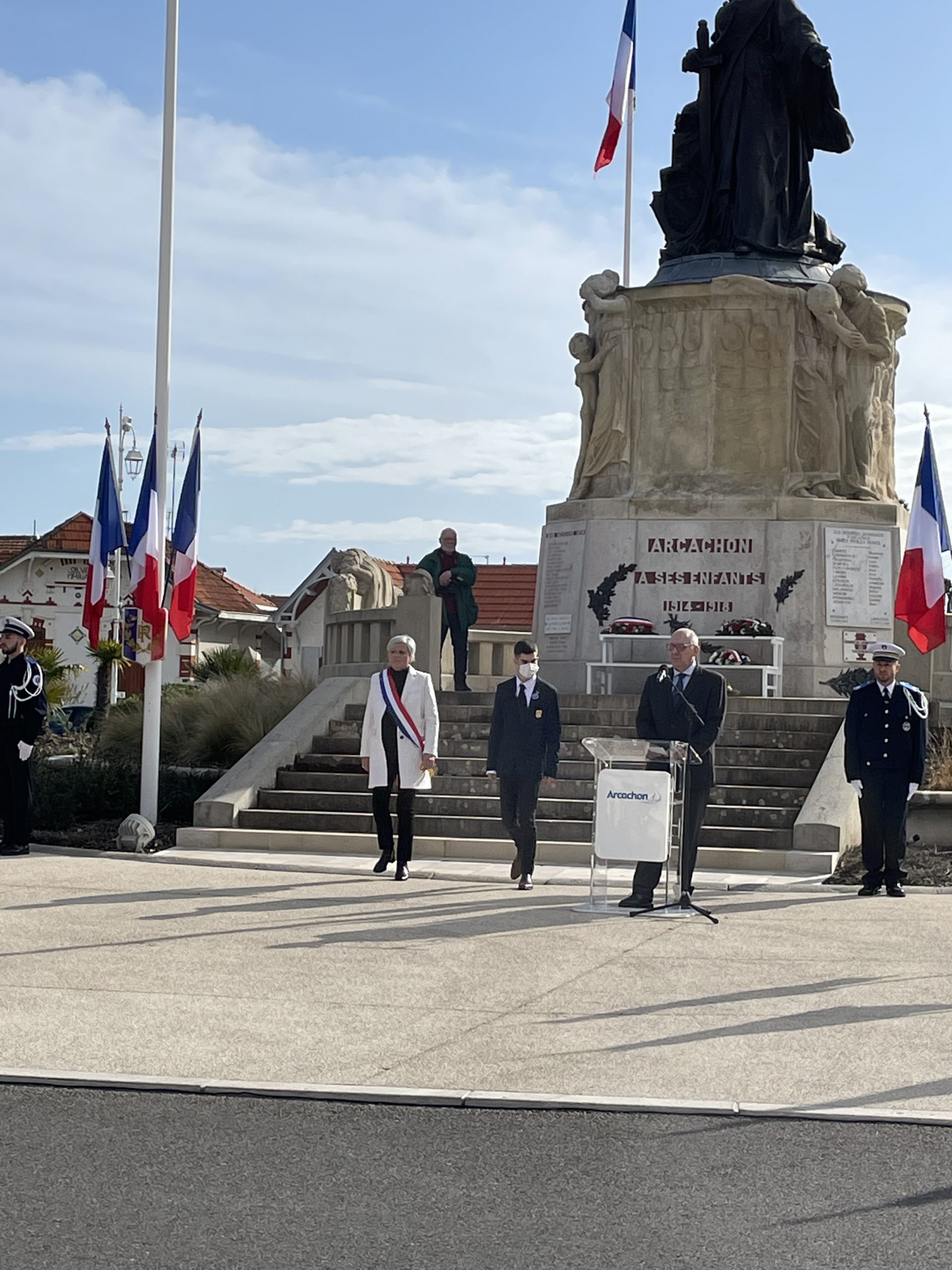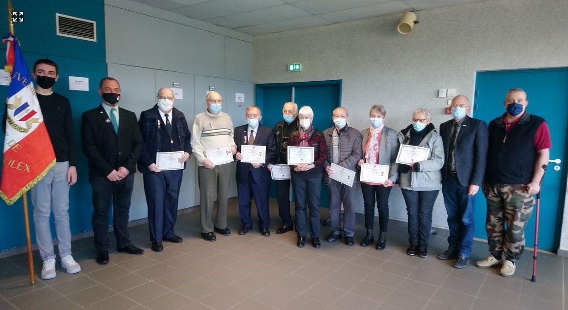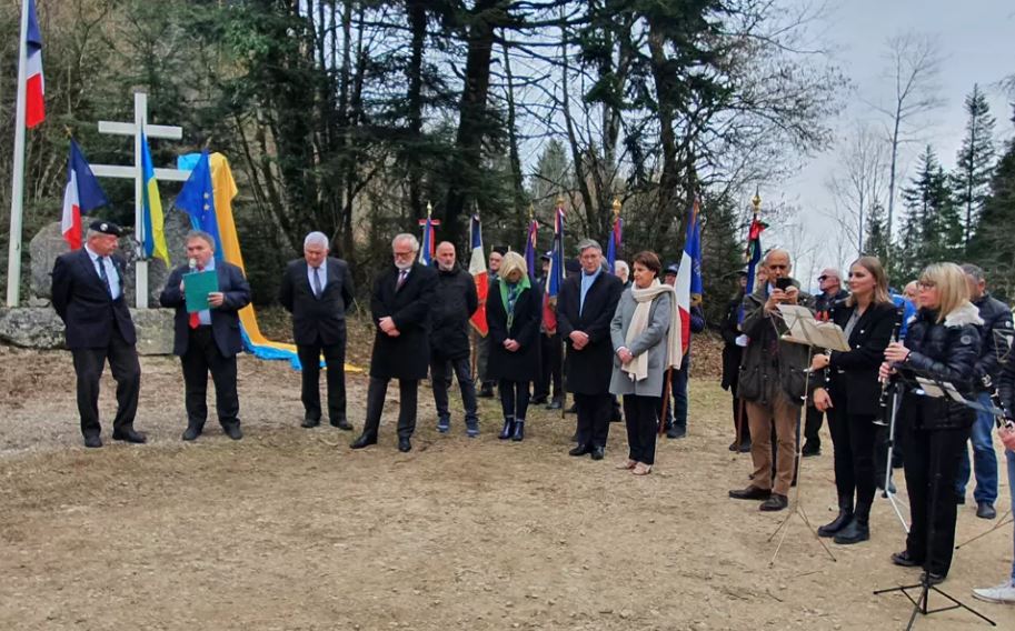 Cérémonie en hommage aux pompiers d’Oyonnax « Morts pour la France » durant la Première Guerre mondiale, le 12 mars 2022, organisée par le comité du Souvenir Français d’Oyonnax (Ain), en présence du président général du Souvenir Français, du délégué général du Souvenir Français de l’Ain, des représentants des sapeurs-pompiers, des autorités locales, du représentant de l’association de l’Ordre National du mérite, d’associations d’anciens combattants, de porte-drapeaux et d’adhérents du Souvenir Français.