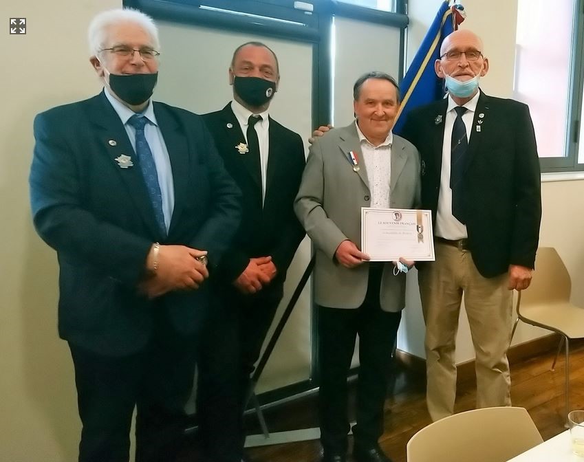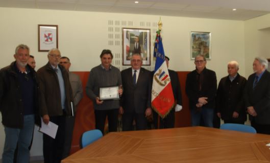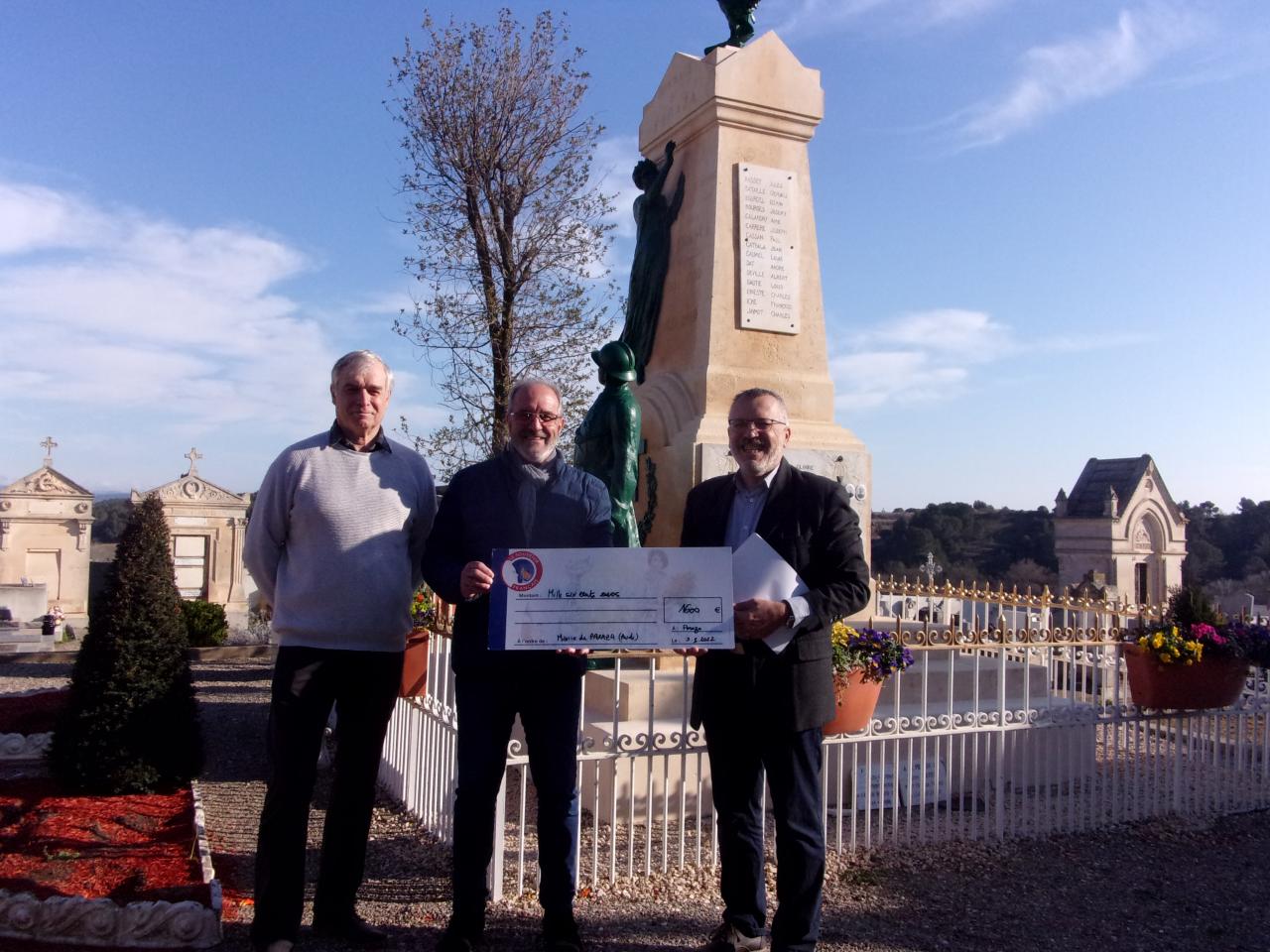 Remise d’un chèque de subvention à la mairie de Paraza (Aude) par le délégué général de l’Aude, le 3 mars 2022, pour les travaux de rénovations effectués avec le comité sur le monument aux morts de la commune, sur lequel a été ajouté le nom d’un mort pour la Patrie au cours du conflit franco-prussien de 1870-1871.