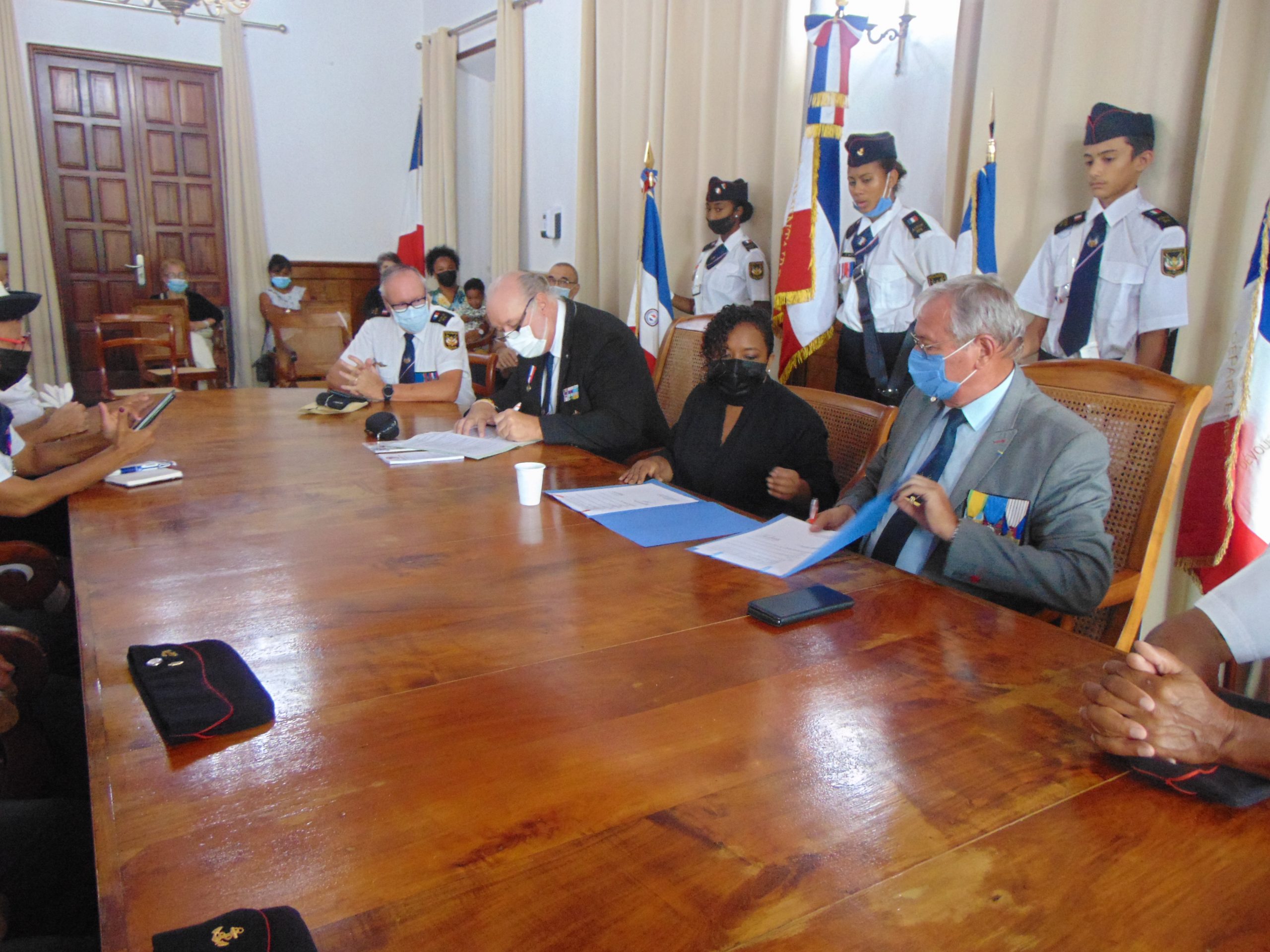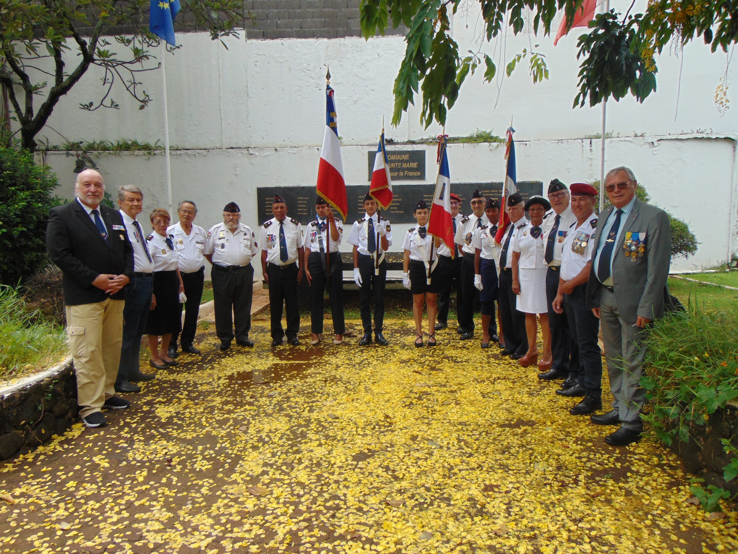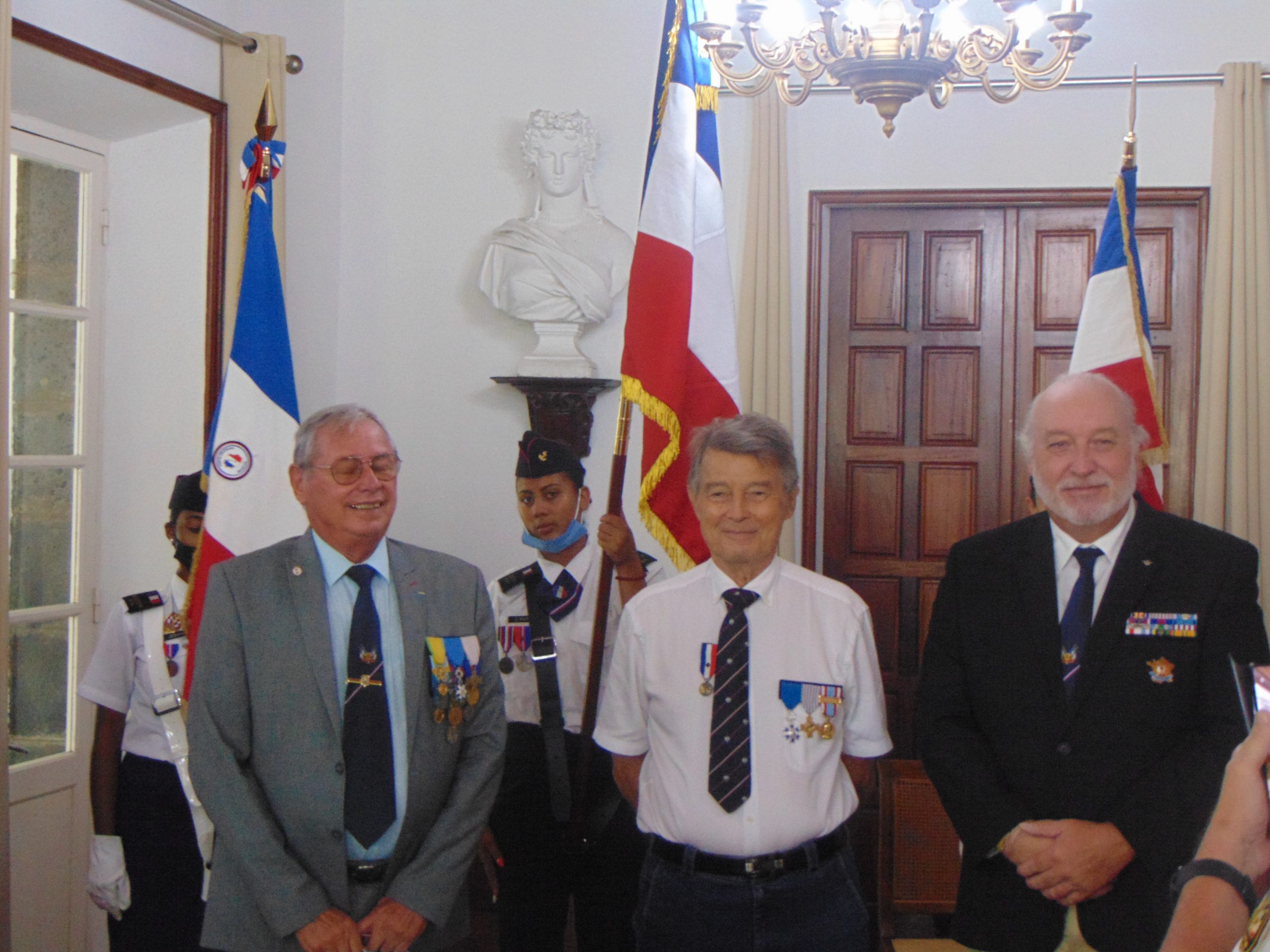 Remise de la médaille de bronze du Souvenir Français à un adhérent de la délégation de la Réunion par le délégué général, en présence de l’association des porte-drapeaux de France et de la Réunion (ADPDFR) le 3 avril 2022.