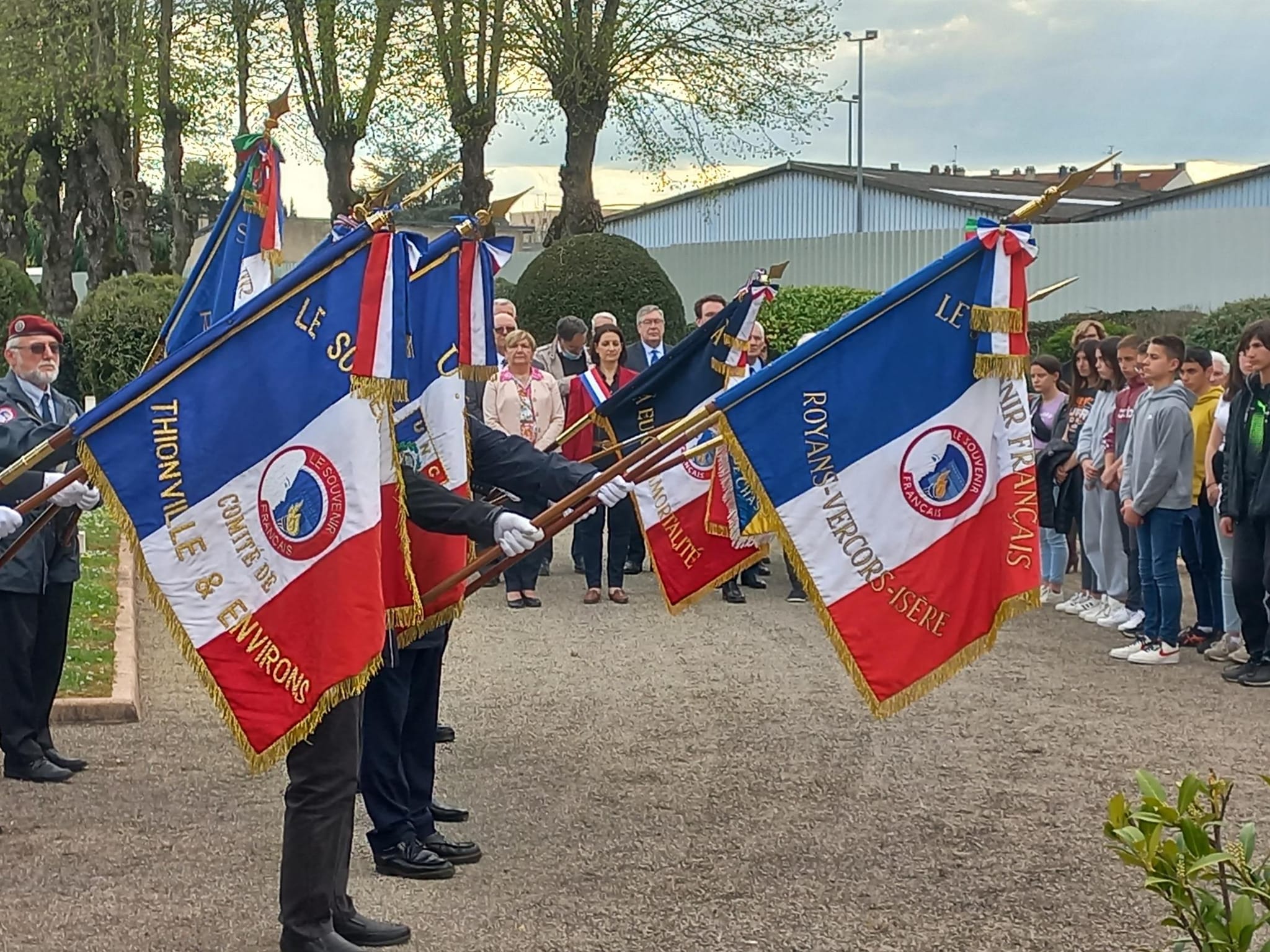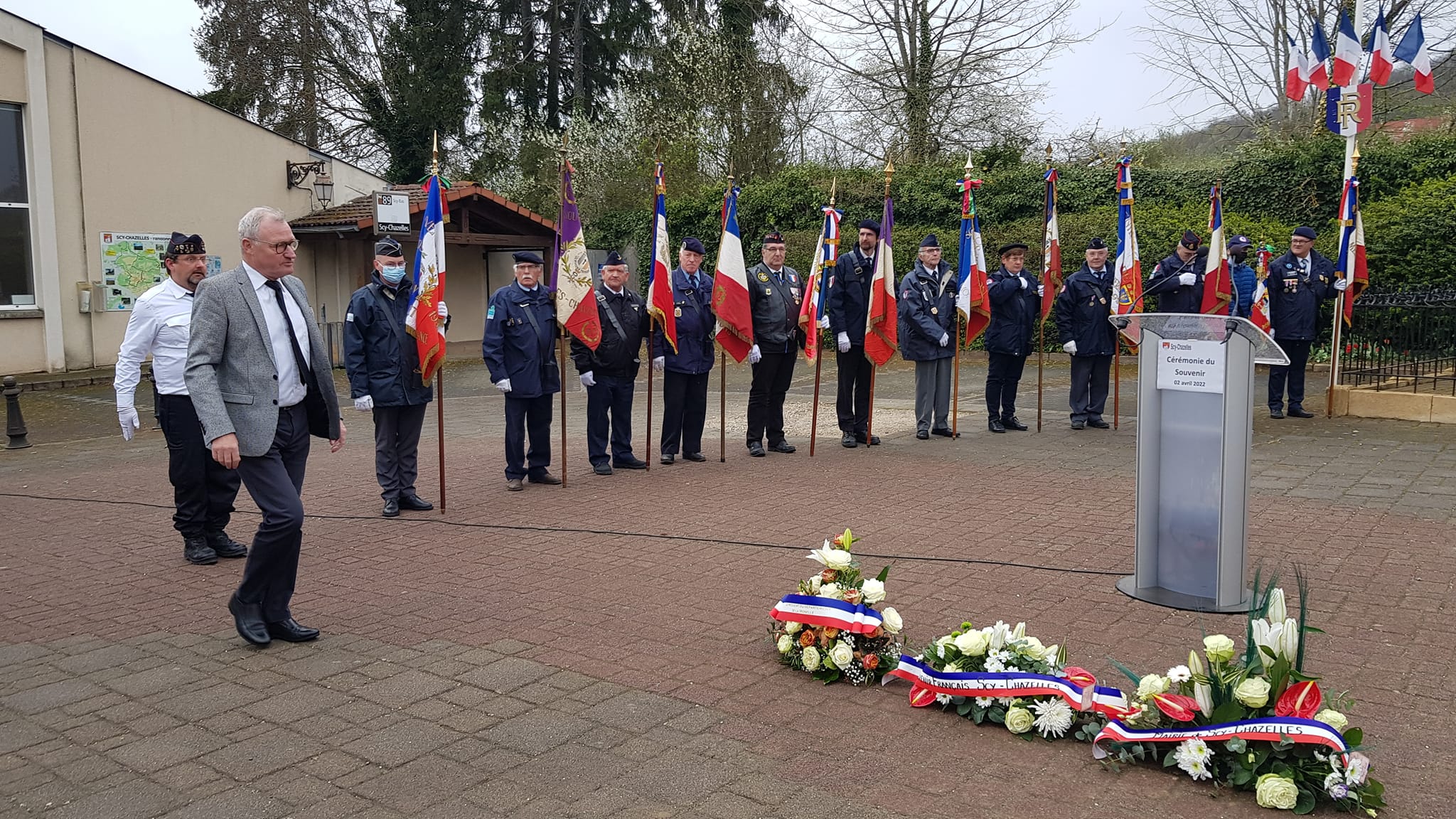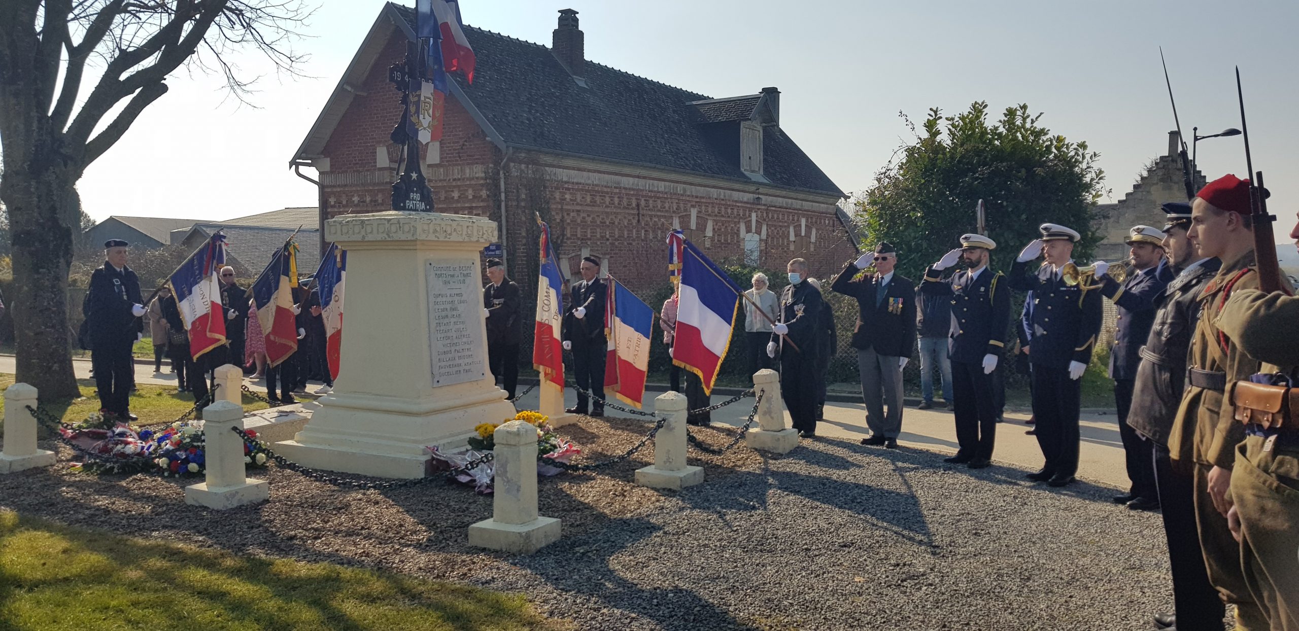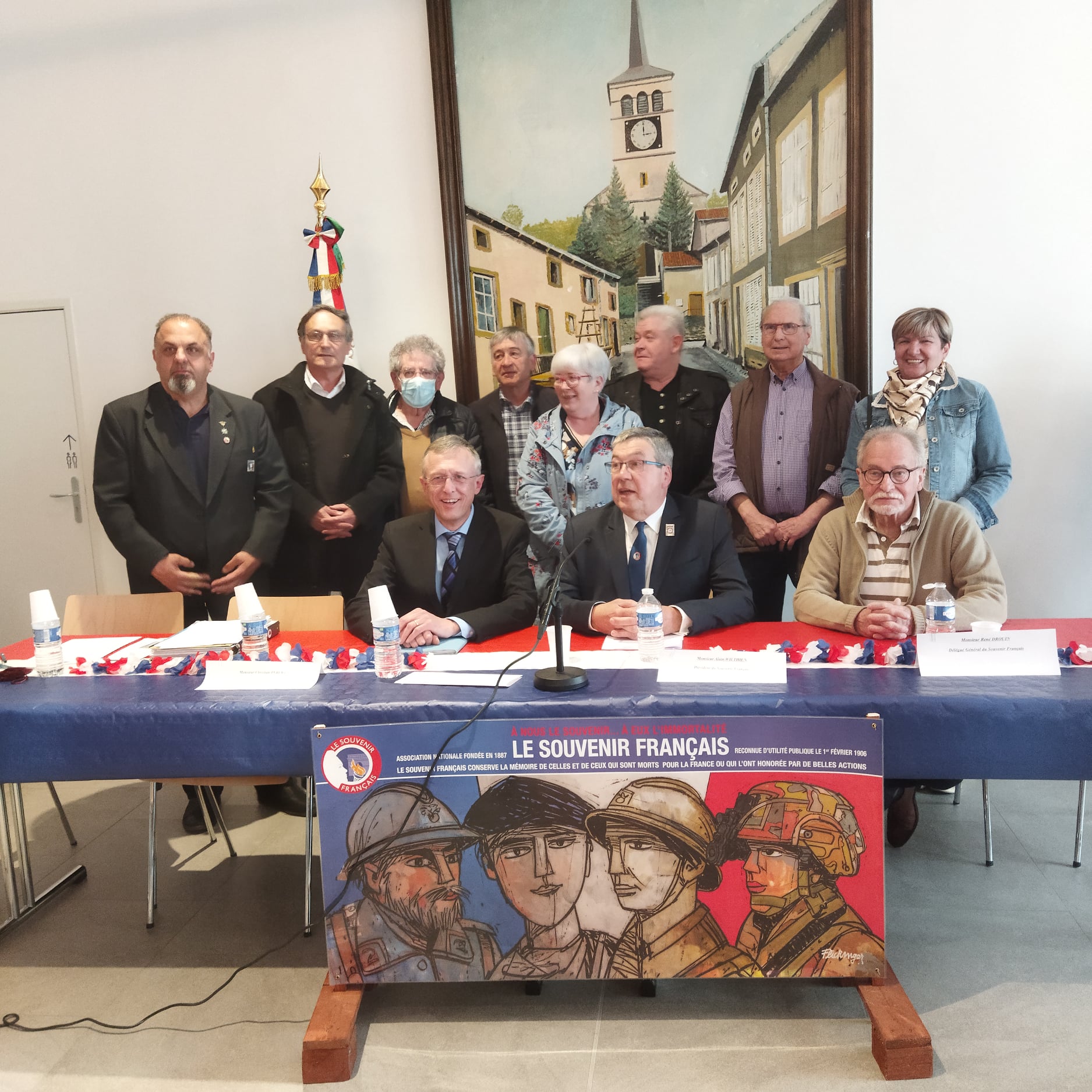 Remise de la médaille de bronze du Souvenir Français à un adhérent de la délégation de la Réunion par le délégué général, en présence de l’association des porte-drapeaux de France et de la Réunion (ADPDFR) le 3 avril 2022.