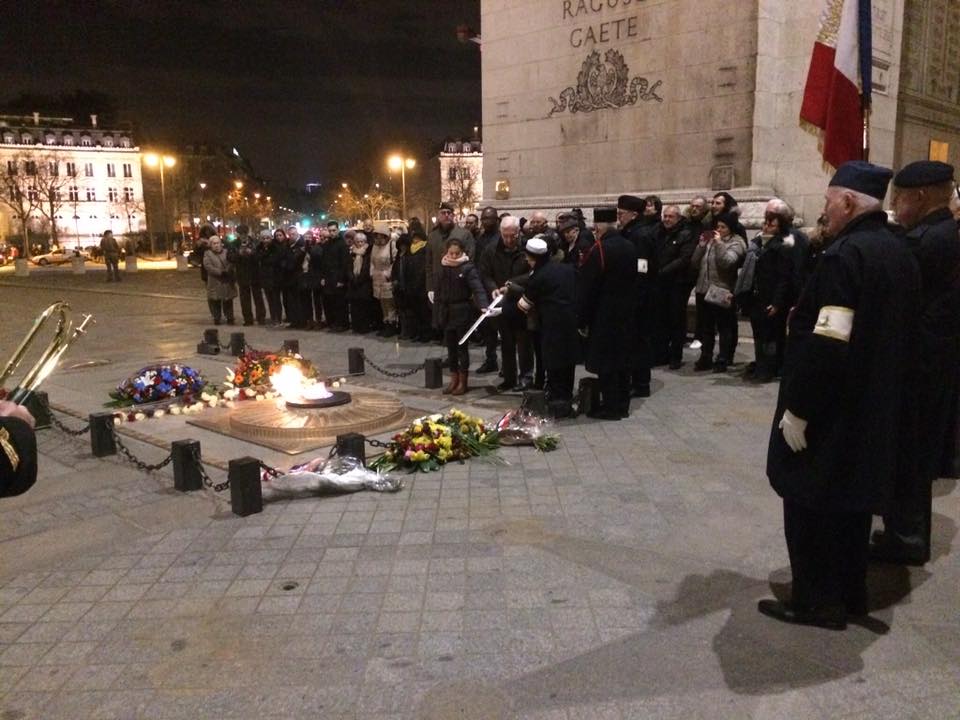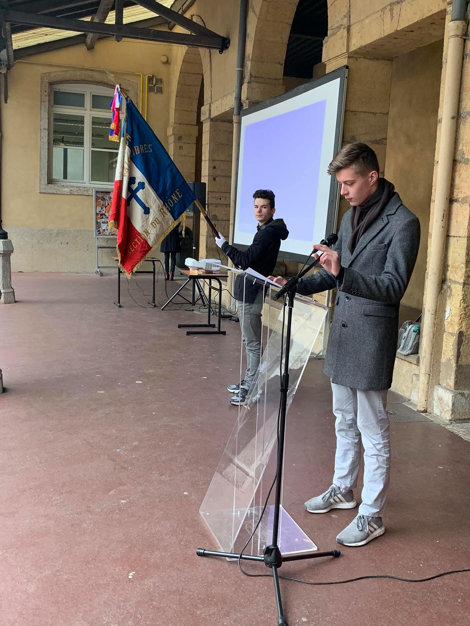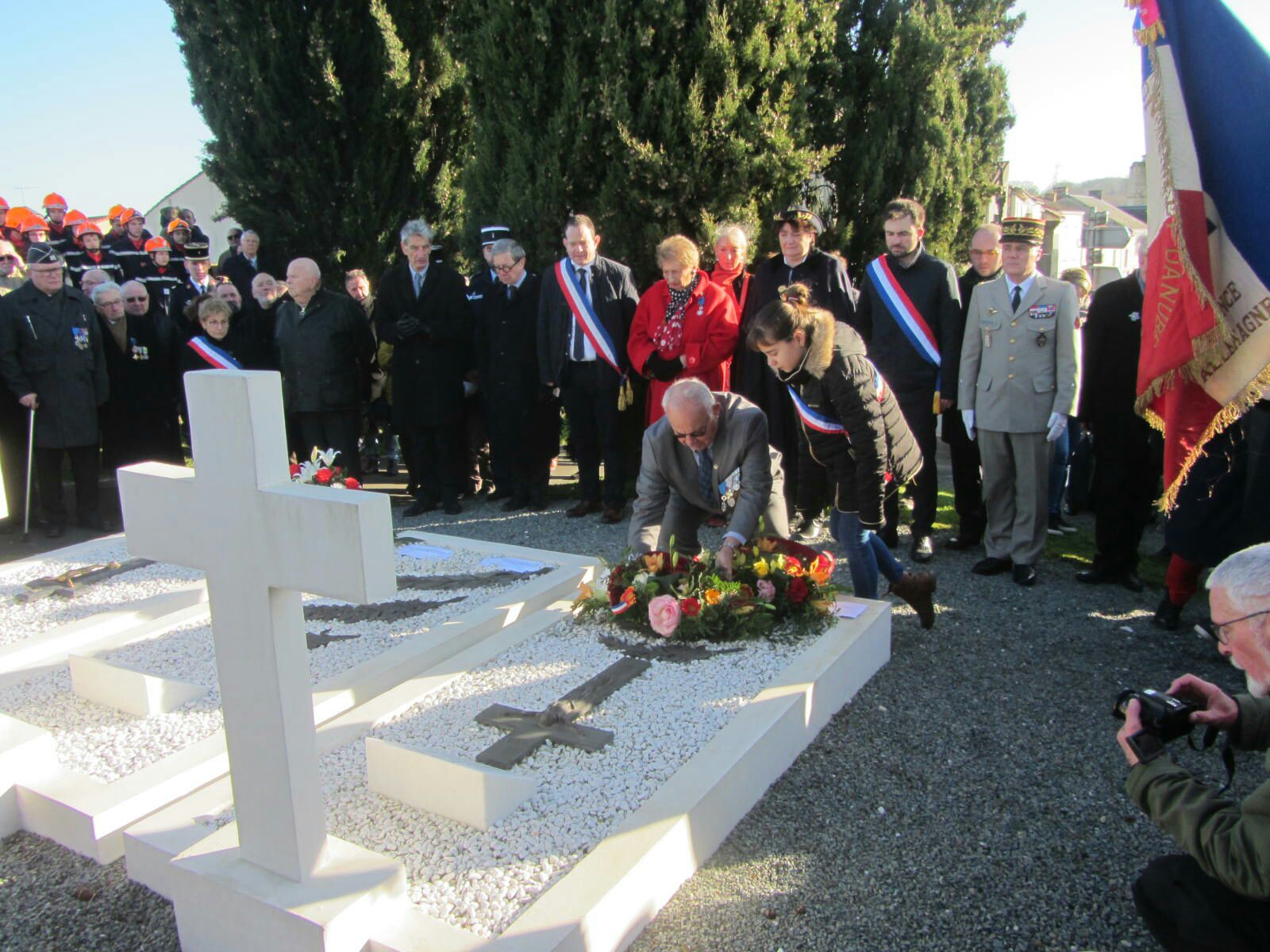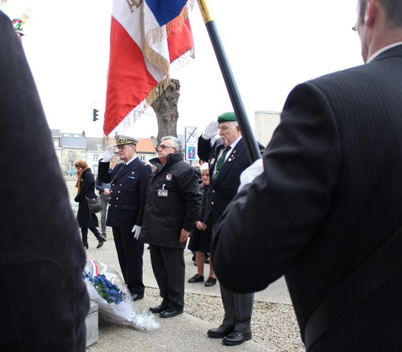 Dépôt de gerbes devant le monument de la Kazerne Dossin à Malines (Belgique), en présence de porte-drapeaux des sections du Souvenir Français d’Aires-sur-la-Lys et du Nord-Pas-de-Calais et des porte-drapeaux des anciens de la Légion Étrangère d’Anvers le 15 janvier 2020.