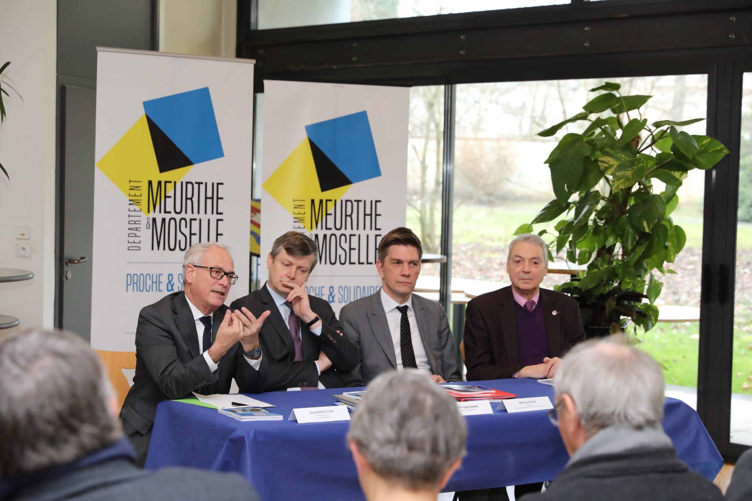 Présentation du livret réalisé par la délégation générale du Souvenir Français pour la Meurthe-et-Moselle sur 1870 au conseil départemental 54 en présence du président général du Souvenir Français, le président du conseil départemental, le préfet de la Meurthe-et-Moselle et le délégué général du Souvenir Français, le 23 janvier 2020.