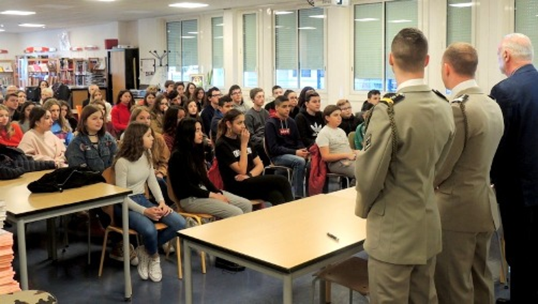 Conférence « 1940 : comprendre la défaite », présentée par l’historien Eric Labayle, organisée par le comité du Souvenir Français de Nantes (Loire-Atlantique) au groupement de gendarmerie, le 13 janvier 2020.