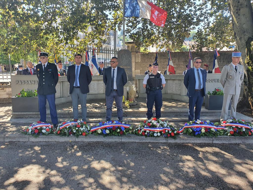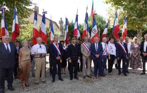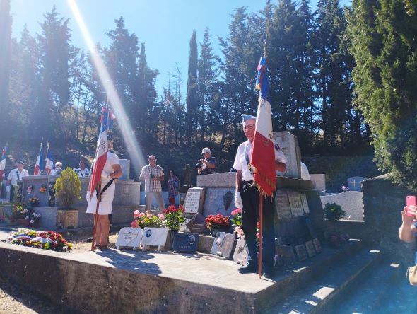 Cérémonie commémorative de la libération de Rieux Minervois (Aude), organisée le 24 août 2022 par la délégation de l’Aude, en présence des élus locaux, des autorités civiles et militaires, de présidents de comités de la délégation, de présidents d’associations, d’anciens combattants et de porte-drapeaux.