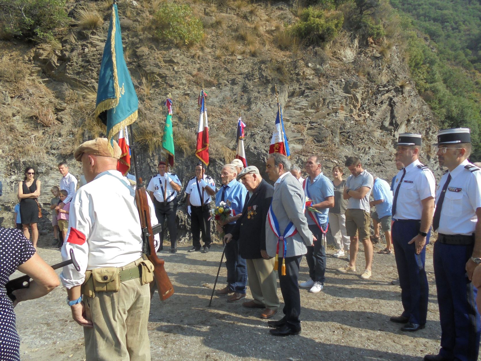 Cérémonies organisées par la délégation générale du Souvenir Français de l’Aude et les communes d’Ilhes-Cabardès et Trassanel sur les lieux de combats du maquis Armagnac de l’Armée secrète le 8 août 1944, le 8 août 2022, en présence des associations partenaires, des autorités civiles et militaires et des élus locaux.