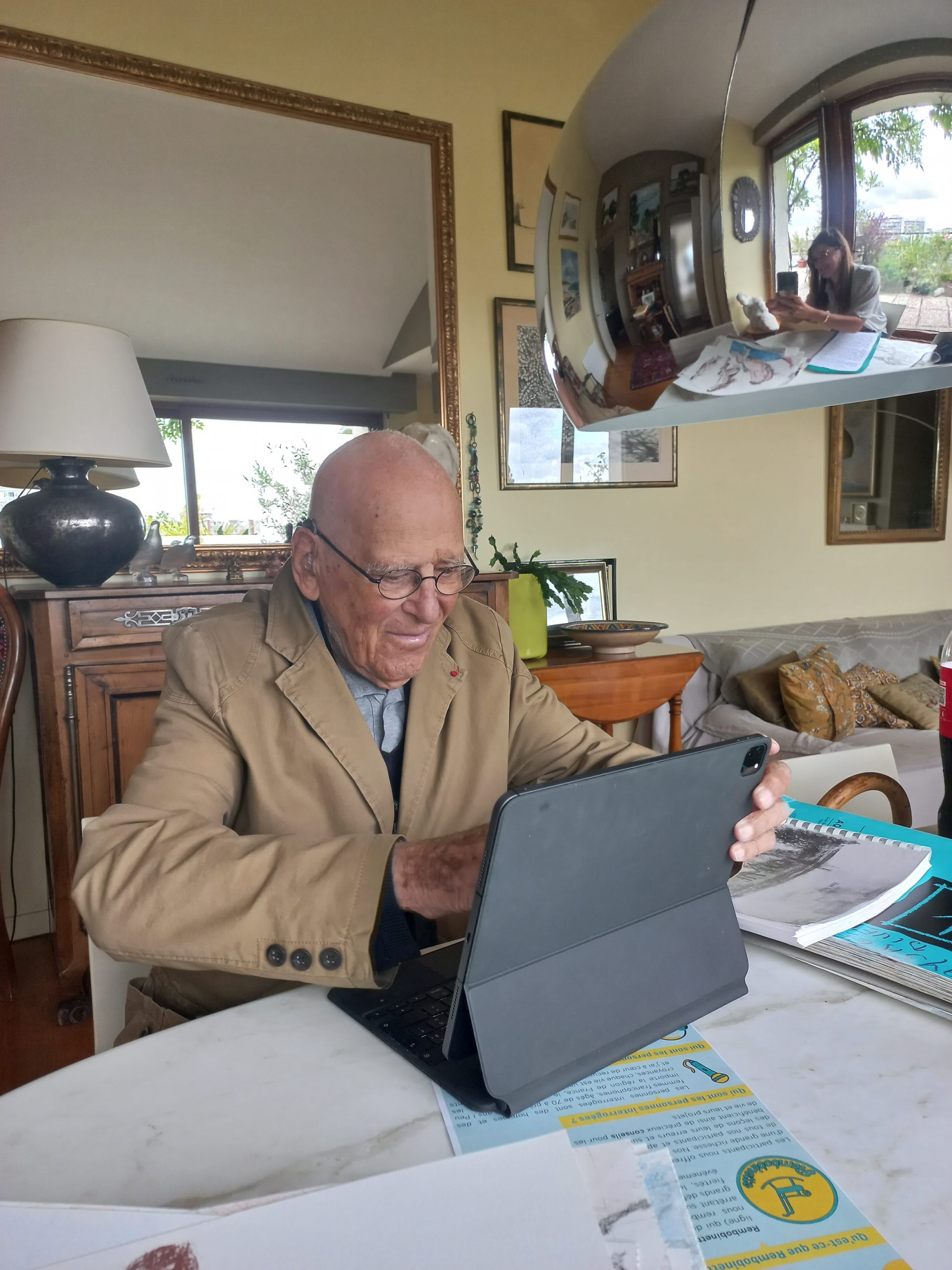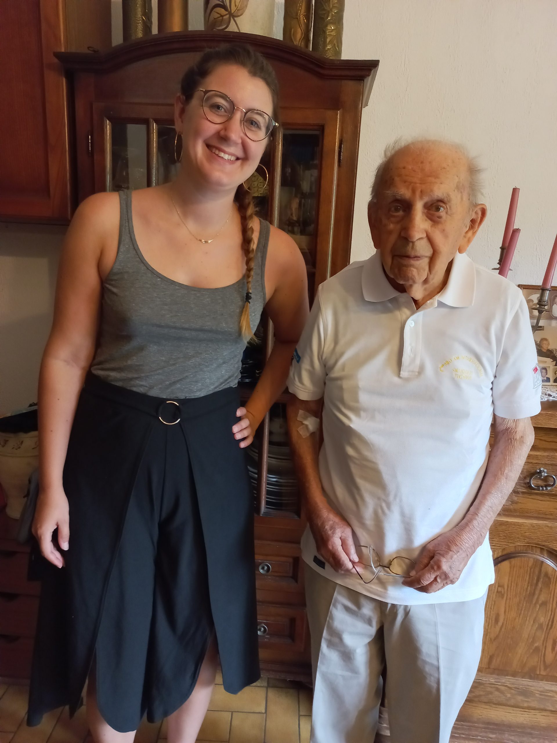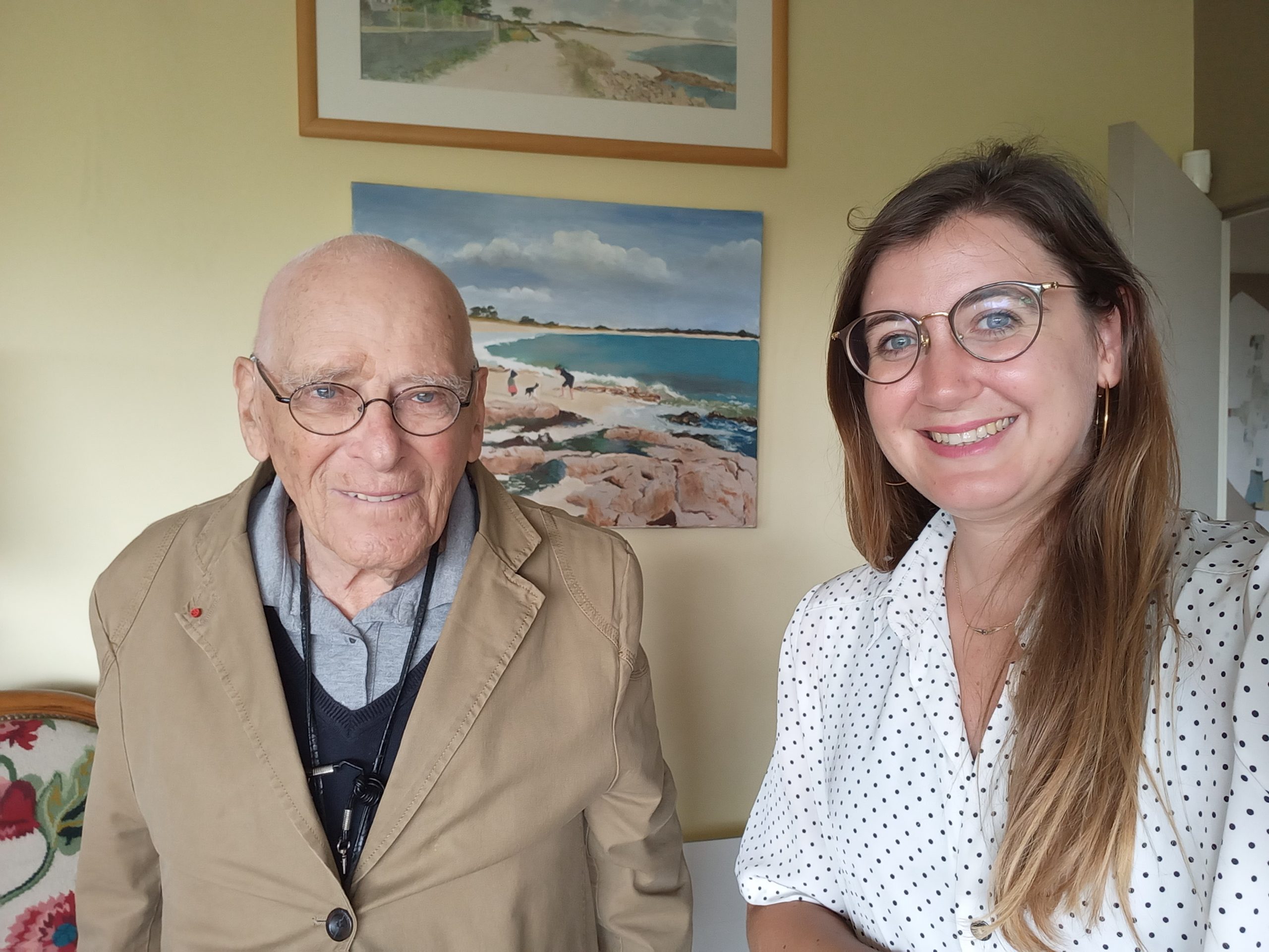 Rencontre entre Aurélie Gsell et Henri Becker pour la réalisation d’un épisode du podcast Rembobinette le 4 juillet 2022. Le podcast Rembobinette donne la parole aux anciens, et les épisodes réalisés avec Le Souvenir Français donnent la parole à des témoins ou des acteurs des dernières guerres dans lesquelles la France fut impliquée.