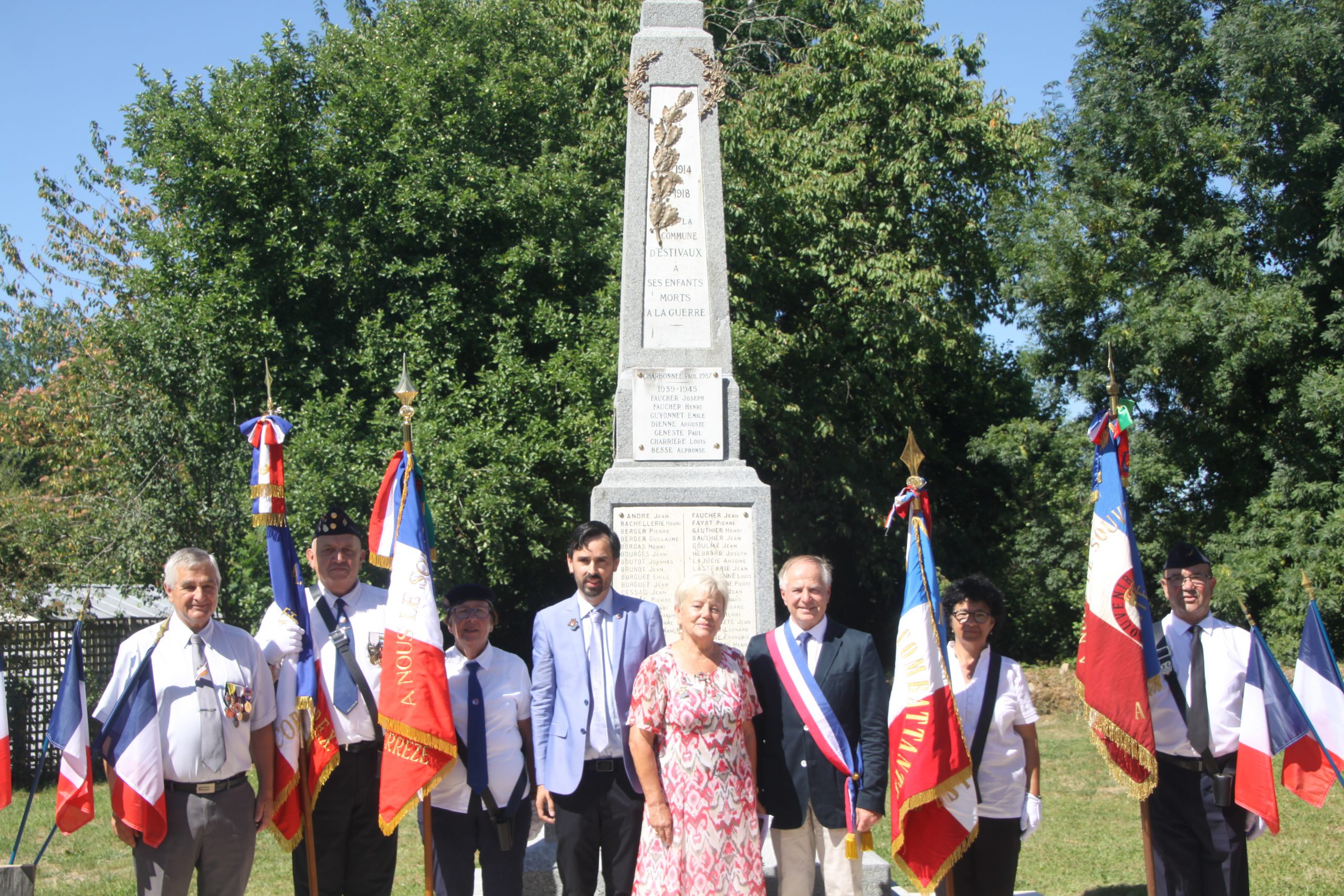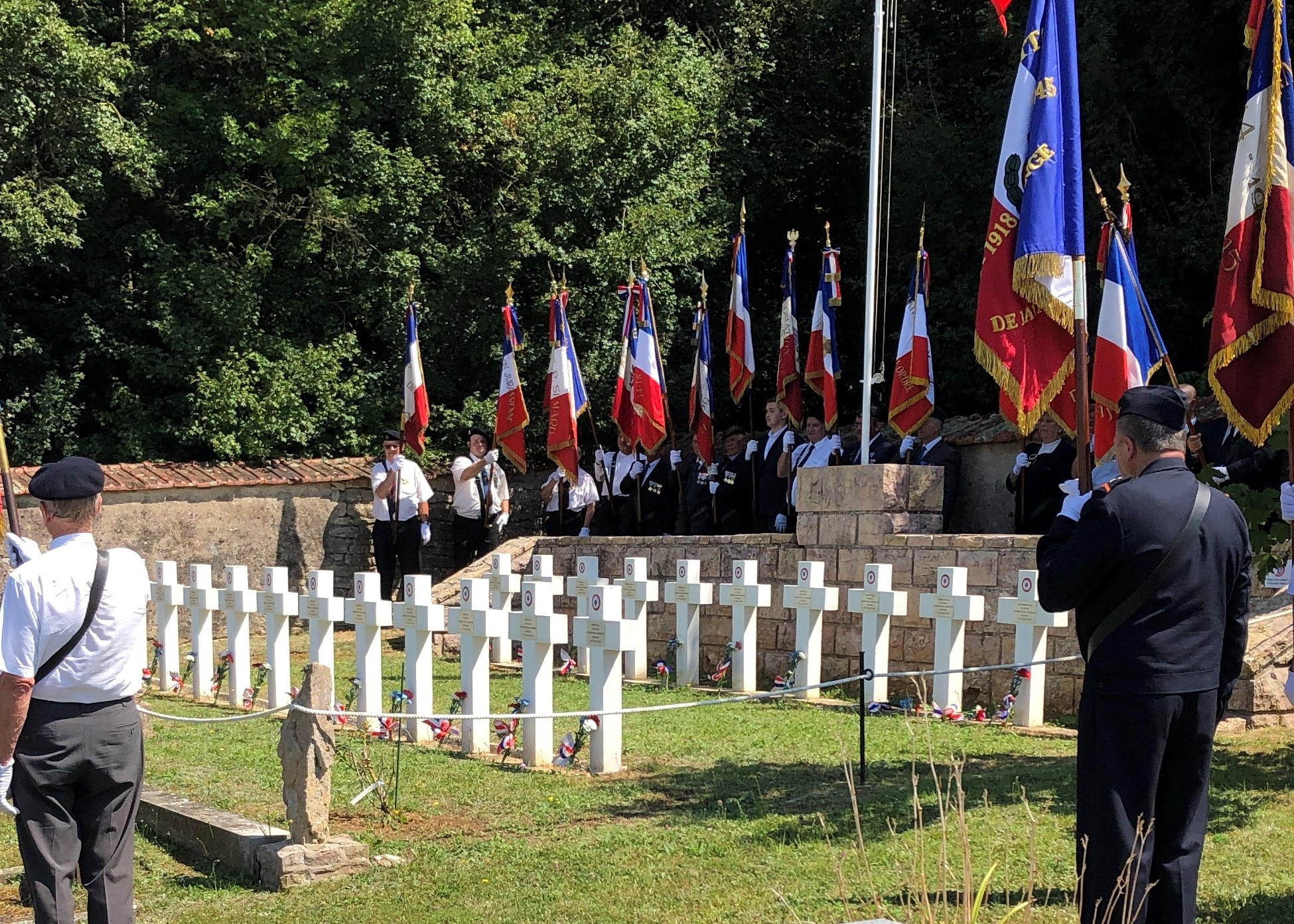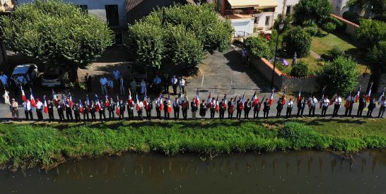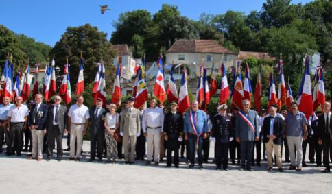 Commémoration des événements du 8 août 1944 à Couze-et-Saint-Front organisée par le comité du Souvenir Français de Bergerac (Dordogne) et la commune, le 8 août 2022 en présence des autorités civiles et militaires.