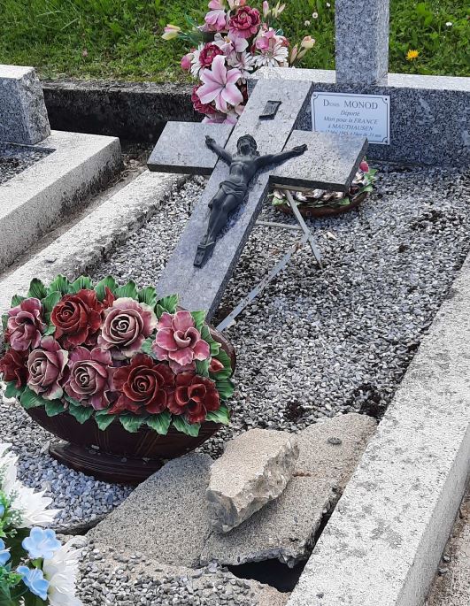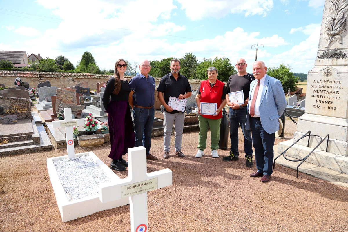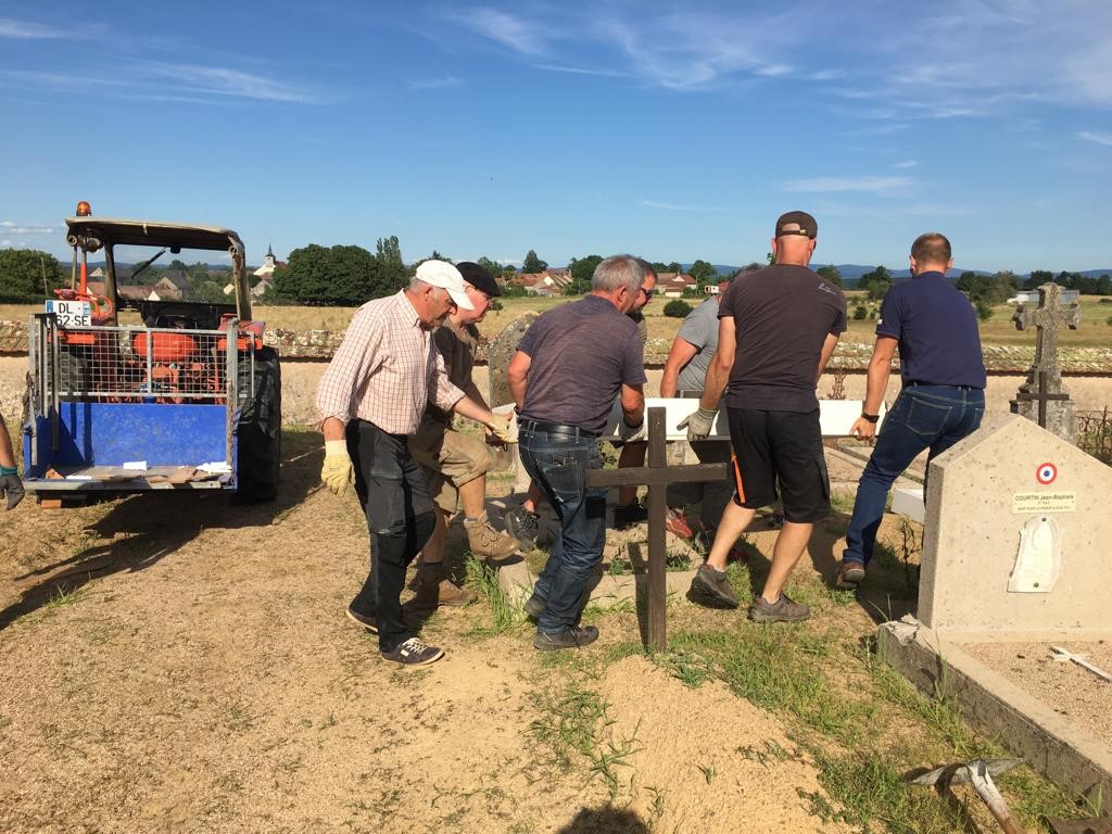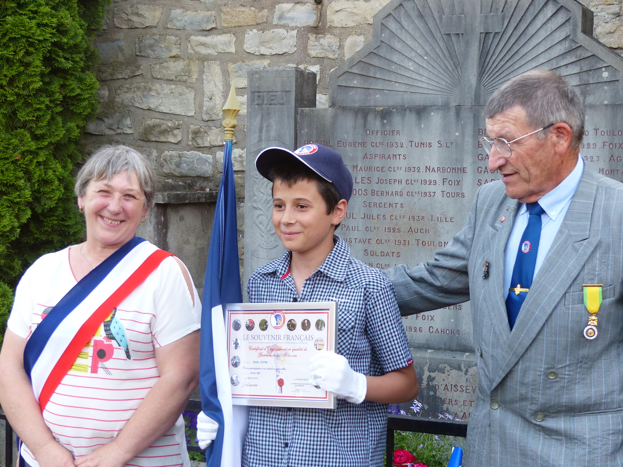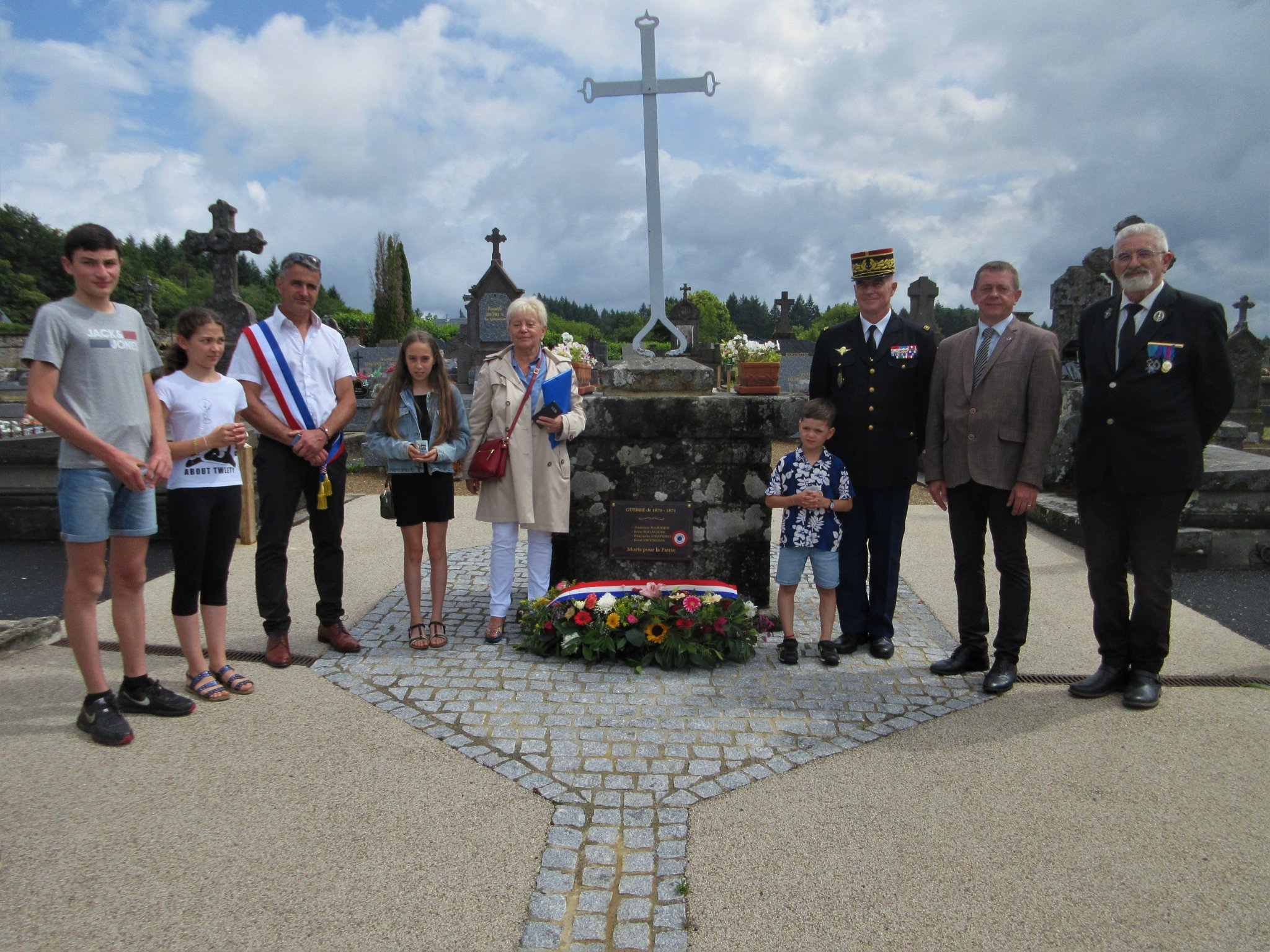Cérémonie d’inauguration de la nomination de l’allée principale du cimetière de l’Isles-sur-le-Doubs (Doubs) « Allée du Souvenir Français », le 13 juillet 2022. La commune a souhaité nommer cette allée pour remercier le comité pour l’aide apportée à différents travaux de rénovation.