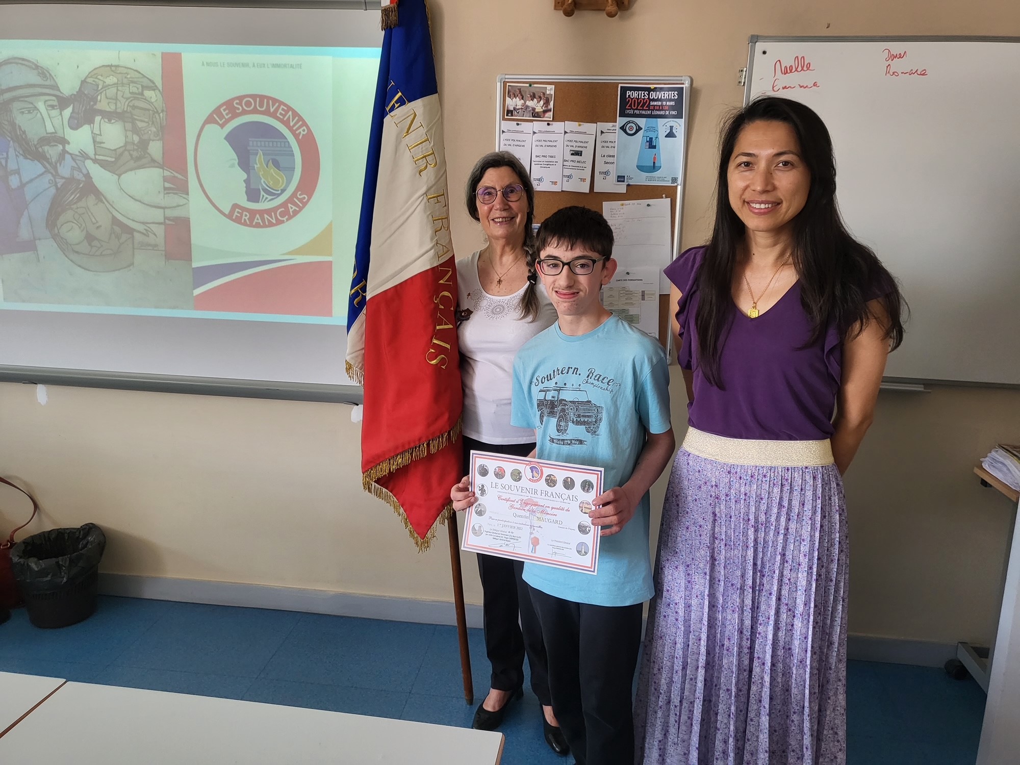 Intervention du comité du Souvenir Français de Baume-les-Dames-Rougemont (Doubs) dans un collège de Roulans le 20 juin 2022. Des diplômes et des médailles ont été remis aux élèves et à des professeurs.