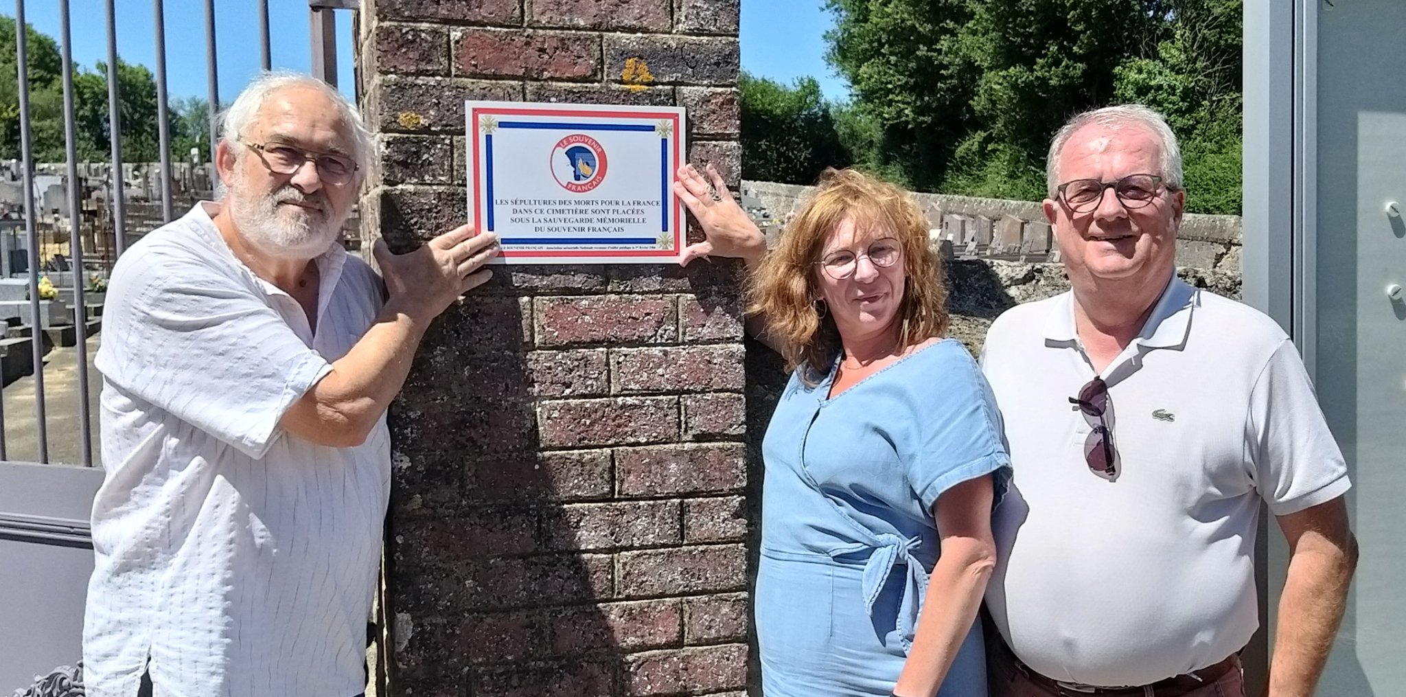 Apposition d’une plaque à l’entrée du cimetière de Pruillé-l’Eguillé (Sarthe) par le comité du Souvenir Français de Loir-Lucé-Bercé (Sarthe), le 12 juillet 2022, en présence notamment de la Vice-présidente du conseil départemental. Une visite du cimetière a suivi cette cérémonie d’inauguration de la plaque pour identifier les tombes des soldats « Morts pour la France » dans le cimetière.