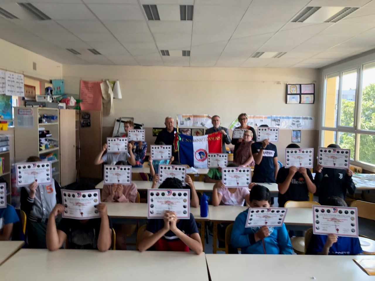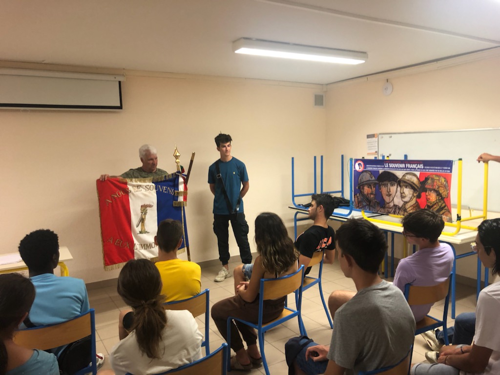 Intervention du comité de Draguignan et du comité de Flayosc (Var) dans une classe du collège de Figanières, le 3 juin 2022. Les élèves ont réalisé des cocardes qu’ils vont vendues lors des différentes cérémonies nationales en faveur du Souvenir Français. Pour les remercier, les deux comités ont remis à tous les élèves le certificat d’engagement en qualité de Gardien de la Mémoire.