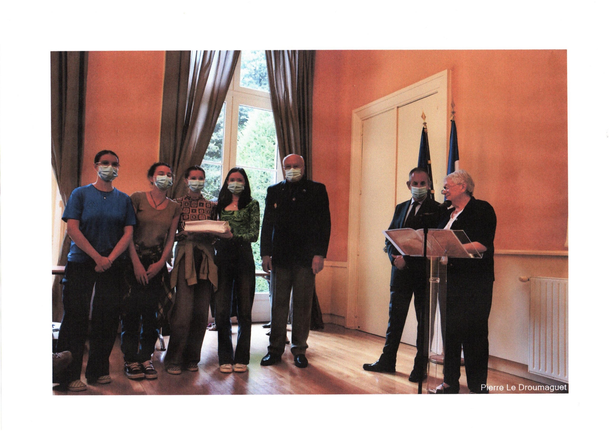Remise du prix du Souvenir Français aux lauréats du concours national de la Résistance et de la déportation aux élèves du collège Sainte-Marie de la Providence de Rochefort (Charente-Maritime) par le délégué général du Souvenir Français dans les salons de la Préfecture de la Rochelle, le 29 juin 2022.