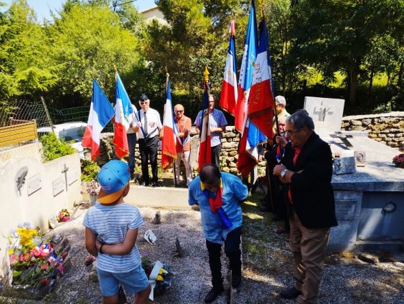 Cérémonies organisées dans différentes communes du Saint Hilairois par la délégation du Souvenir Français de l’Aude et les municipalités, en présence notamment du dernier maquisard du maquis FTP Jean Robert et Faïta, pour rendre hommage aux résistants de la Seconde Guerre mondiale, le 3 juillet 2022.