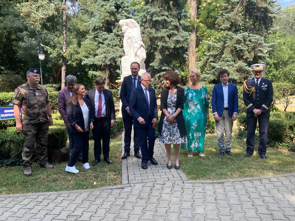 Participation de la délégation générale du Souvenir Français de Roumanie et Moldavie à la réunion de la commission de défense de l’Assemblée Nationale française en Roumanie, le 21 juillet 2022 au parc Cismigiu pour honorer la mémoire des soldats « morts pour la France », en présence des autorités civiles et militaires.