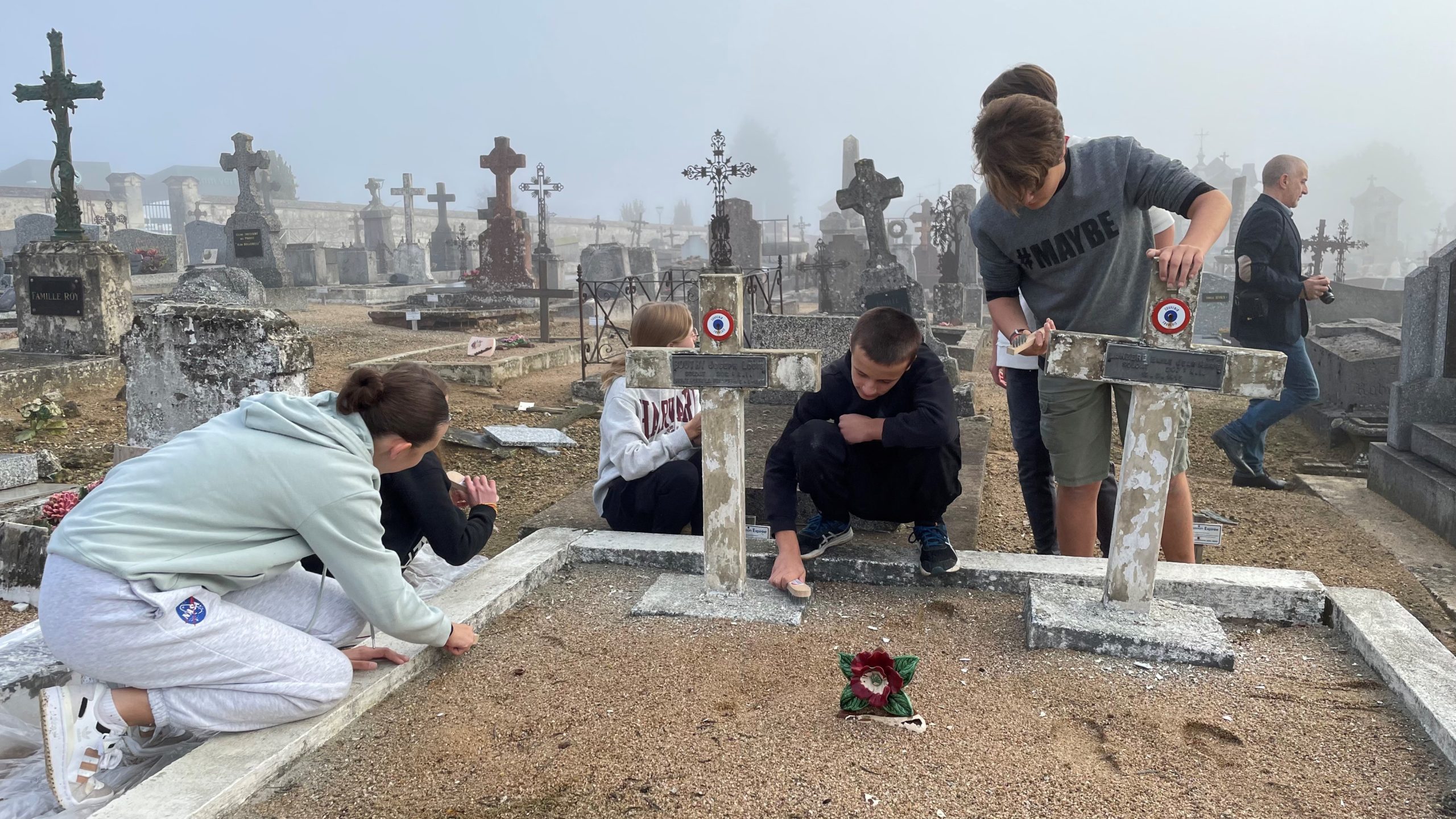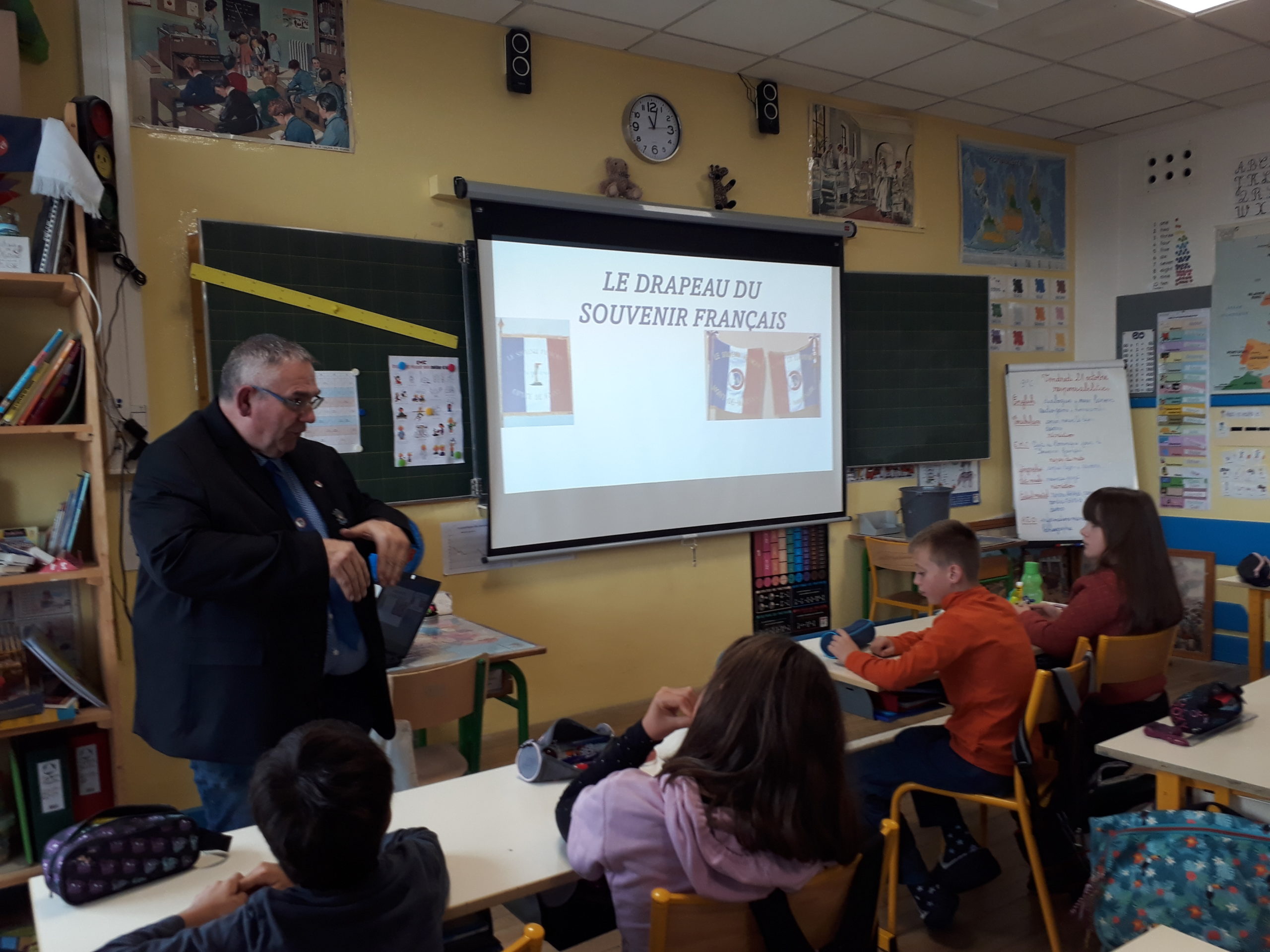 Intervention du comité de Pontarlier (Doubs) dans une classe de CM2 pour parler du Souvenir Français et du drapeau aux élèves, le 22 octobre 2022.