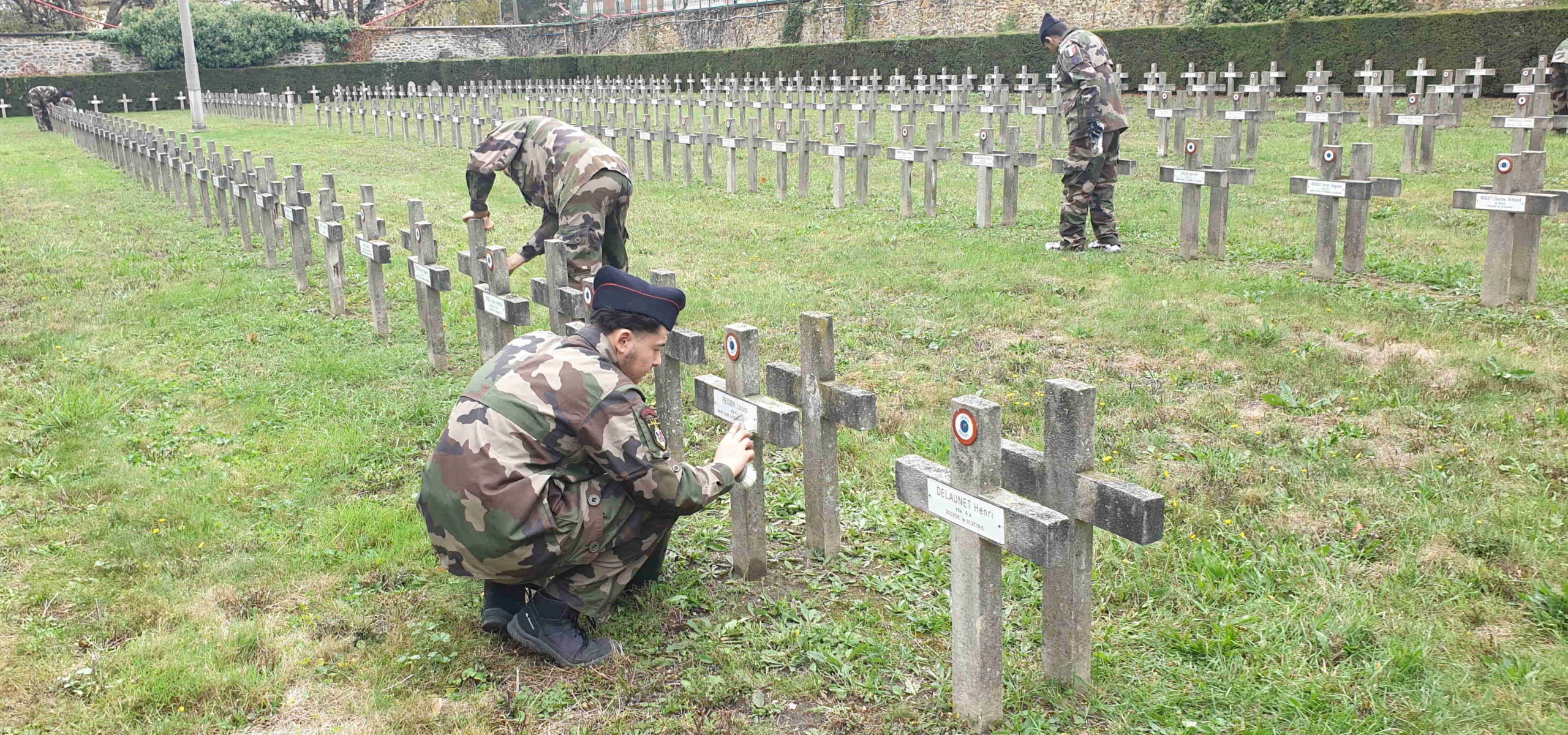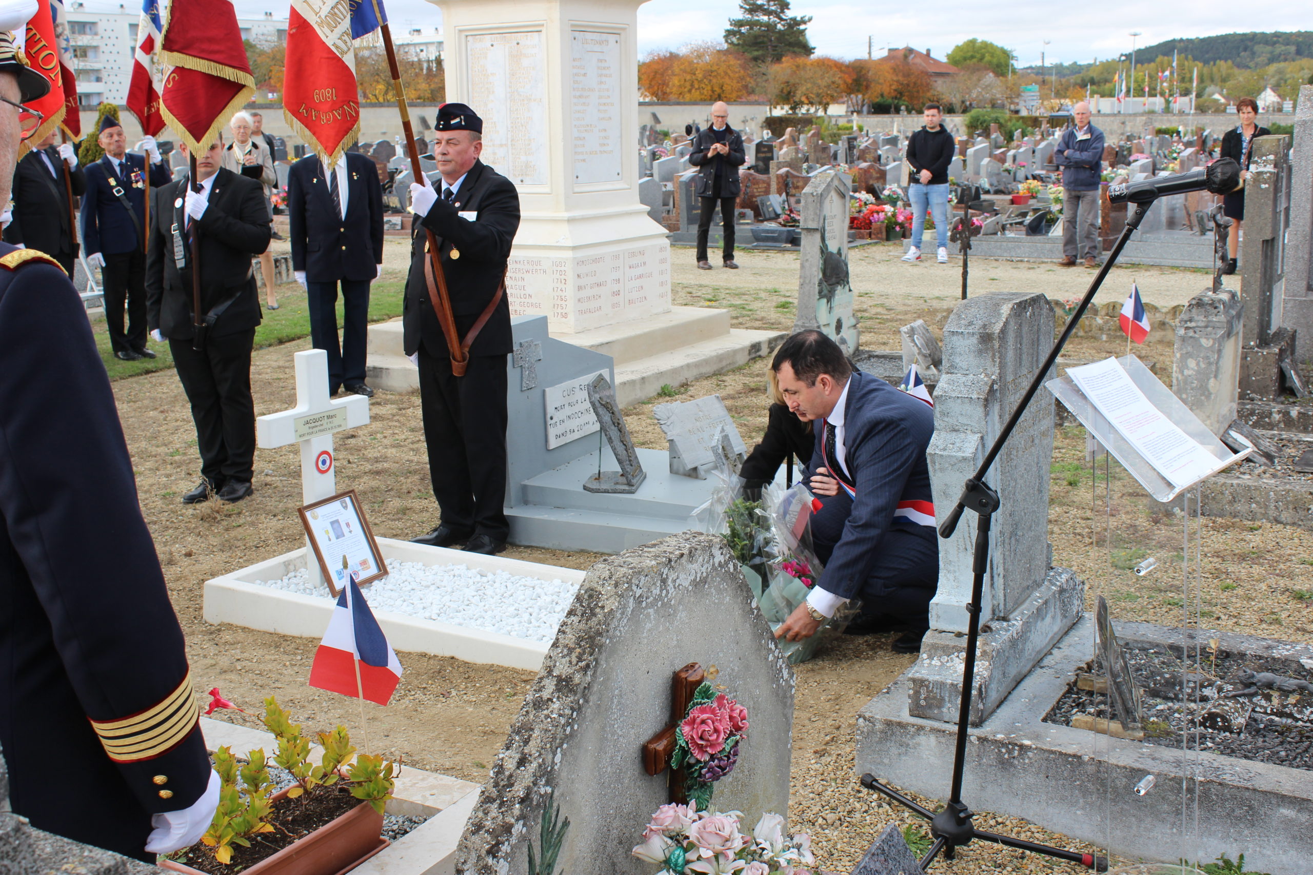 Cérémonie organisée par le comité du Souvenir Français de Soissons (Aisne) à l’occasion du 45ème anniversaire de l’inhumation du Soldat Inconnu d’Algérie à la nécropole de Notre-Dame-de-Lorette, en hommage au brigadier-chef Marc Jacquot « Mort pour la France » en 1956, dont la tombe a été rénovée par Le Souvenir Français.