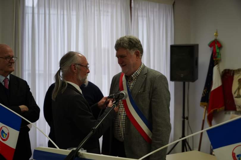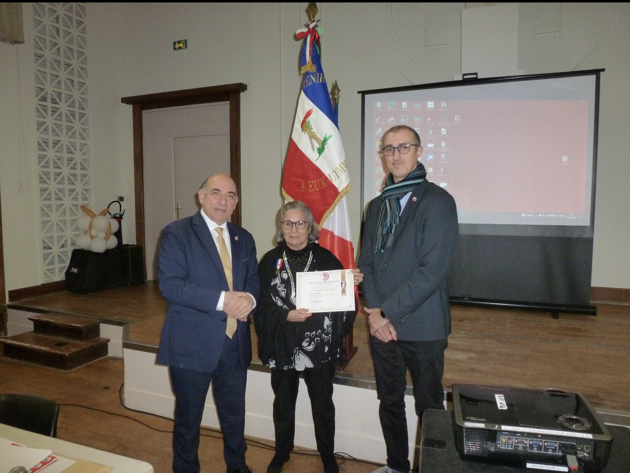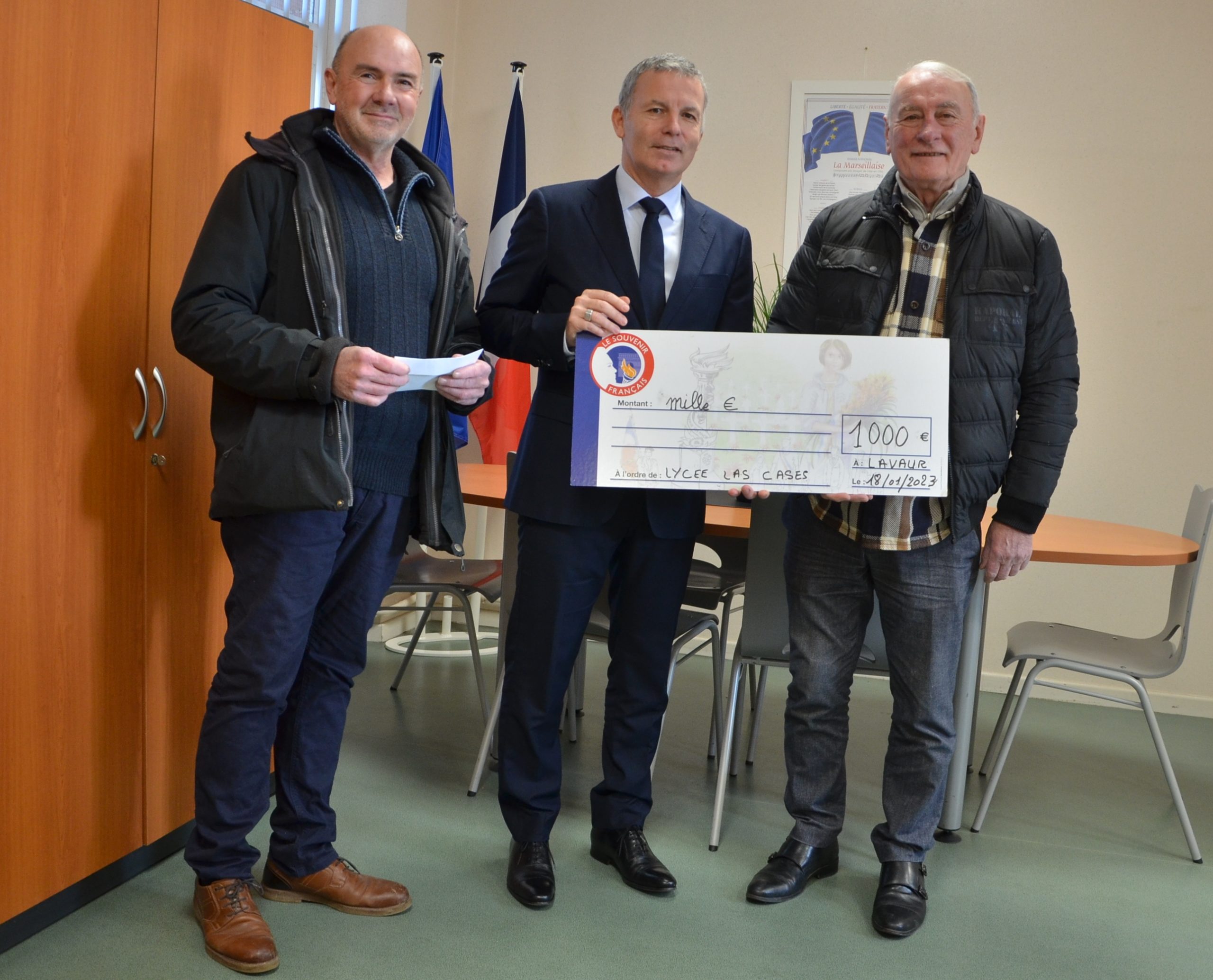 Remise d’un drapeau de l’association Rhin et Danube du 9ème arrondissement de Paris au lycée français de Vilnius (Lituanie) par le président général le 16 janvier 2023.