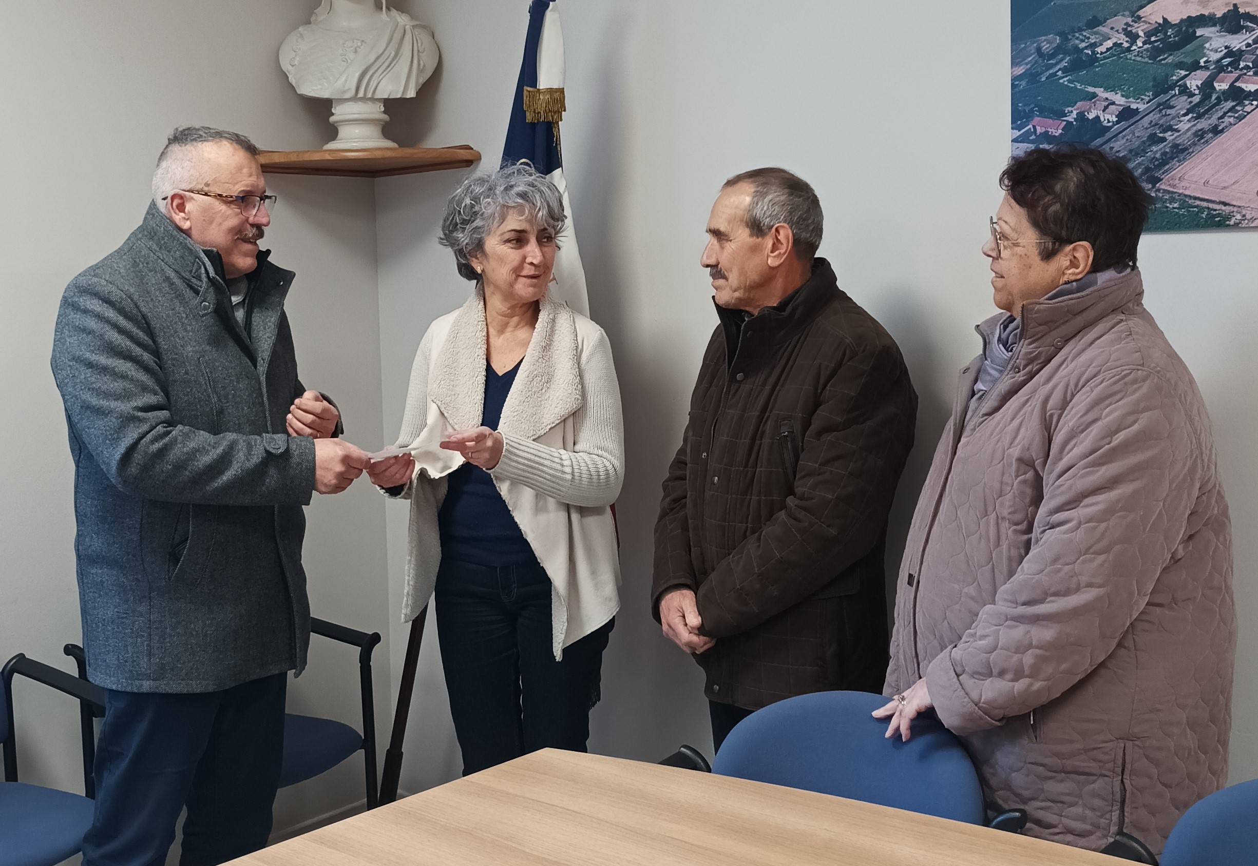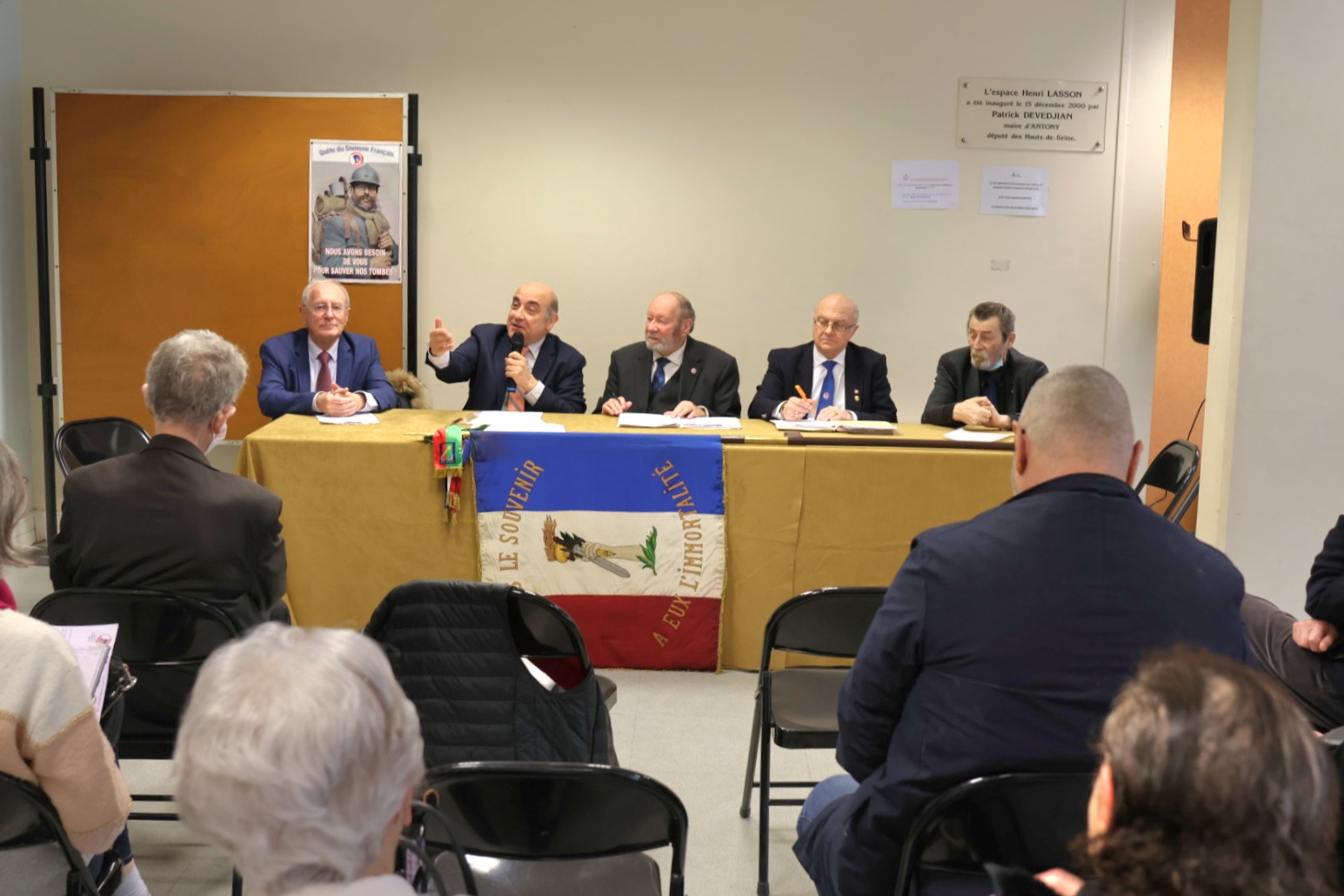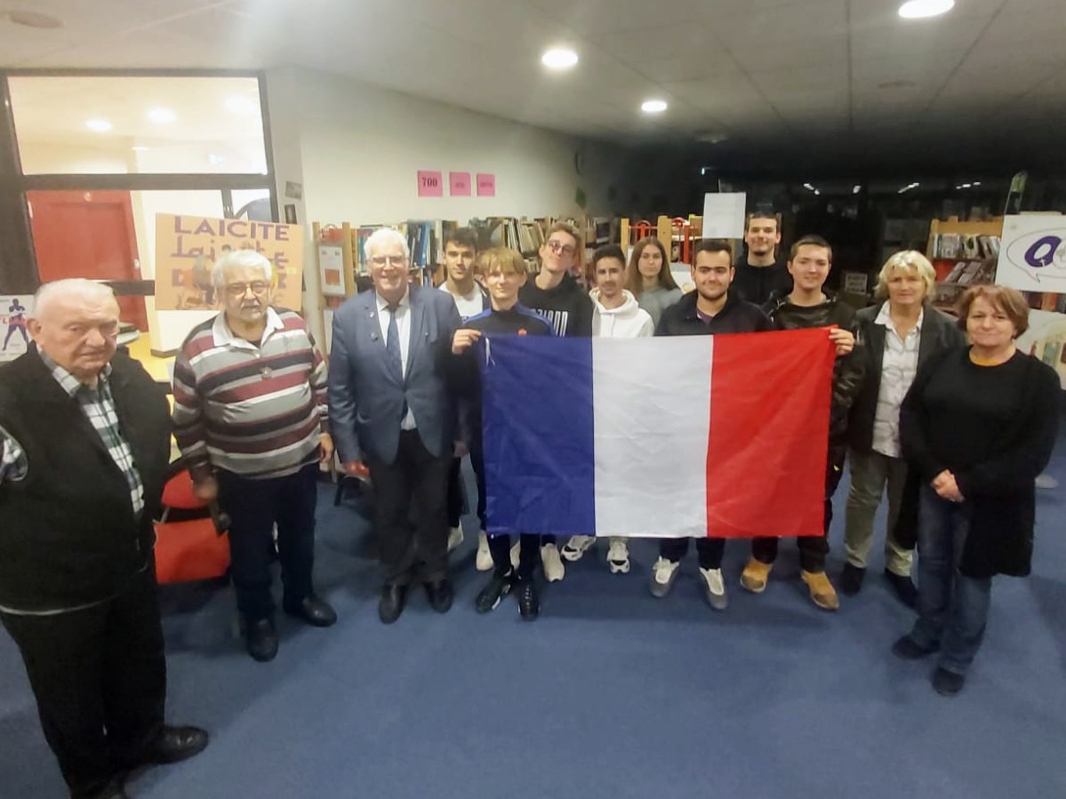 Remise d’un drapeau de la FNDIRP (Fédération Nationale des Déportés et Internés Résistants et Patriotes) de Limeil-Brévannes (Val-de-Marne) au collège Janusz Korczak, en présence des élus locaux, des enseignants, des élèves, le 27 janvier 2023