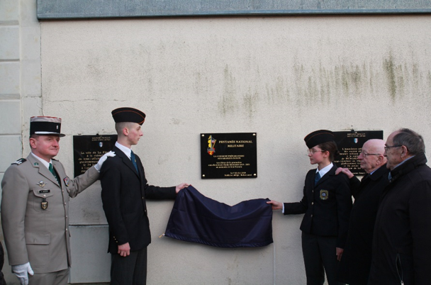 Inauguration d’une plaque commémorative co-financée par le comité du Souvenir Français de la Flèche (Sarthe) le 5 février 2020, en présence des élèves de 1ère année de la corniche préparatoire aux grandes écoles militaires en hommage à leur parrain de promotion : Le sous-Lieutenant, Emile RICHARD, tué au combat en 1871, sur le même territoire.