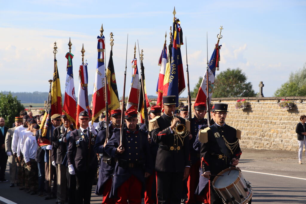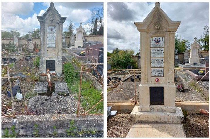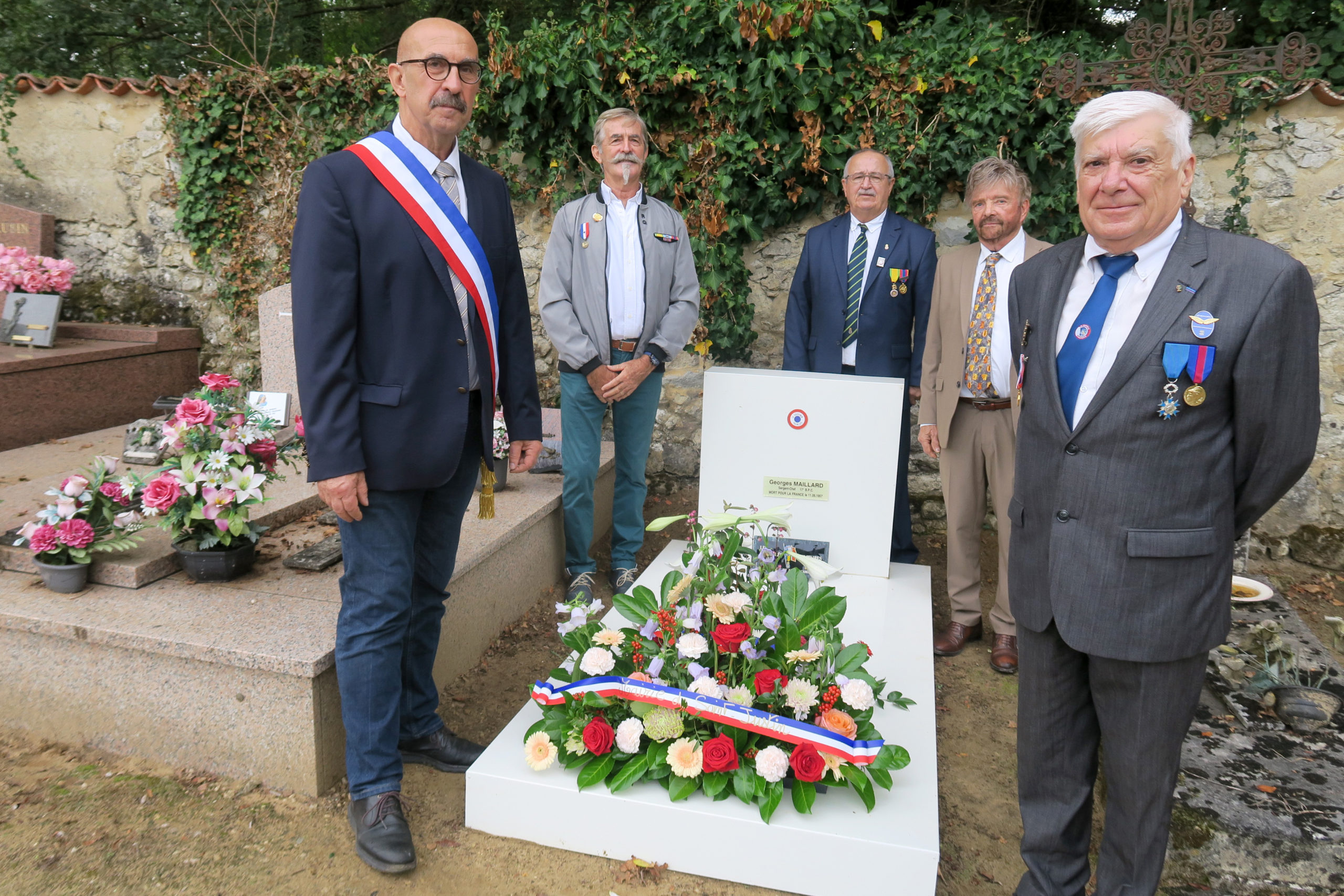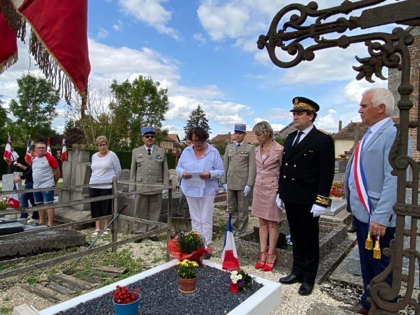 Inauguration d’une tombe rénovée par le comité de Brienne et des Lacs de Champagne (Aube), le 27 août 2023, en présence des autorités civiles et militaires, dans le cimetière de Précy-Saint-Martin.