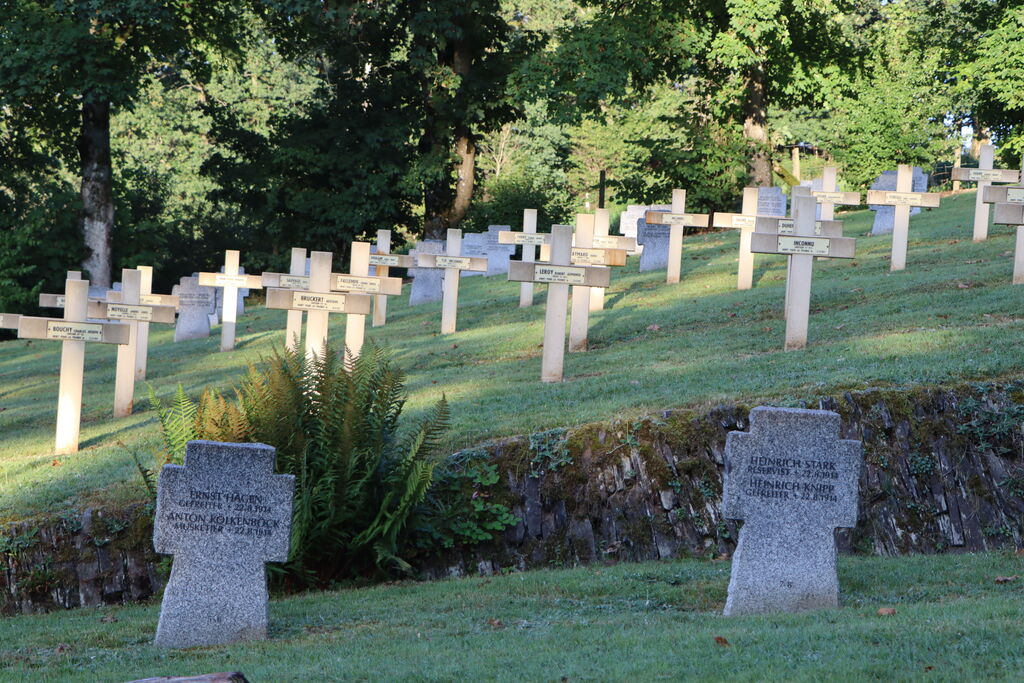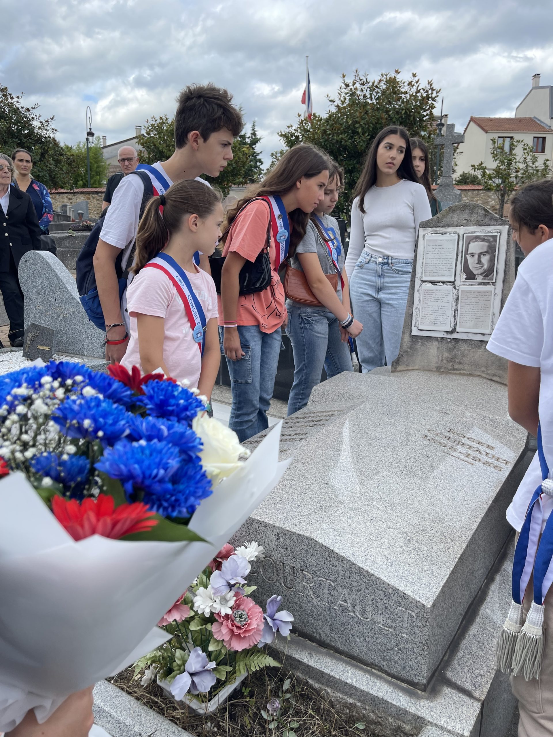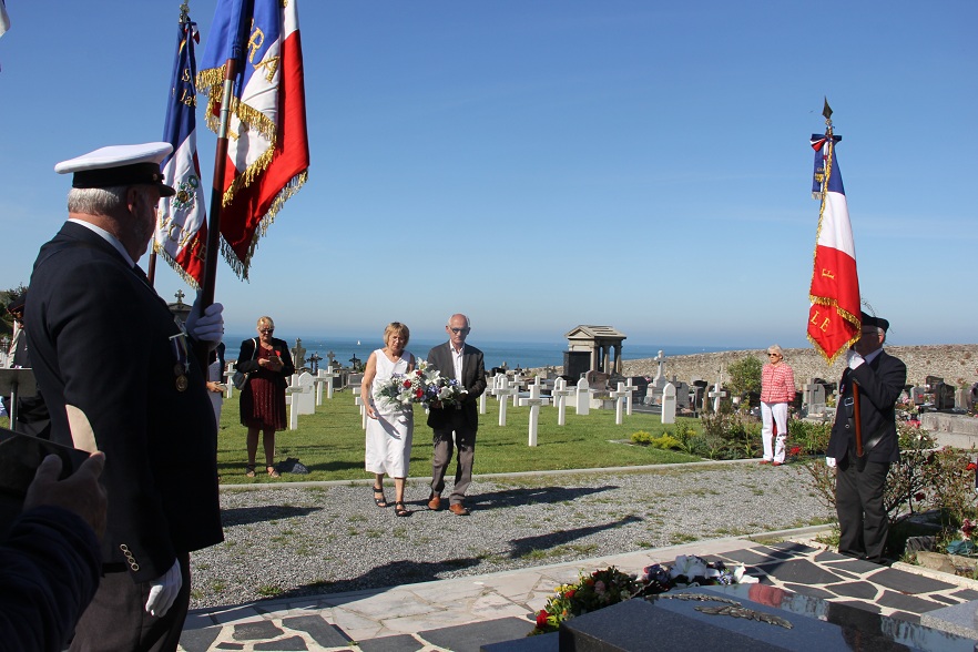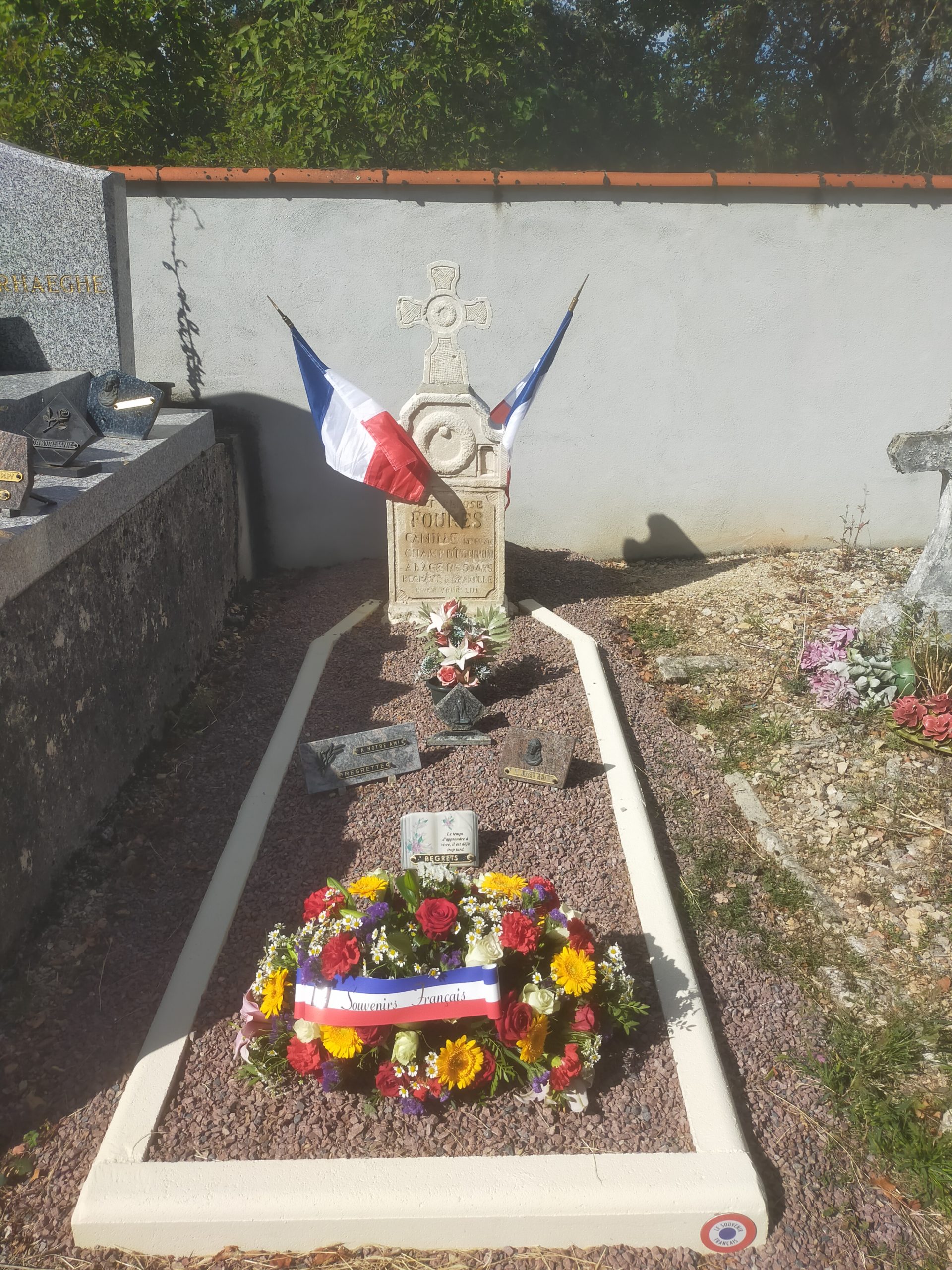 Inauguration d’une tombe rénovée par le comité de Brienne et des Lacs de Champagne (Aube), le 27 août 2023, en présence des autorités civiles et militaires, dans le cimetière de Précy-Saint-Martin.