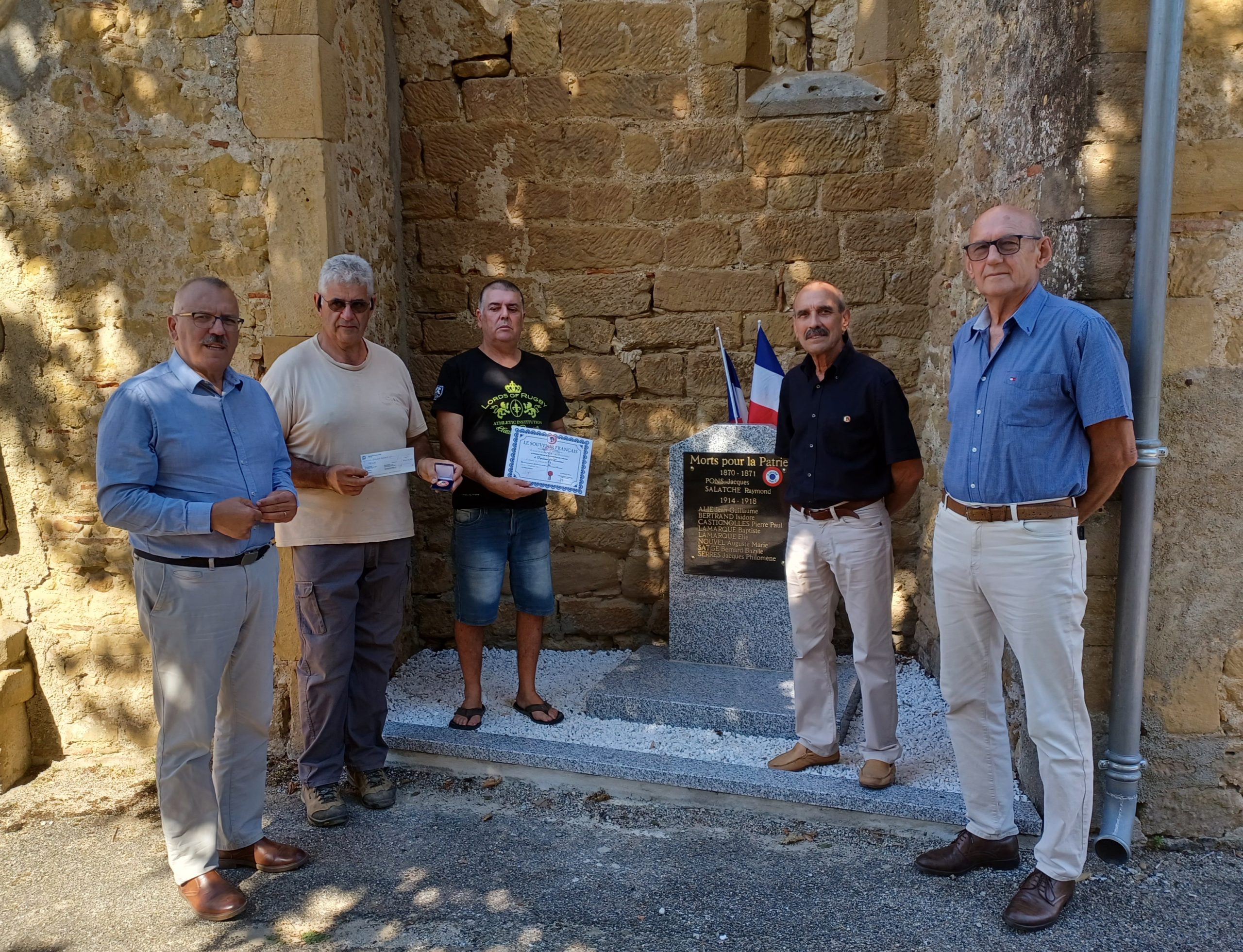 Remise d’une subvention le 28 septembre 2023 par le comité du Souvenir Français de Castelnaudary et le délégué général de l’Aude, au maire de Ribouisse pour la réalisation d’un monument aux morts. Un diplôme d’honneur et une médaille 150ème anniversaire de la guerre de 1870 ont également été remis à la commune pour son engagement.